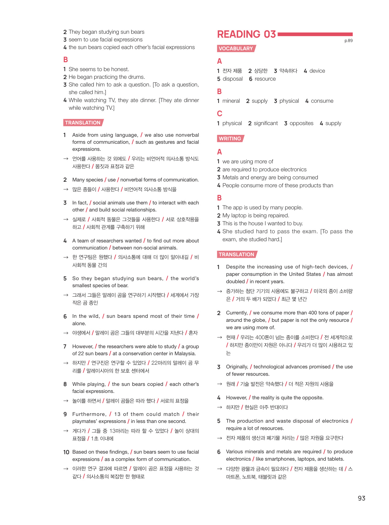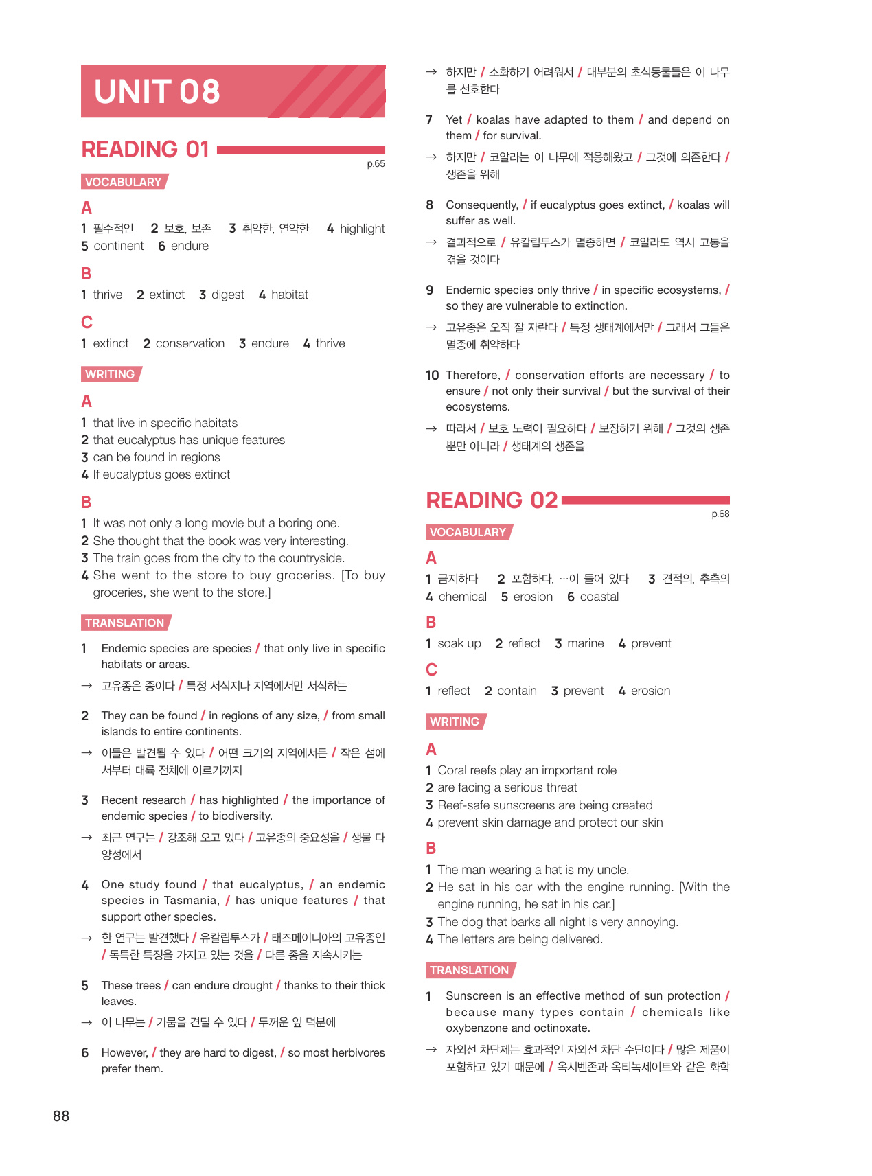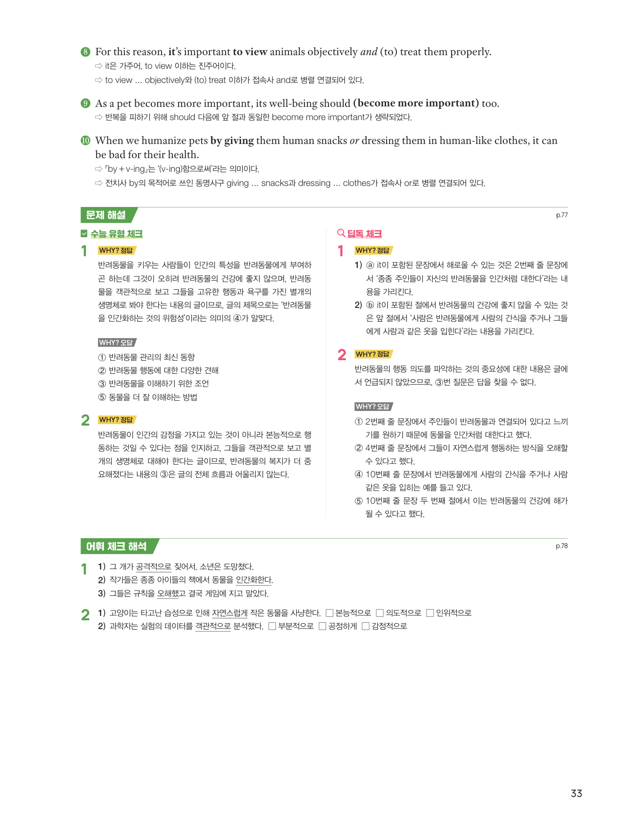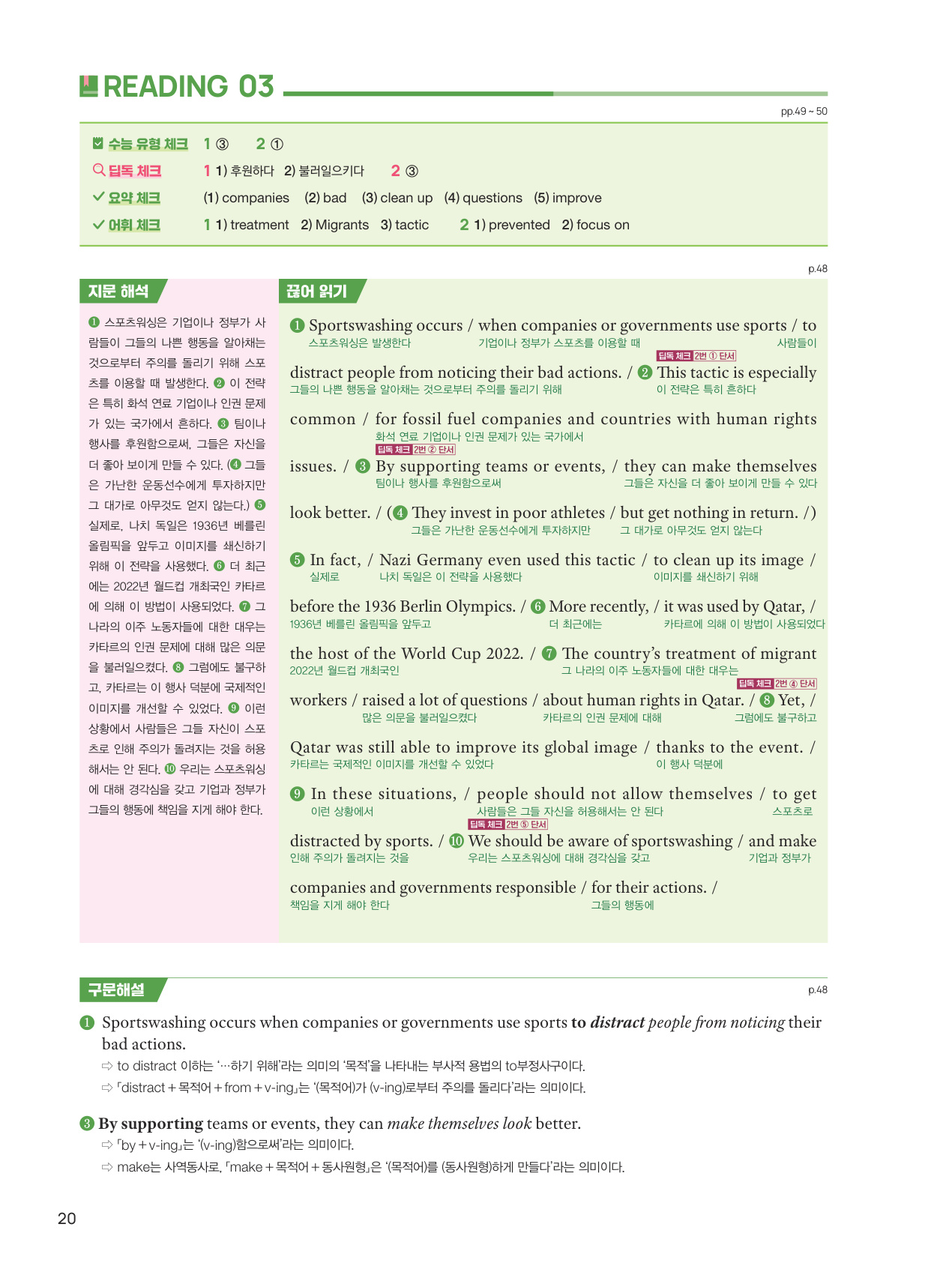 수능 영어는 선지에서 다의어를 사용하거나, 지문에서 등장한 단어의 유의어 또는 반의어가 쓰여 답을 고르기 어려운 경우가 많습니다. 학습자들은 단어의 뉘앙스를 구별하고 의미를 확장시킬 수 있는 수능 딥독의 다양한 코너를 통해 단어에 대한 자신감을 키울 수 있습니다