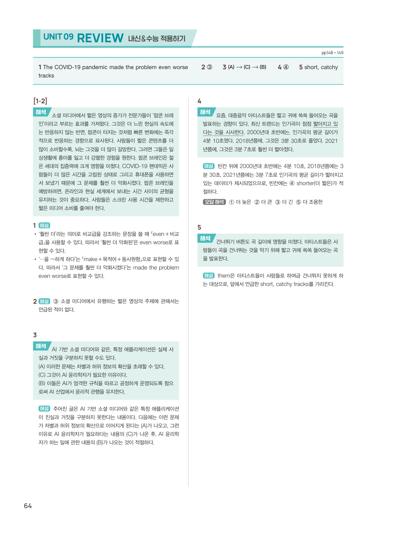 - 수능 경향 변화를 반영한 딥독과 정확한 독해 훈련 제시