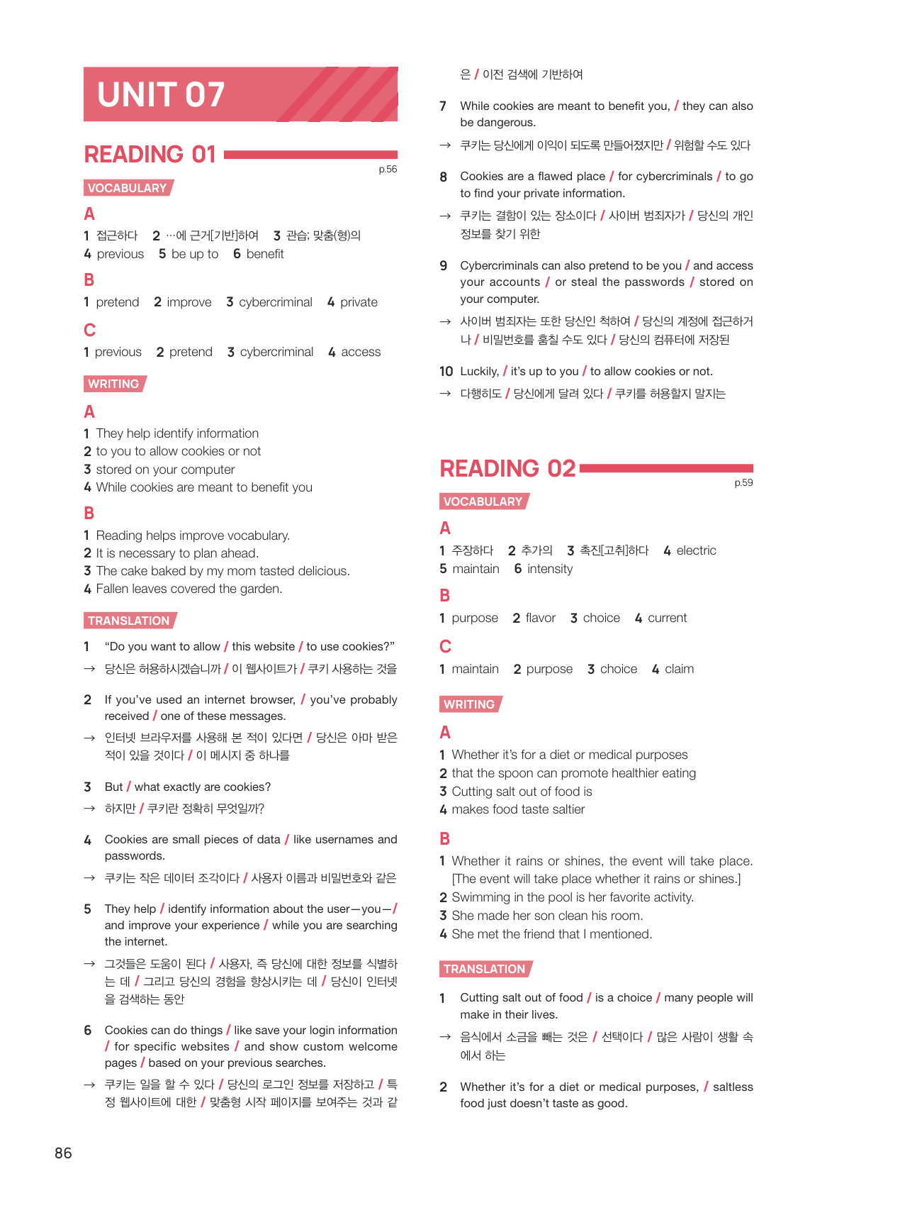 Reading 02 나트륨 섭취를 줄여주는 기술 107
