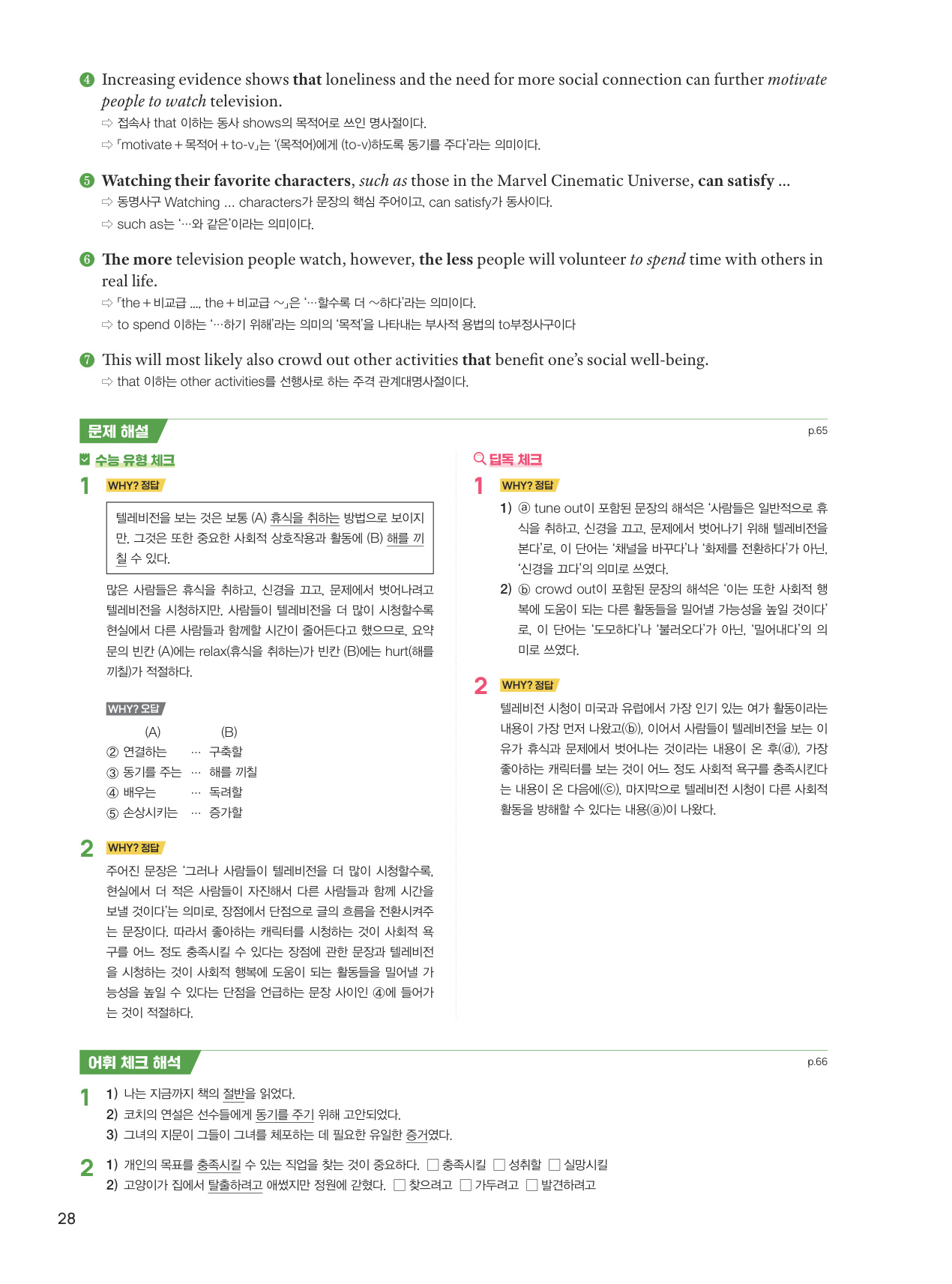 수능 영어는 선지에서 다의어를 사용하거나, 지문에서 등장한 단어의 유의어 또는 반의어가 쓰여 답을 고르기 어려운 경우가 많습니다. 학습자들은 단어의 뉘앙스를 구별하고 의미를 확장시킬 수 있는 수능 딥독의 다양한 코너를 통해 단어에 대한 자신감을 키울 수 있습니다