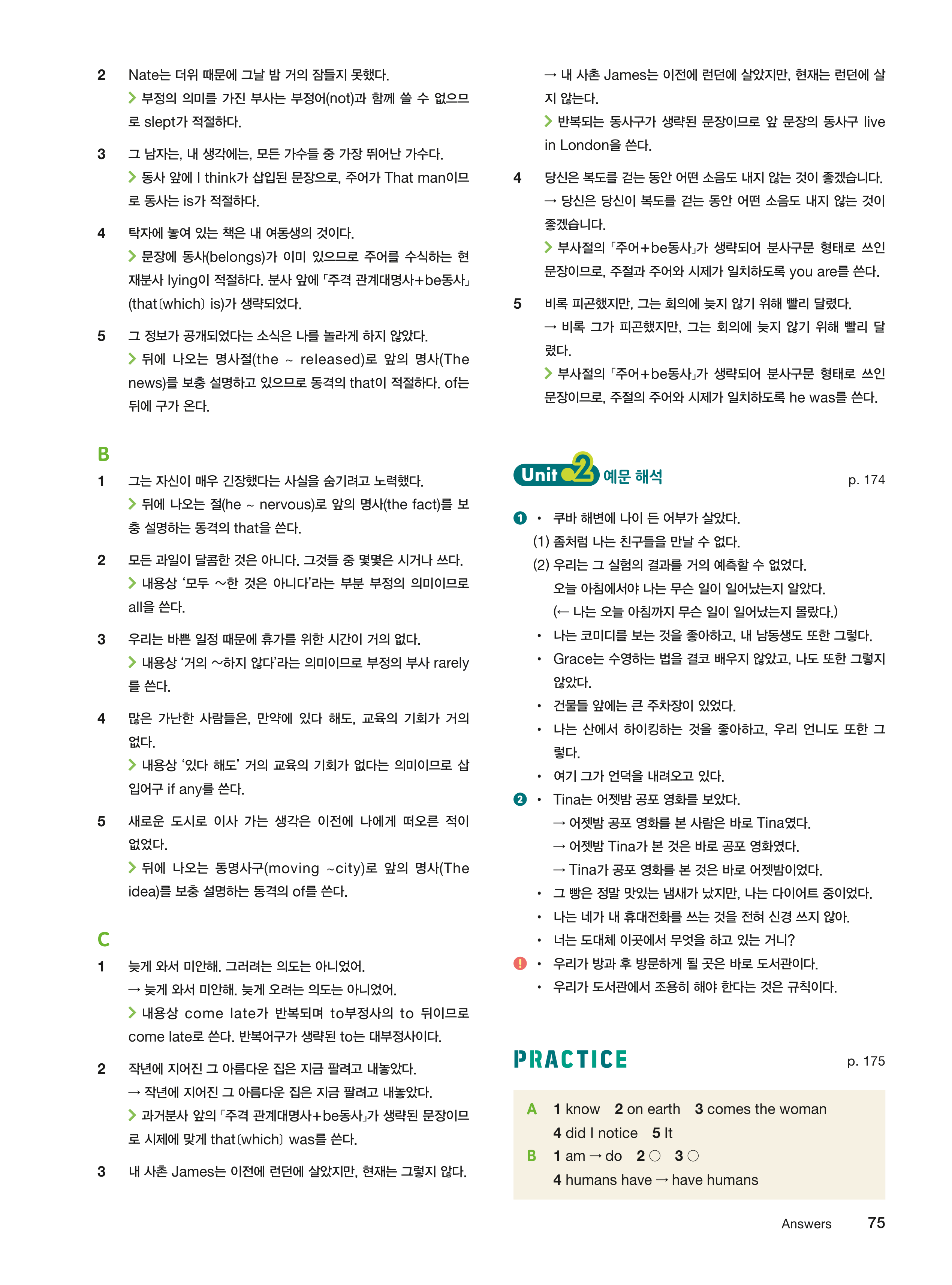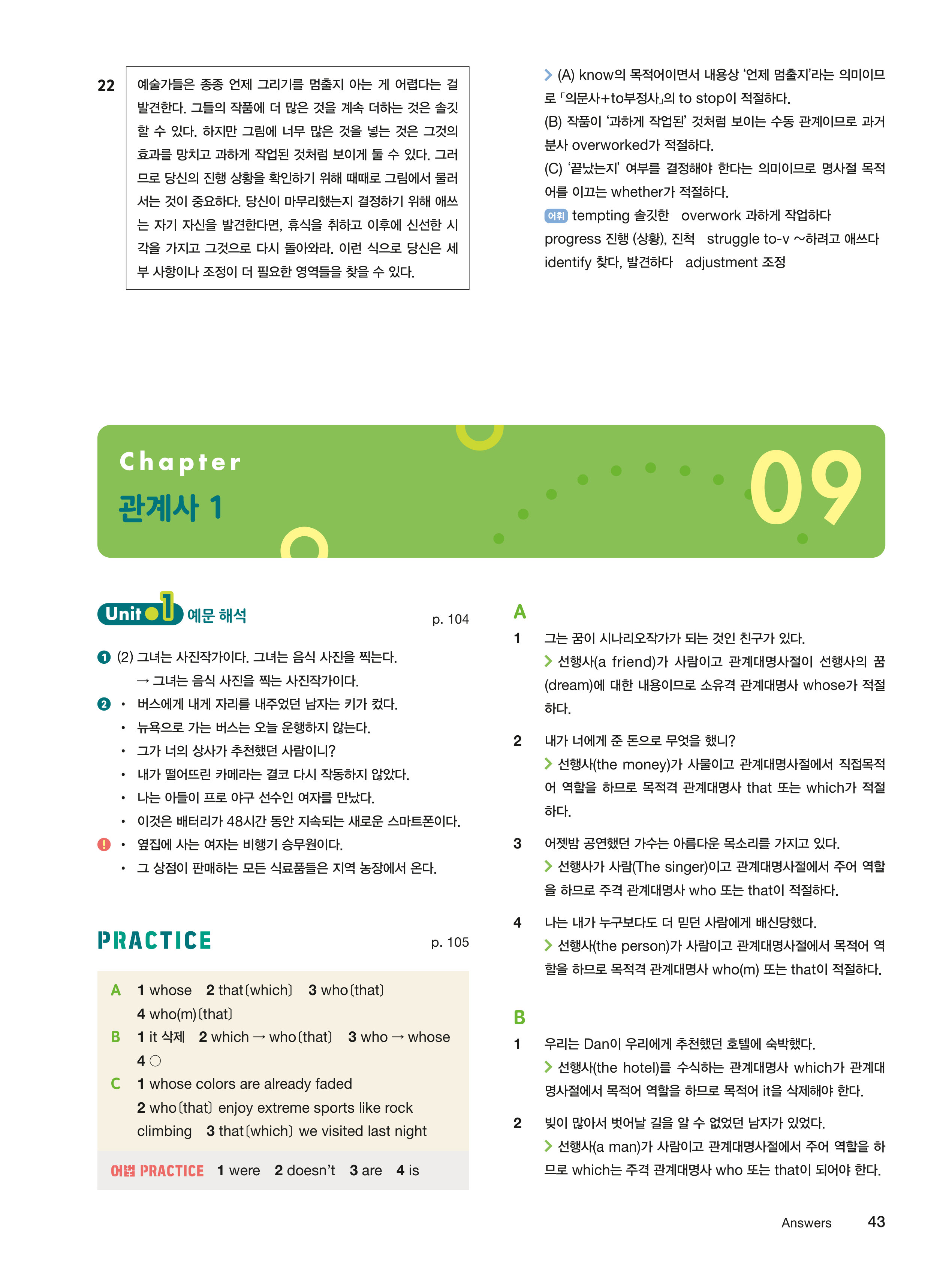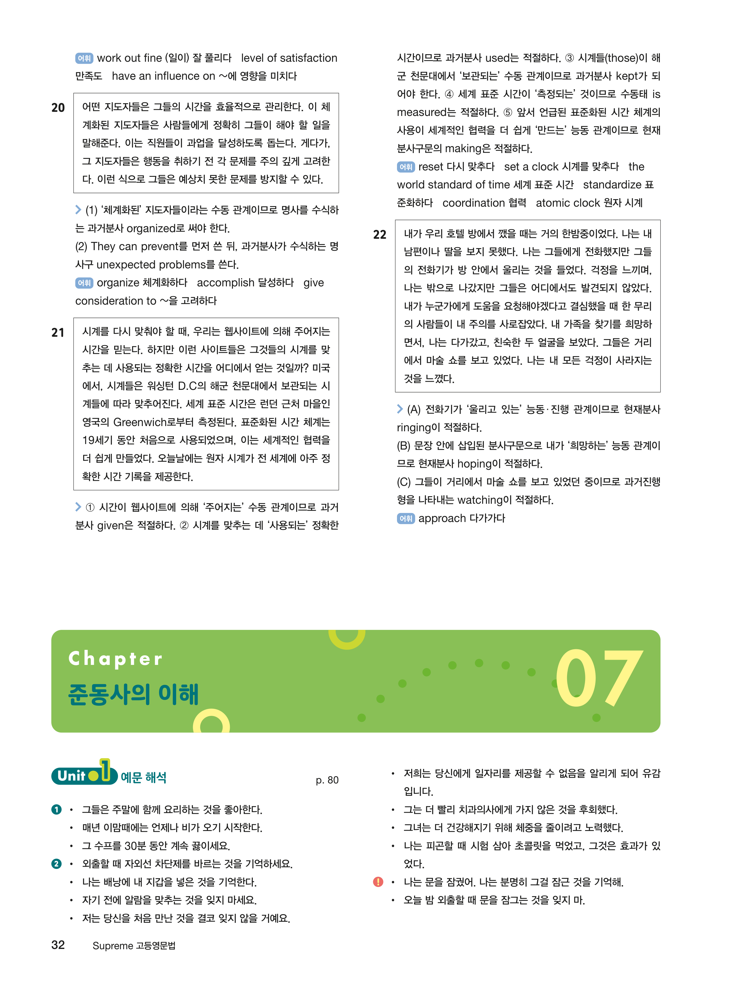 학습하기 좋도록 관련 문법 챕터를 총 다섯 개 파트로 묶어 구성하였으며, 각 파트 앞에 제시되는 그래머 맵을 통해 배울 내용을 미리 확인해 볼 수 있다. 또한 각 챕터 앞에 제시되는 핵심 문법 용어 사전은 늘 헷갈리고 어려운 문법 용어를 쉽게 이해할 수 있도록 도와준다. 마지막으로 파트 마무리를 통해 핵심 문법을 다시 복습할 수 있다.