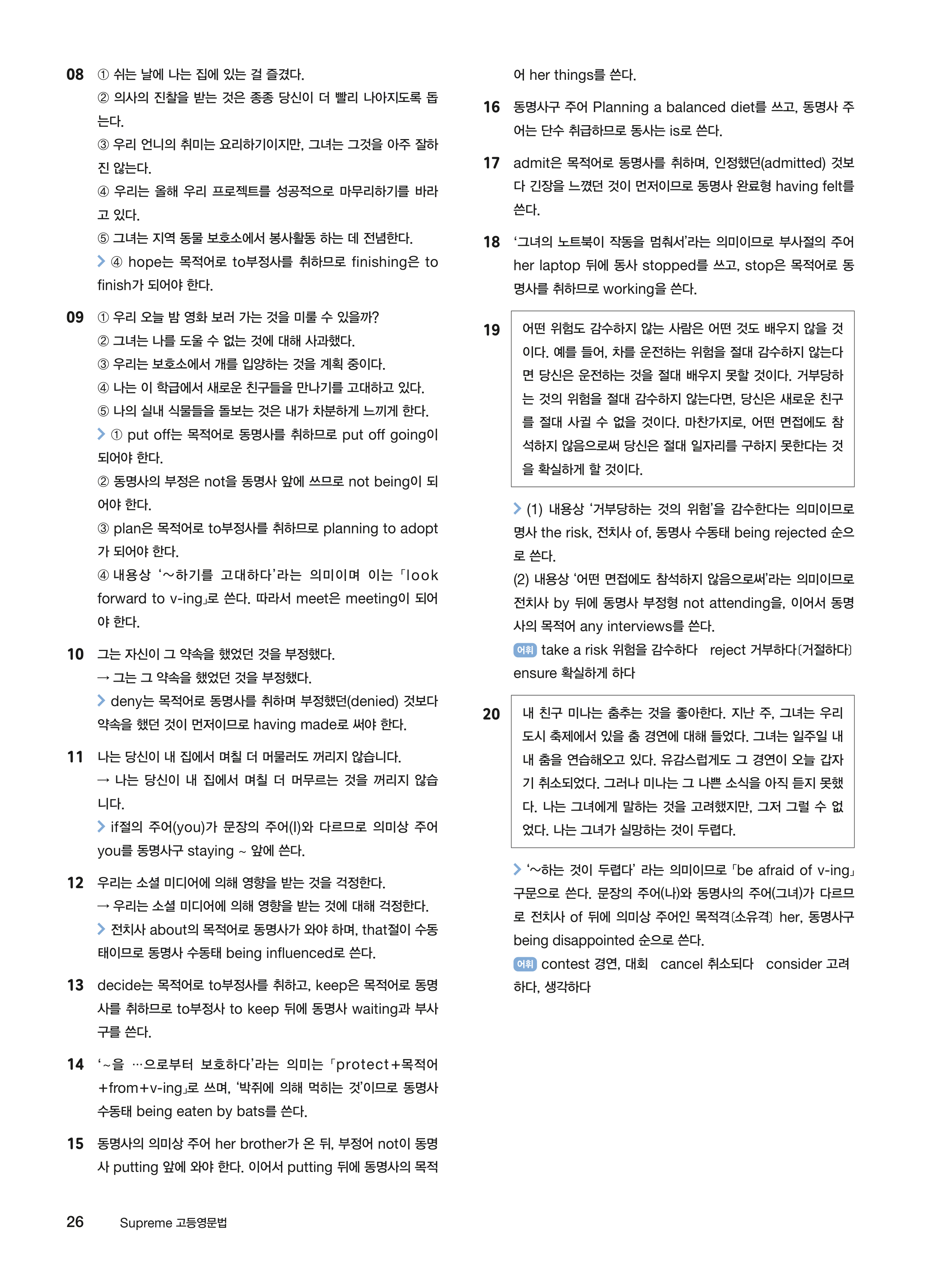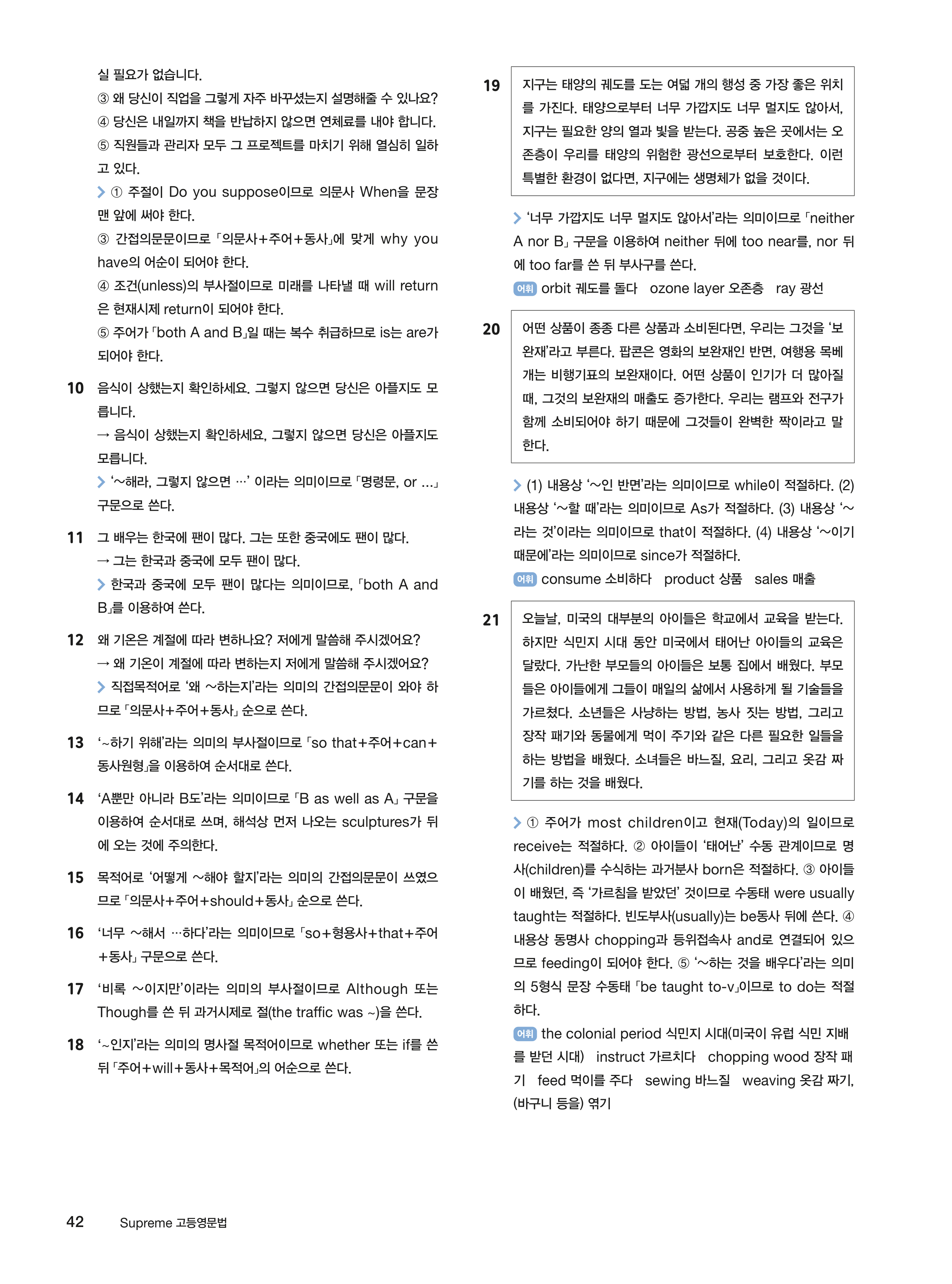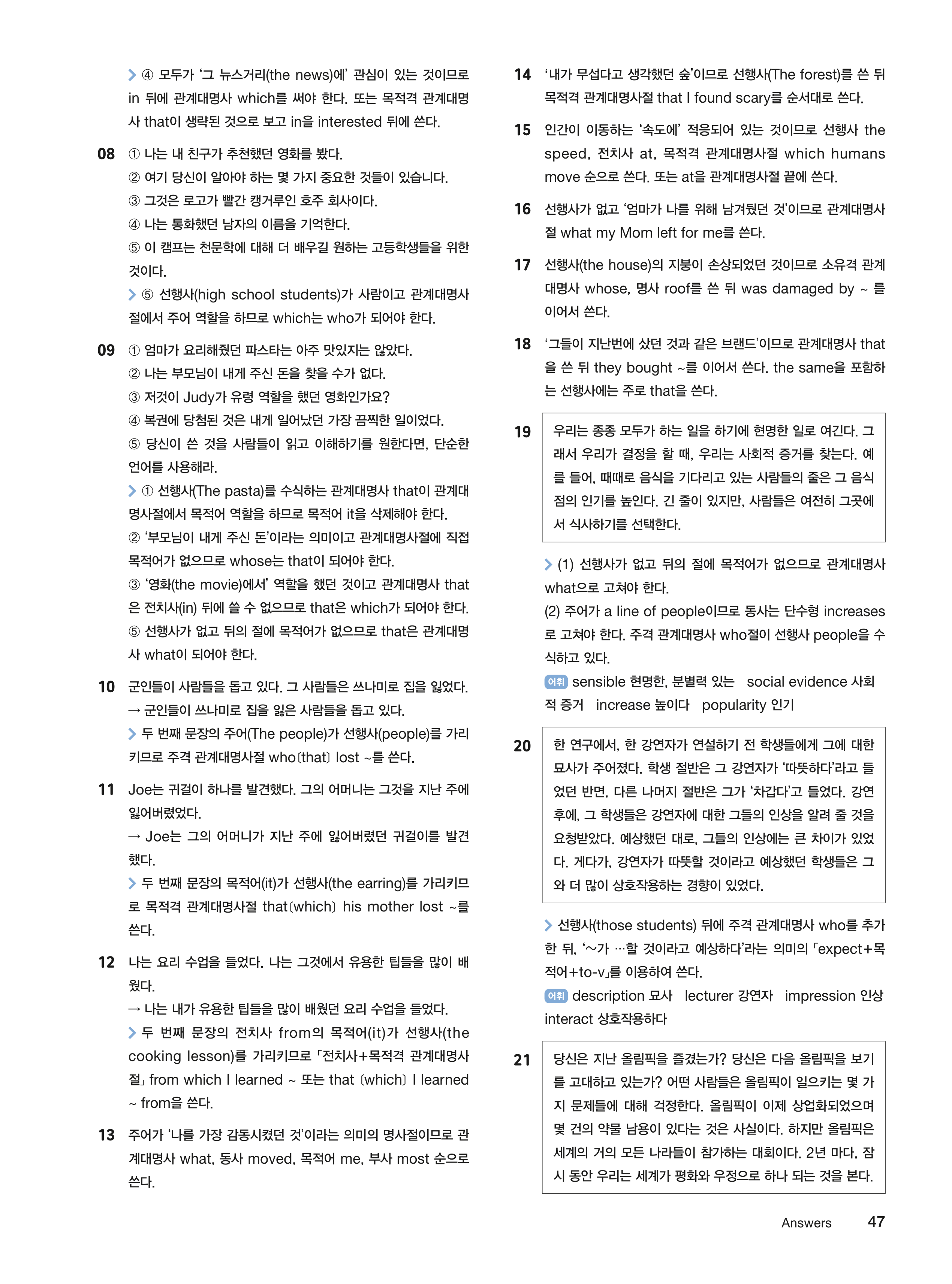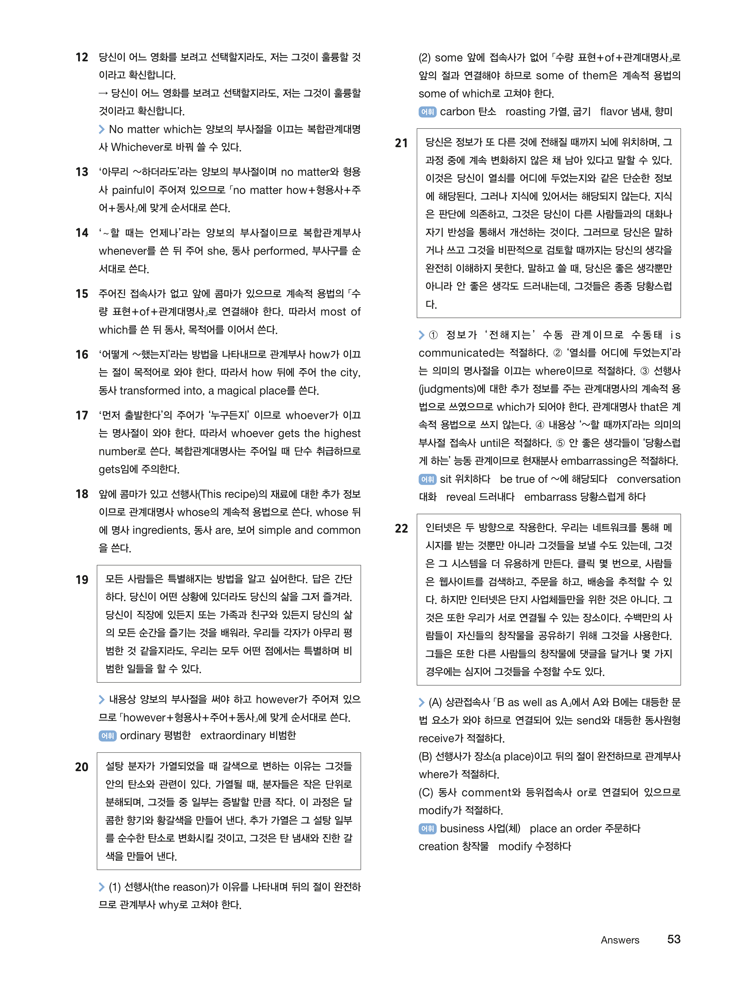 학습하기 좋도록 관련 문법 챕터를 총 다섯 개 파트로 묶어 구성하였으며, 각 파트 앞에 제시되는 그래머 맵을 통해 배울 내용을 미리 확인해 볼 수 있다. 또한 각 챕터 앞에 제시되는 핵심 문법 용어 사전은 늘 헷갈리고 어려운 문법 용어를 쉽게 이해할 수 있도록 도와준다. 마지막으로 파트 마무리를 통해 핵심 문법을 다시 복습할 수 있다.
