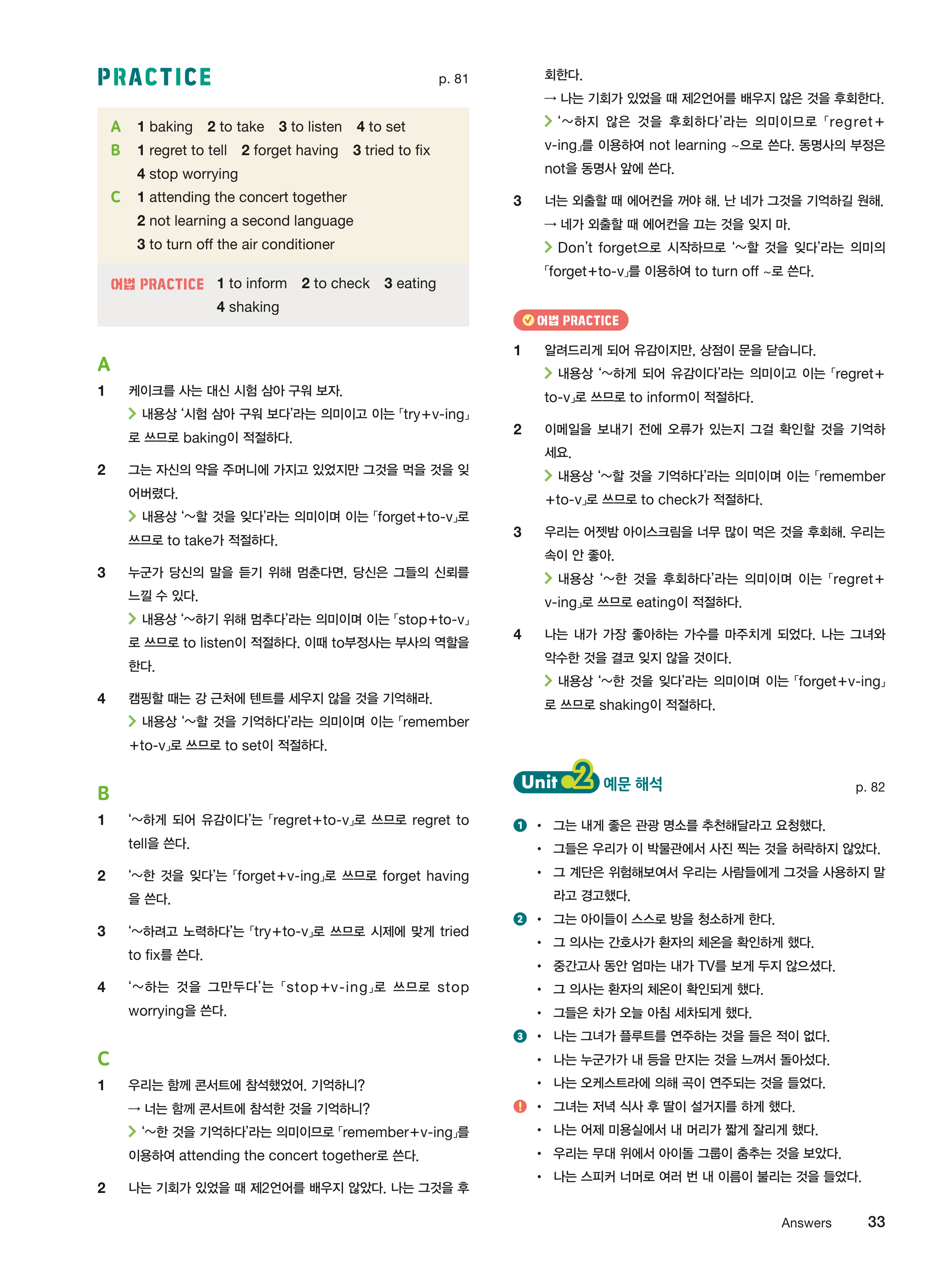 UNIT 01 목적어로 쓰이는 to부정사 / 동명사