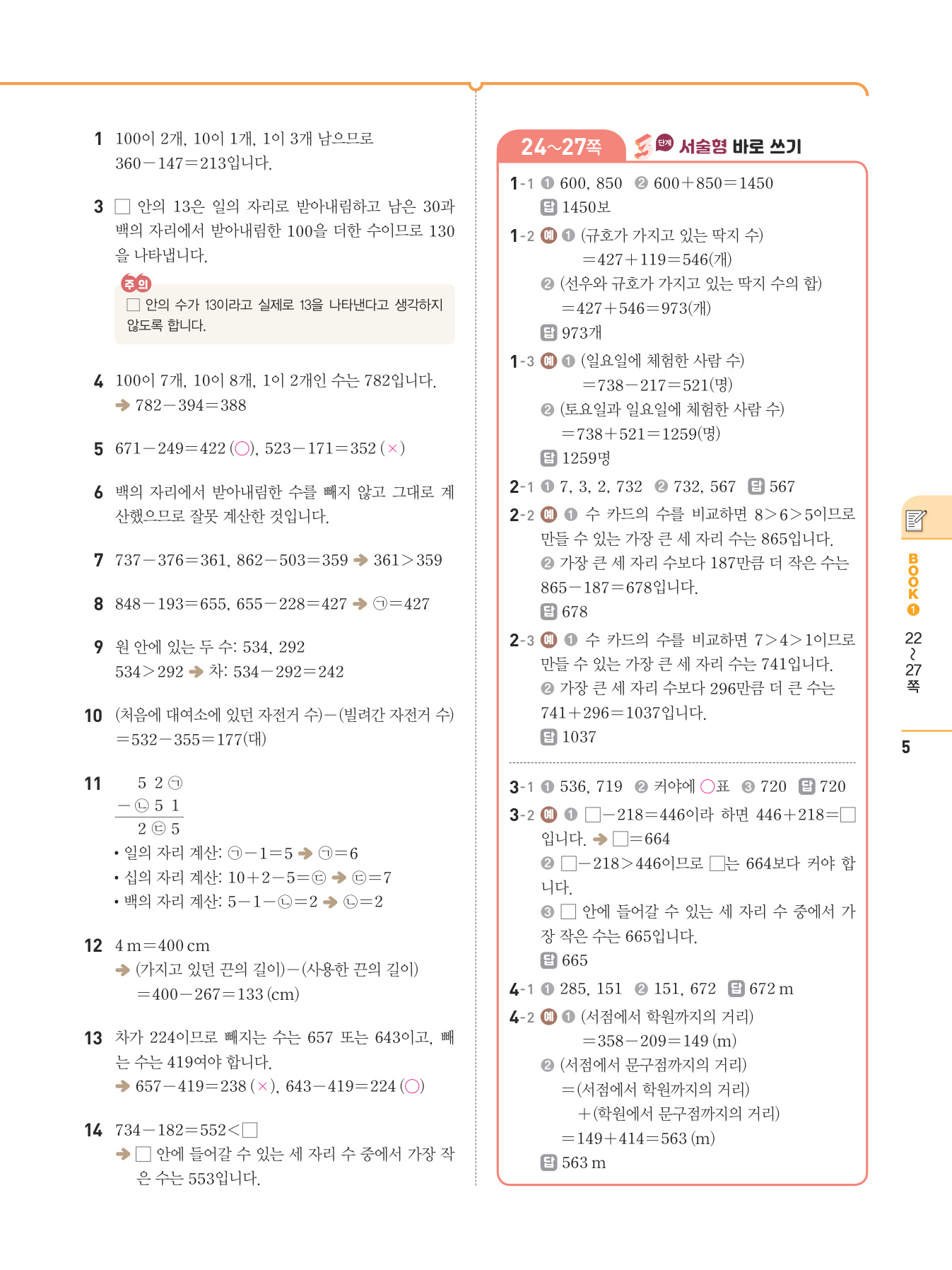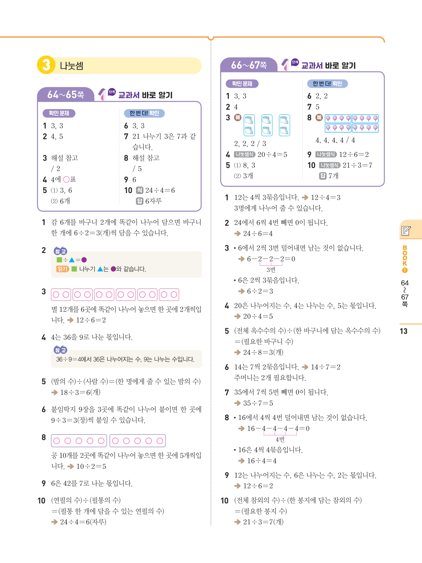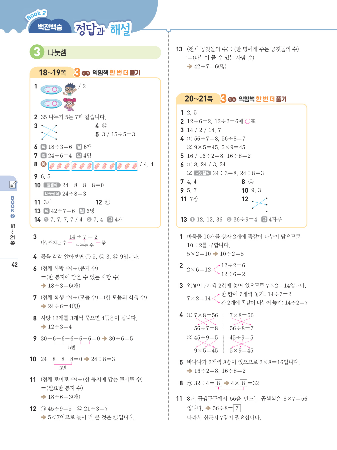 - 1단계 왼쪽의 기초문제로 개념을 익히고, 오른쪽의 한 번 더 문제로 철저히 다지는 시스템!