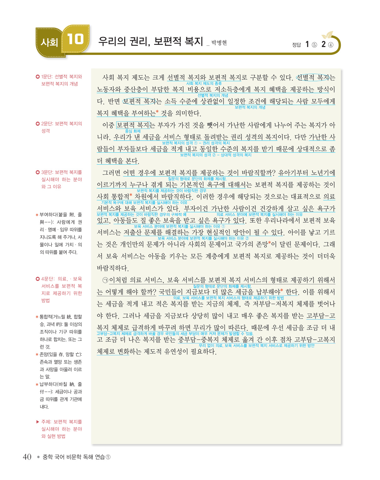 [사회 10] 〈복지〉 우리의 권리, 보편적 복지 _ 박병현