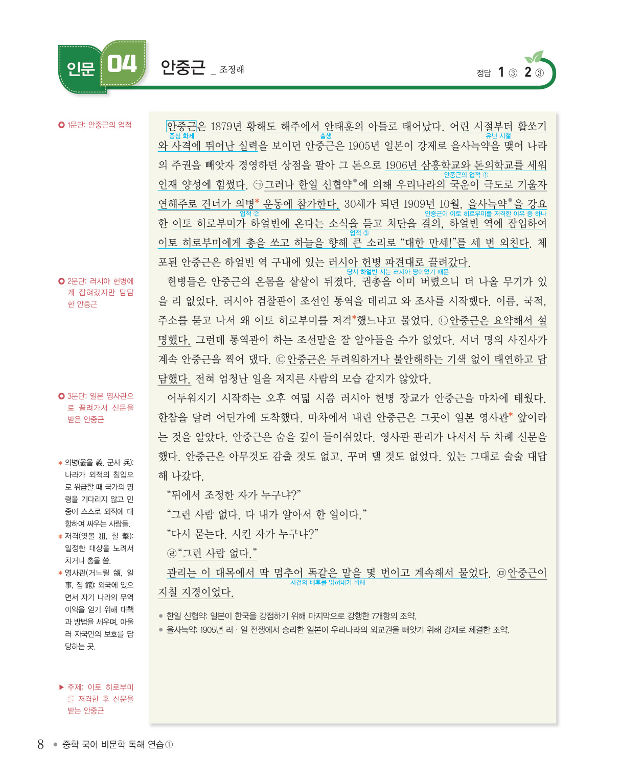 [인문 04] 〈전기문〉 안중근 _ 조정래