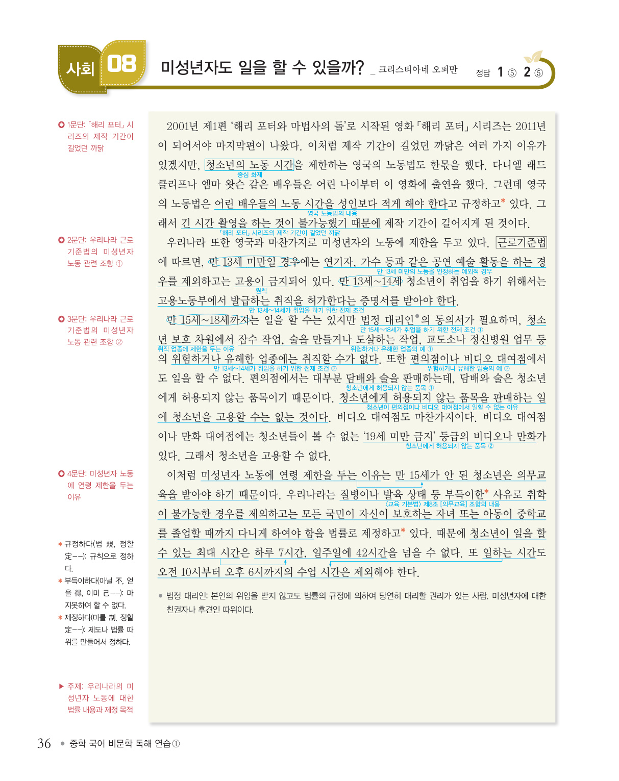 [사회 08] 〈법률〉 미성년자도 일을 할 수 있을까? _ 크리스티아네 오퍼만