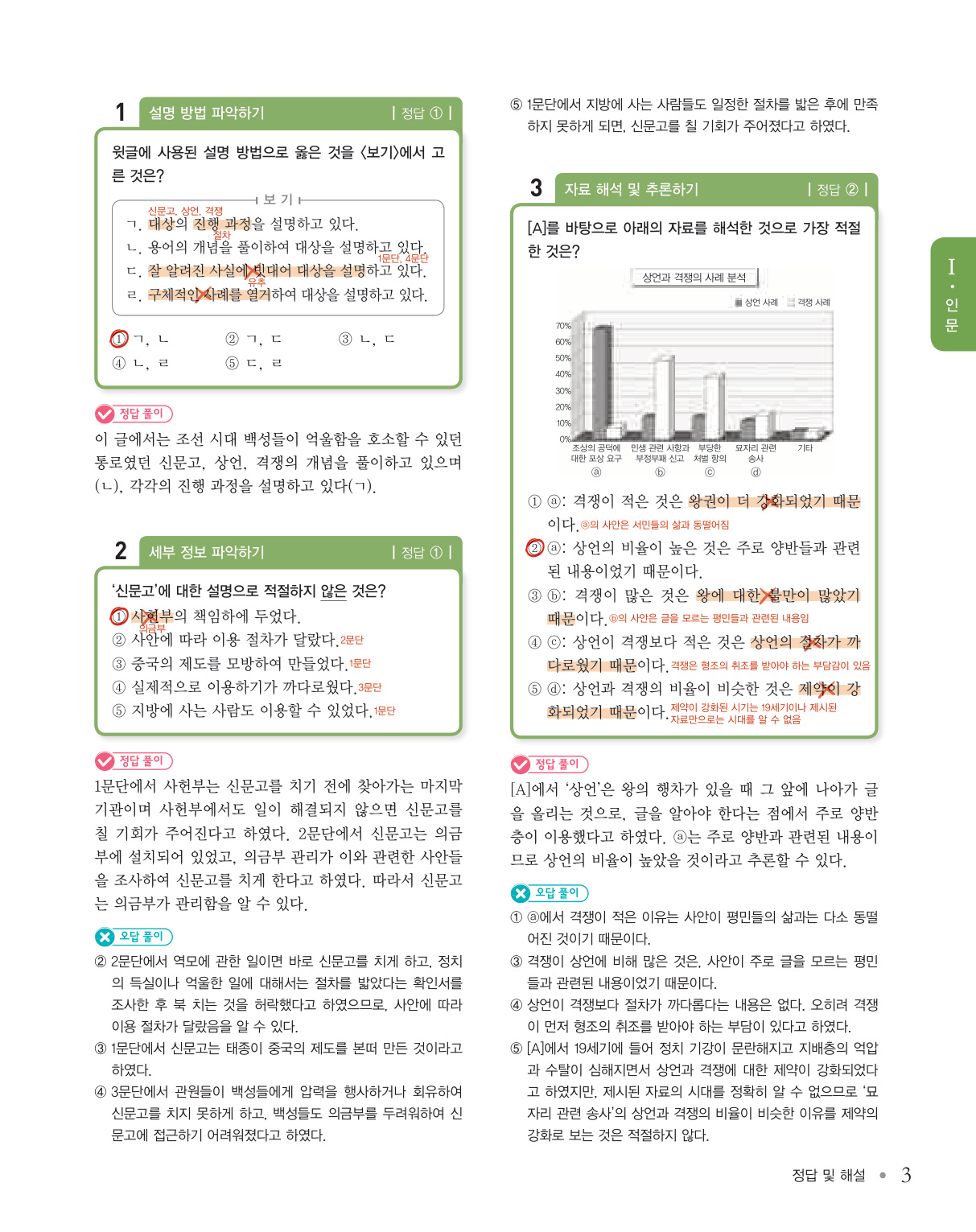 혼자 공부하더라도 어렵지 않도록 수록된 모든 지문을 행간주를 통해 분석하여 구성하였으므로 이 책의 해설을 최대한 활용하기 바랍니다. 또한 학부모나 선생님들의 수업 및 학습 지도 자료로 활용할 때 큰 효과를 거둘 수 있도록 지문 해제, 문단 요지, 주제, 정답 풀이, 오답 풀이 등도 상세하게 수록하였습니다.