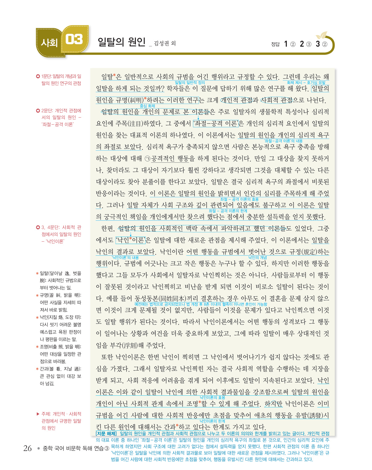 [사회 03] 〈사회학〉 일탈의 원인 _ 김성권 외