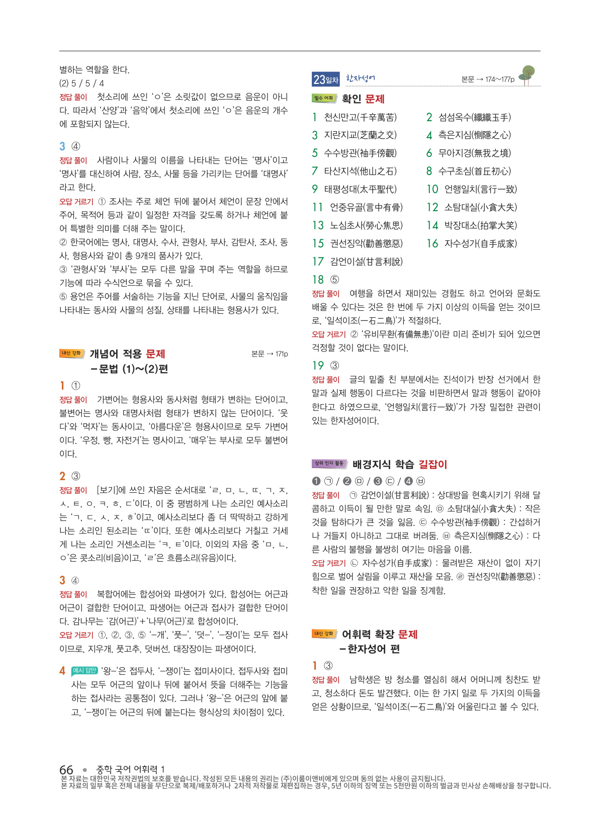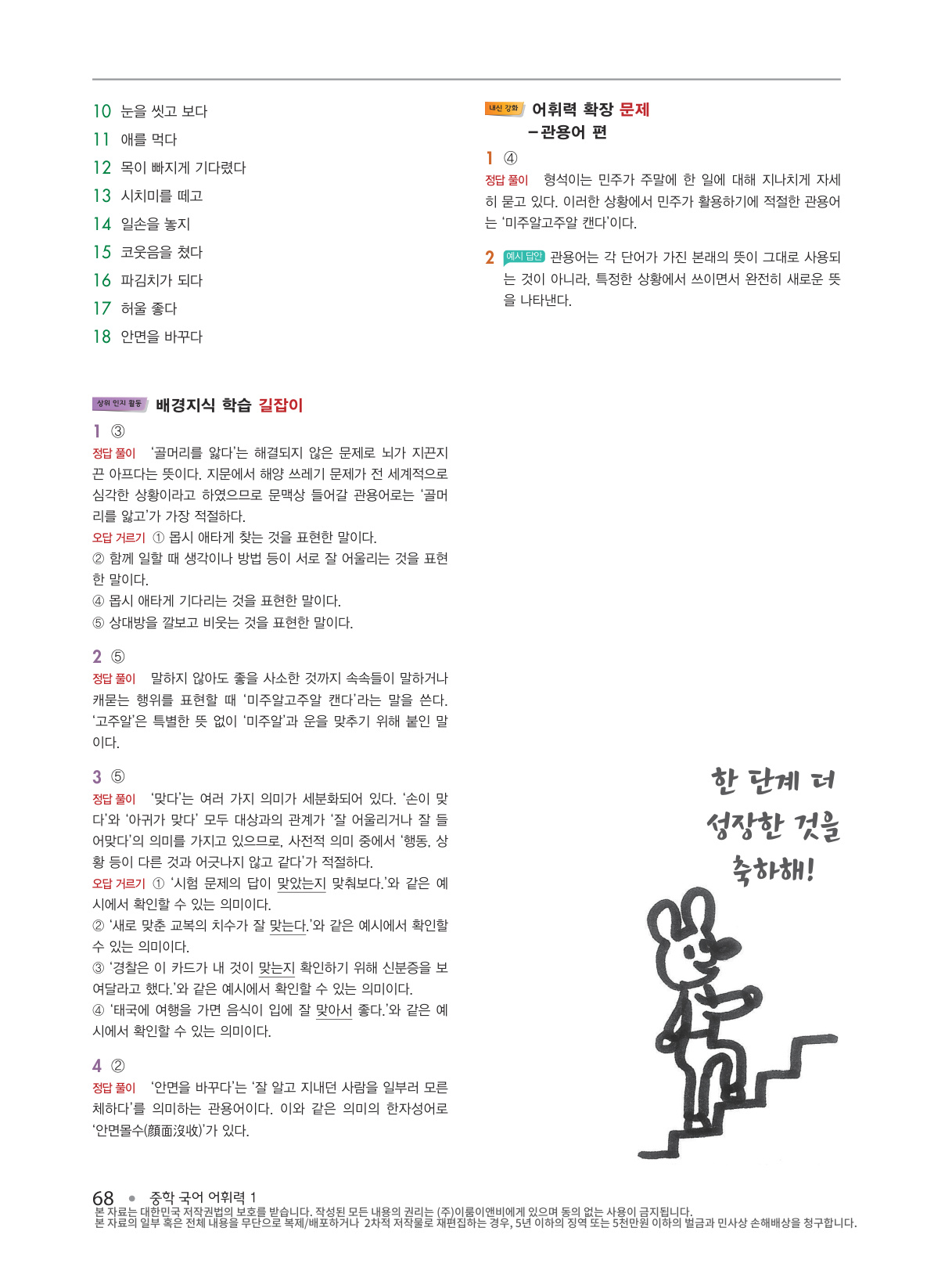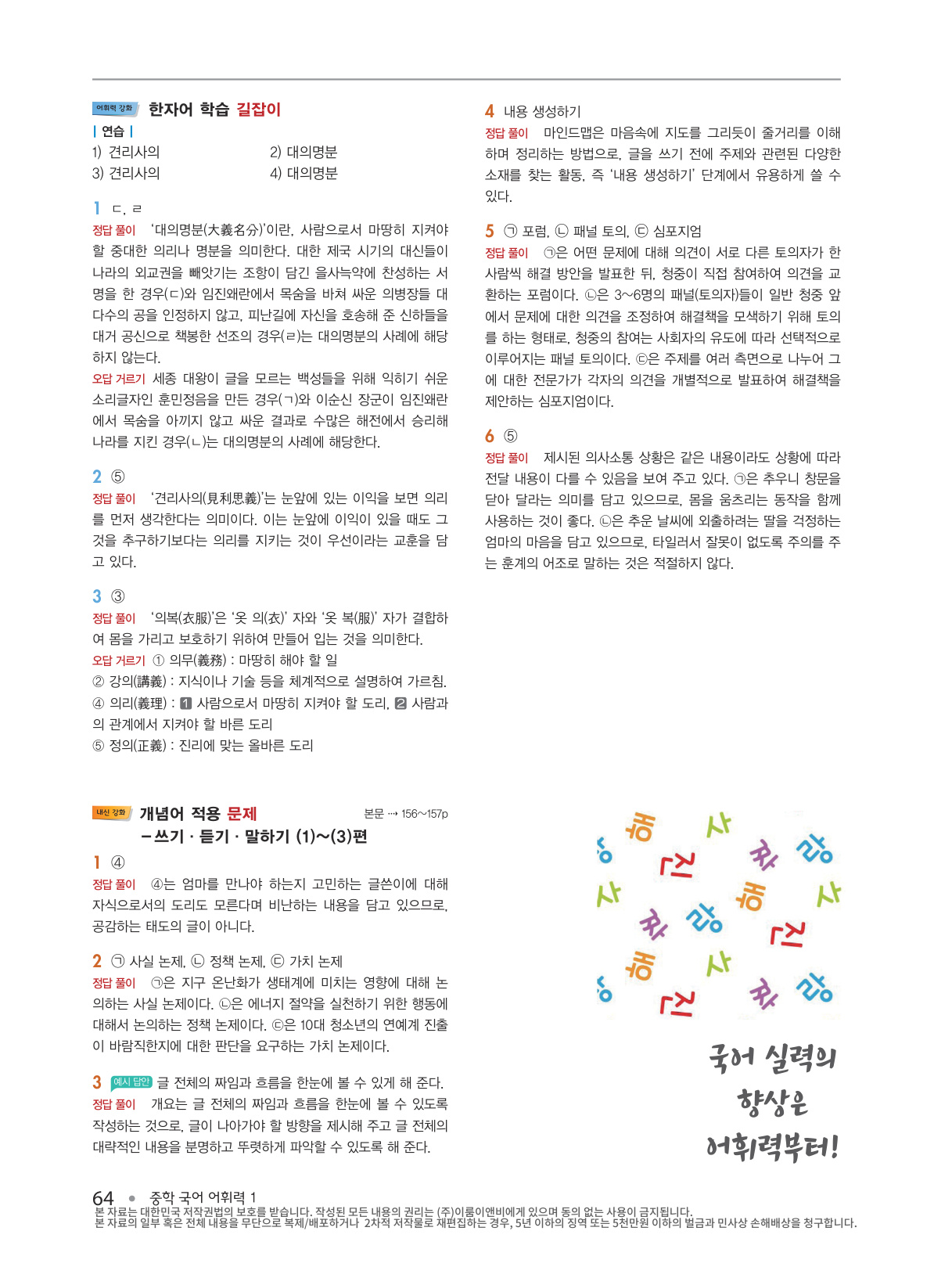4) 어휘력 강화- ‘한자어 학습’, ‘문법 학습’, ‘배경지식 학습’ 길잡이 코너로 중들 국어 실력을 한층 더 높일 수 있습니다.