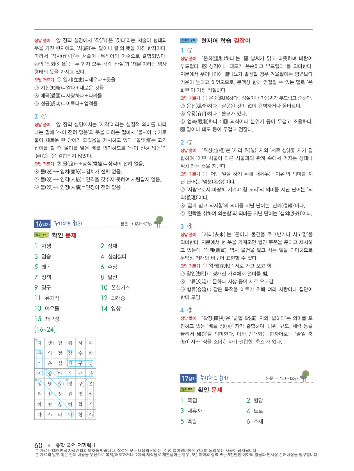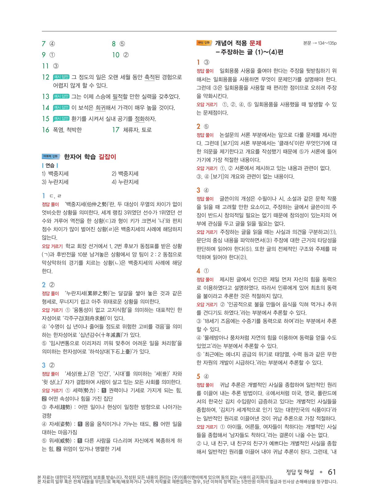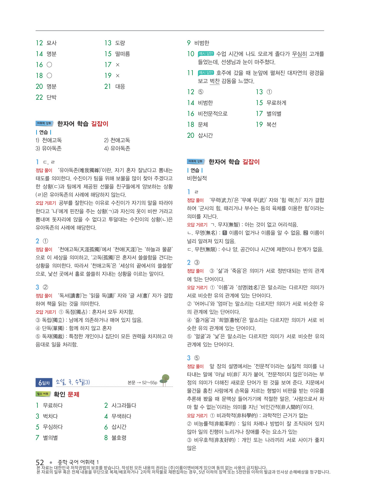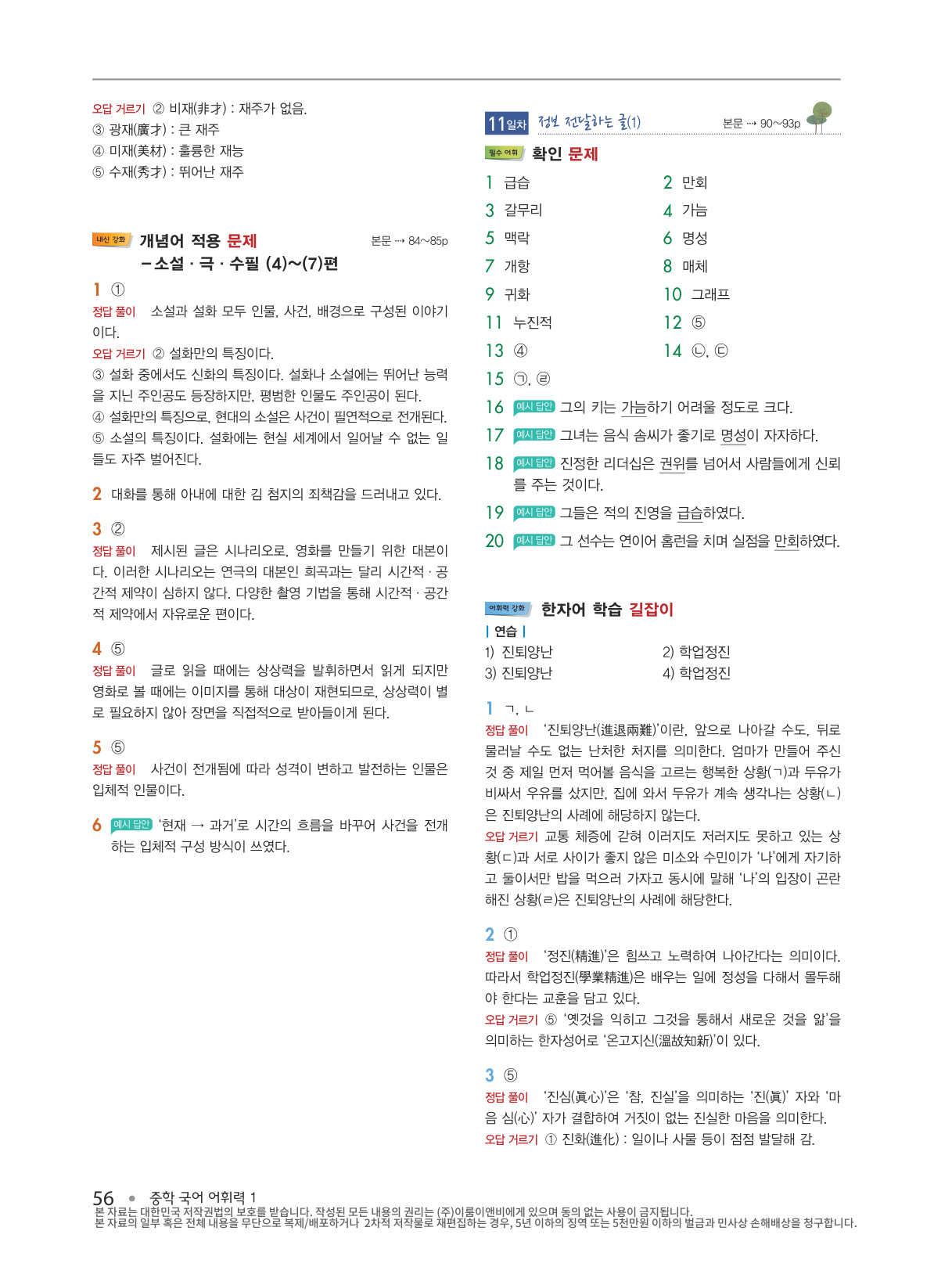 4) 어휘력 강화- ‘한자어 학습’, ‘문법 학습’, ‘배경지식 학습’ 길잡이 코너로 중들 국어 실력을 한층 더 높일 수 있습니다.