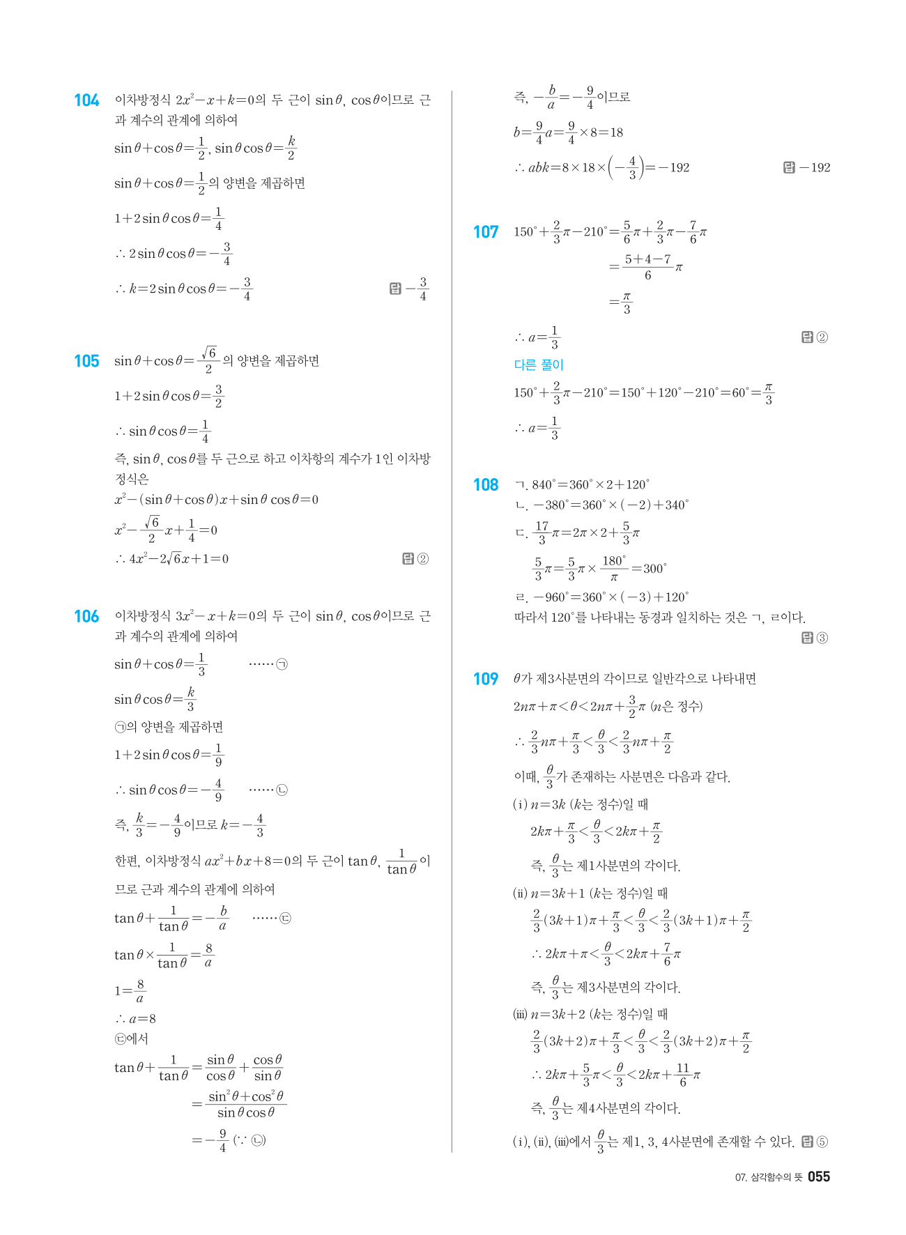 ☆ 개념기본서 「수학의 샘」과 연계된 문제기본서