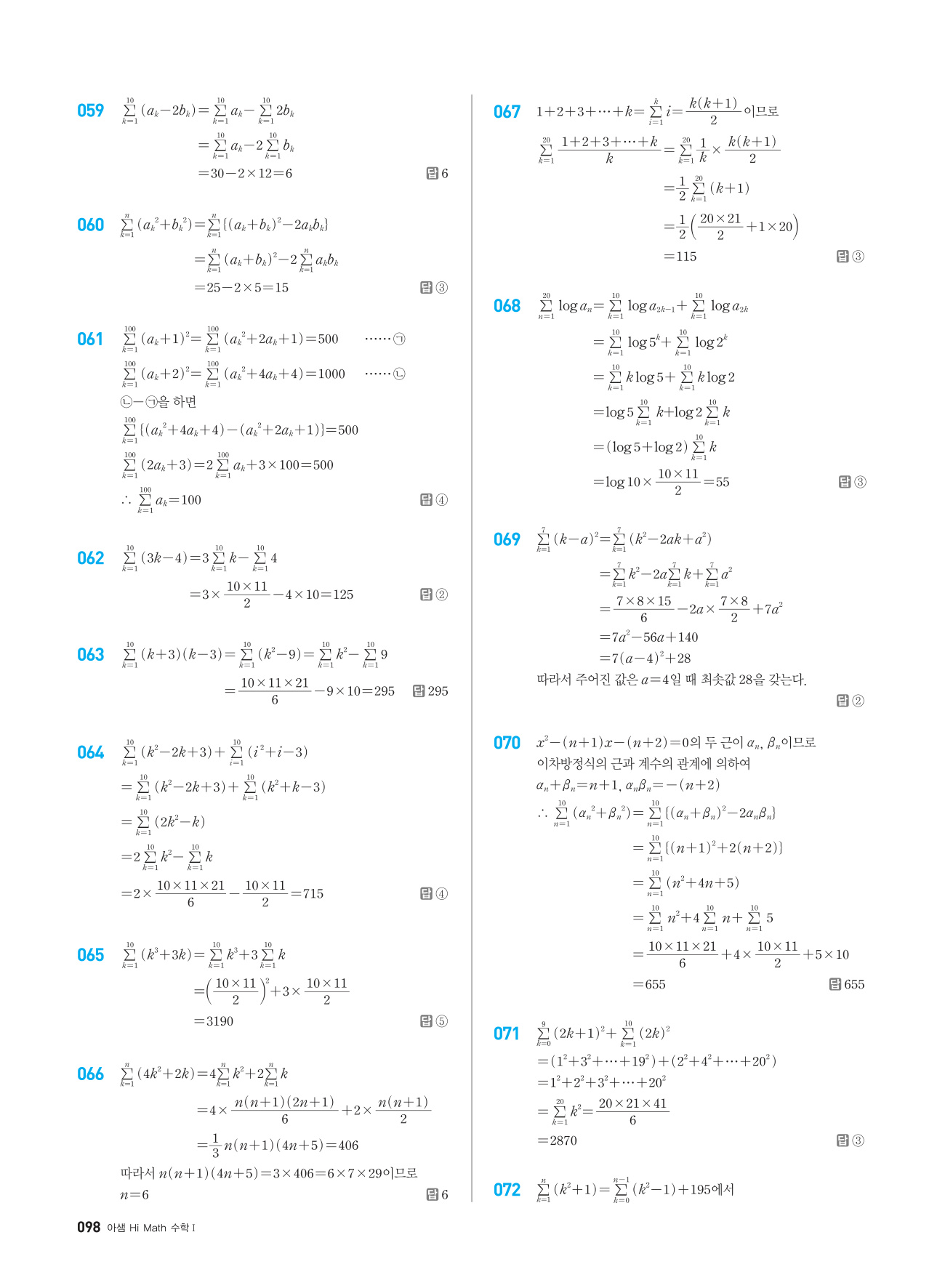 ☆ 개념기본서 「수학의 샘」과 연계된 문제기본서