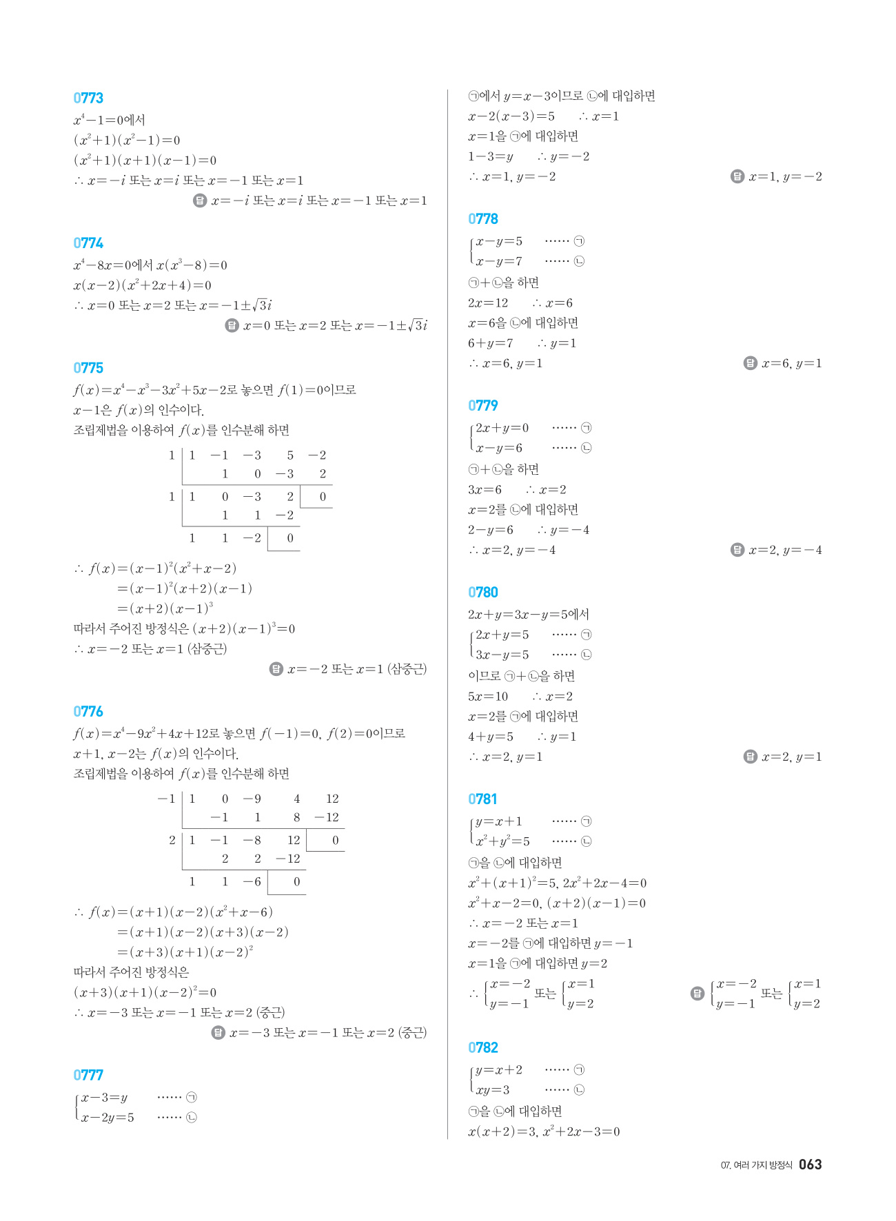 07. 여러 가지 방정식