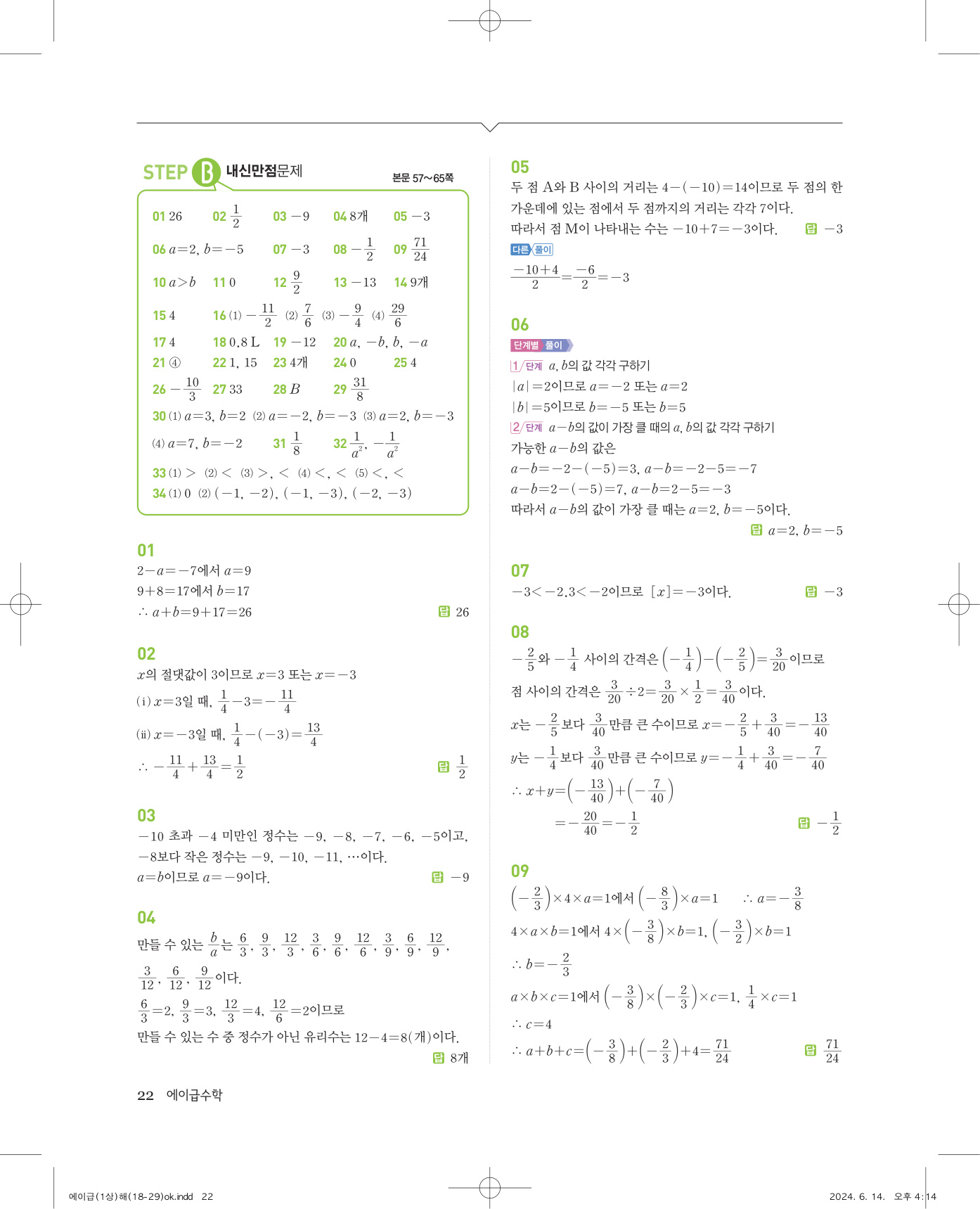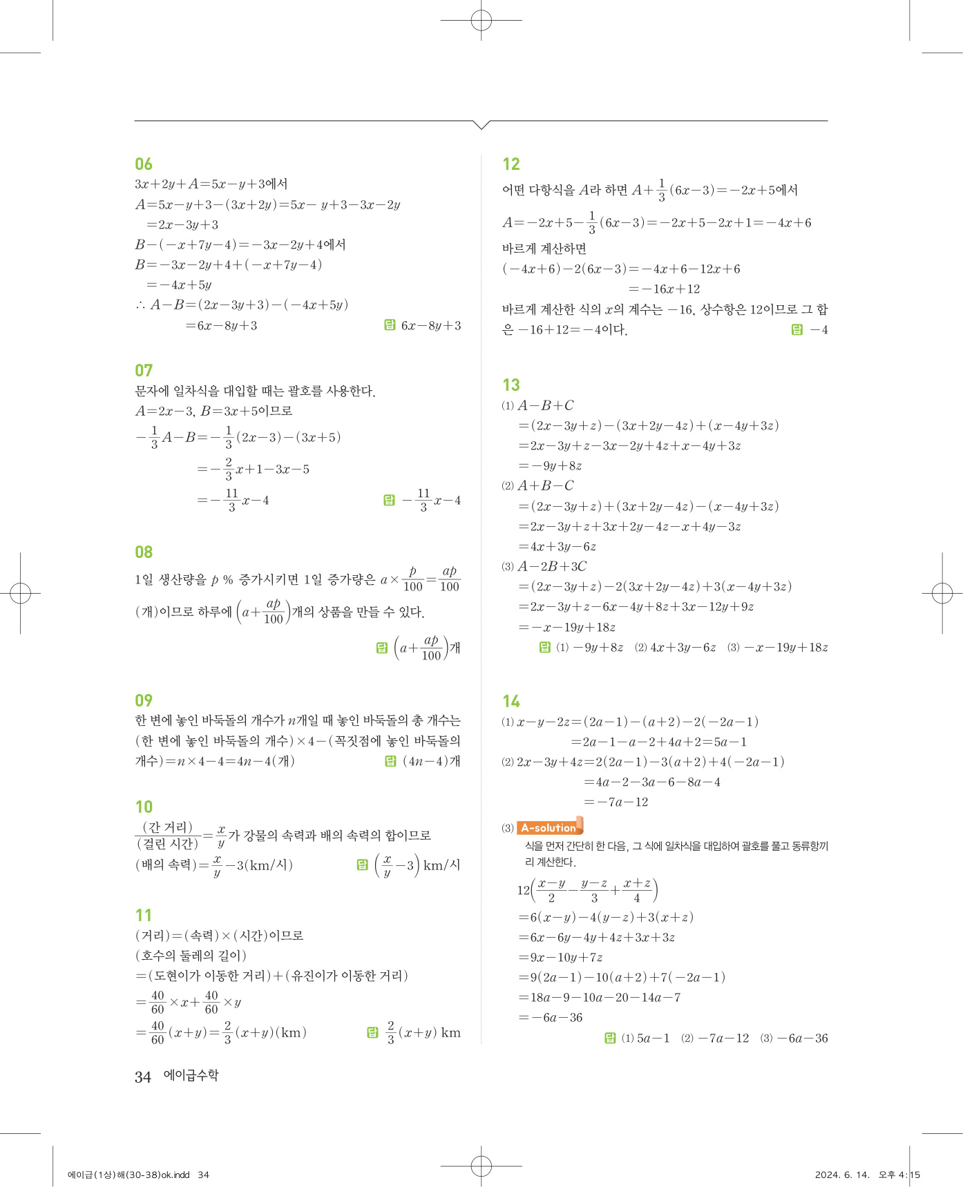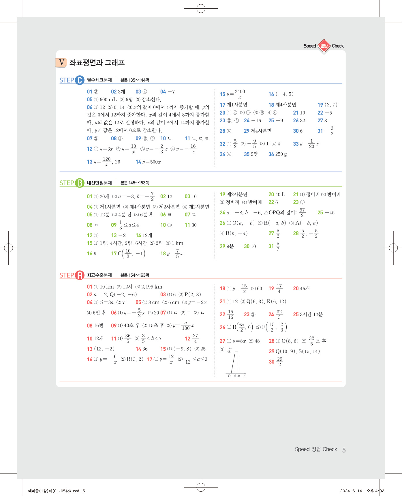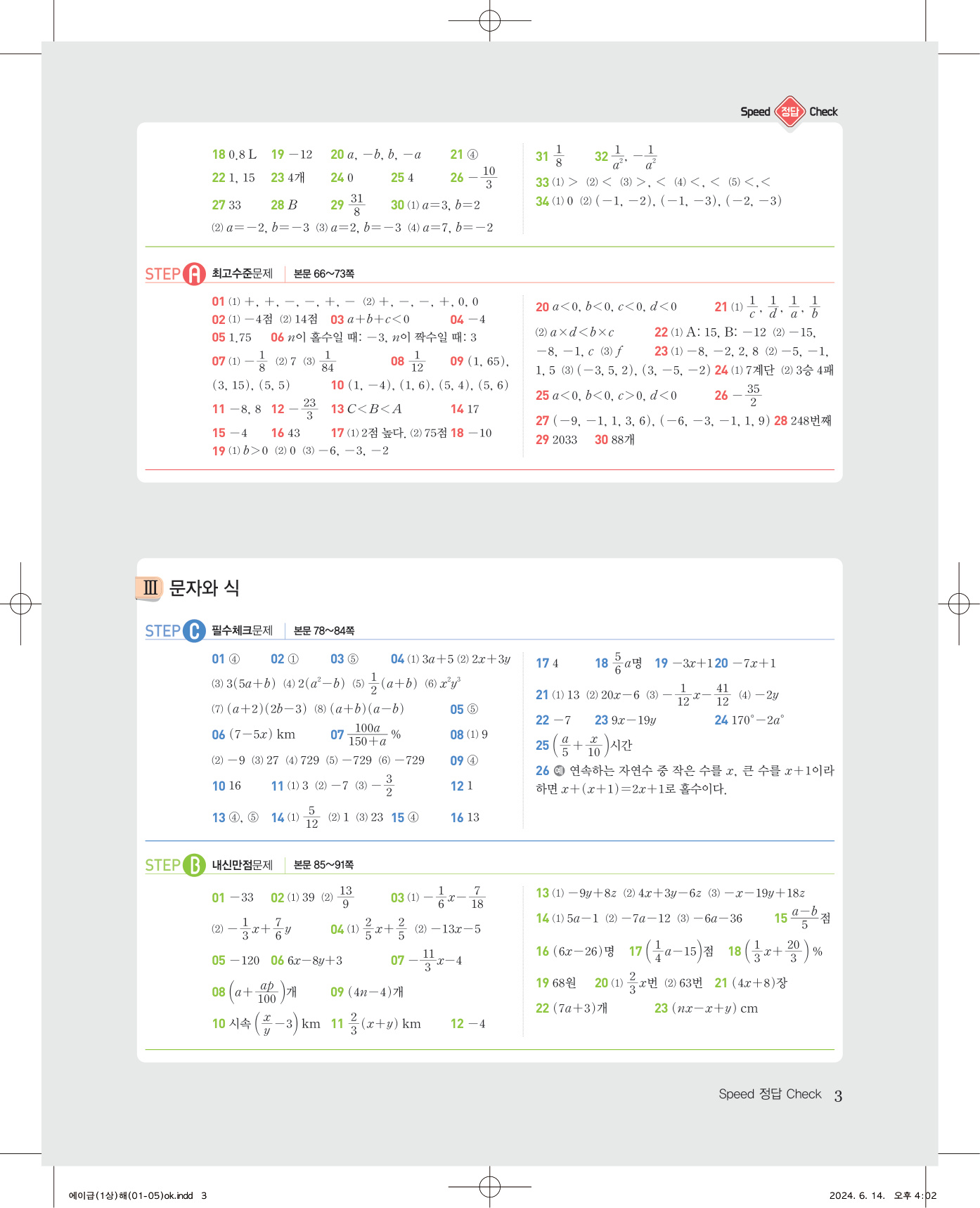 답지 해설 에이급 수학 중등 1-1 답지 해설 2025 by 답지다운 2025. 4. 11. 📑 목차 열기 ▼ 목차 Ⅰ 소인수분해Ⅱ 정수와 유리수Ⅲ 문자와 식Ⅳ 방정식Ⅴ 좌표평면과 그래프 답지 해설 사진답지 첨부하였습니다. 파일을 원하시면 맨 마지막에있습니다. 저작권은 해당 출판사에 있습니다. 반응형 통합_중등에이급1-1정답_240618.pdf 1.22MB 공유하기 게시글 관리 답지 다운 저작자표시 비영리 변경금지 (새창열림) 관련글 1등급 만들기 기하 334제 답지 해설 2025 에이급 수학 중등 1-2 답지 해설 2025 숨마쿰라우데 스타트업 대수 답지 해설 2026 숨마쿰라우데 중학수학 스타트업 2-1 답지 해설 2026