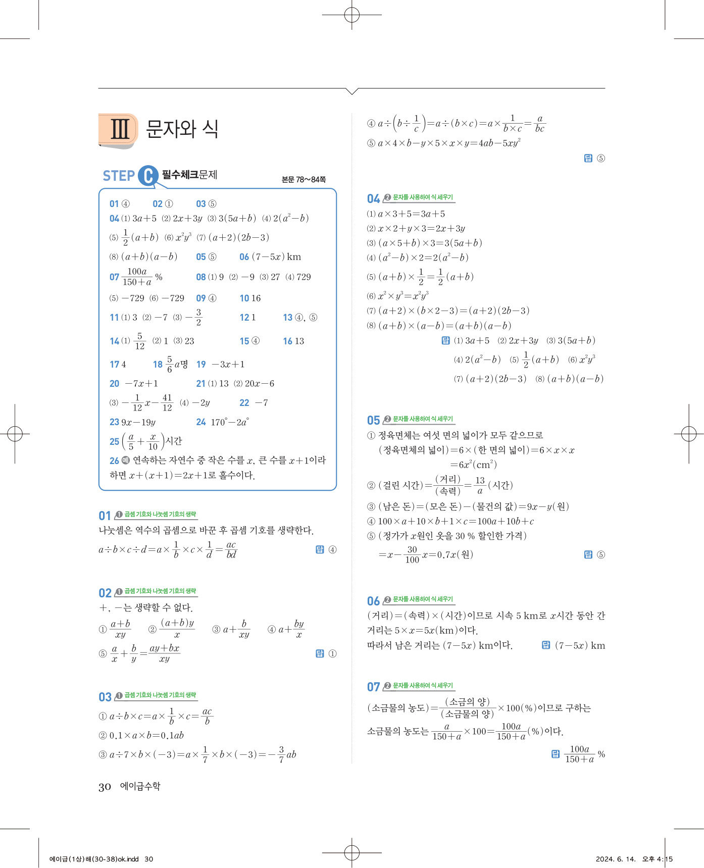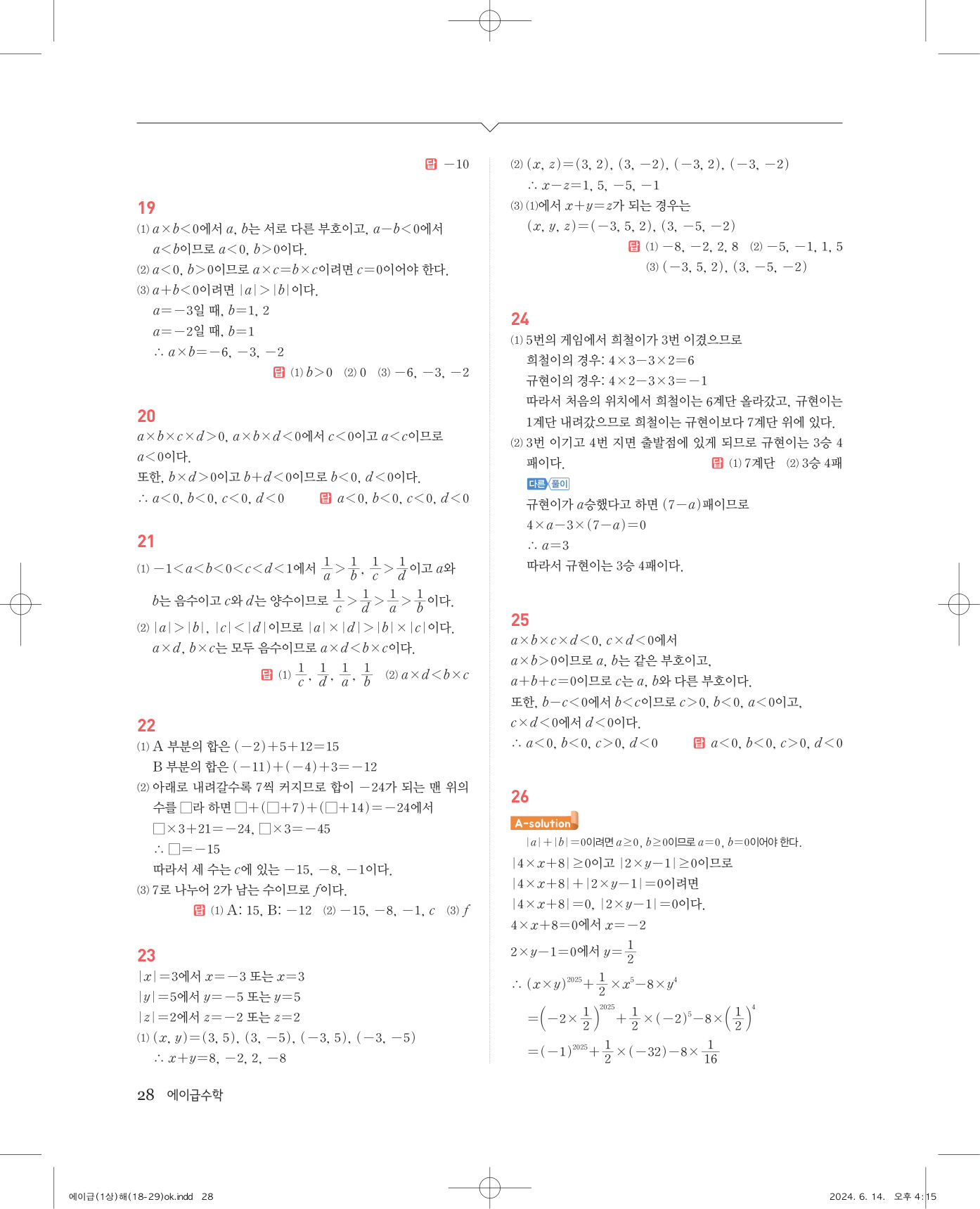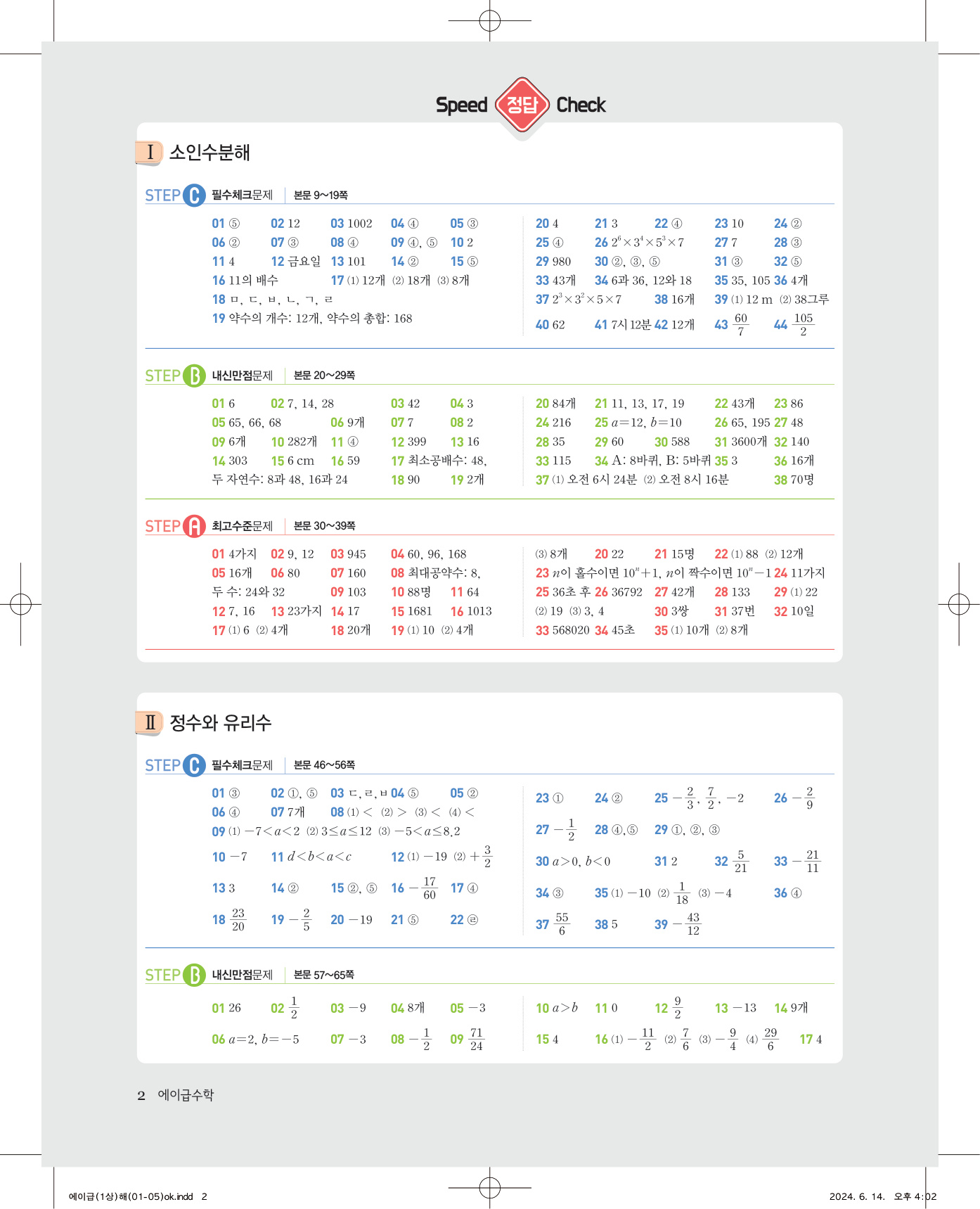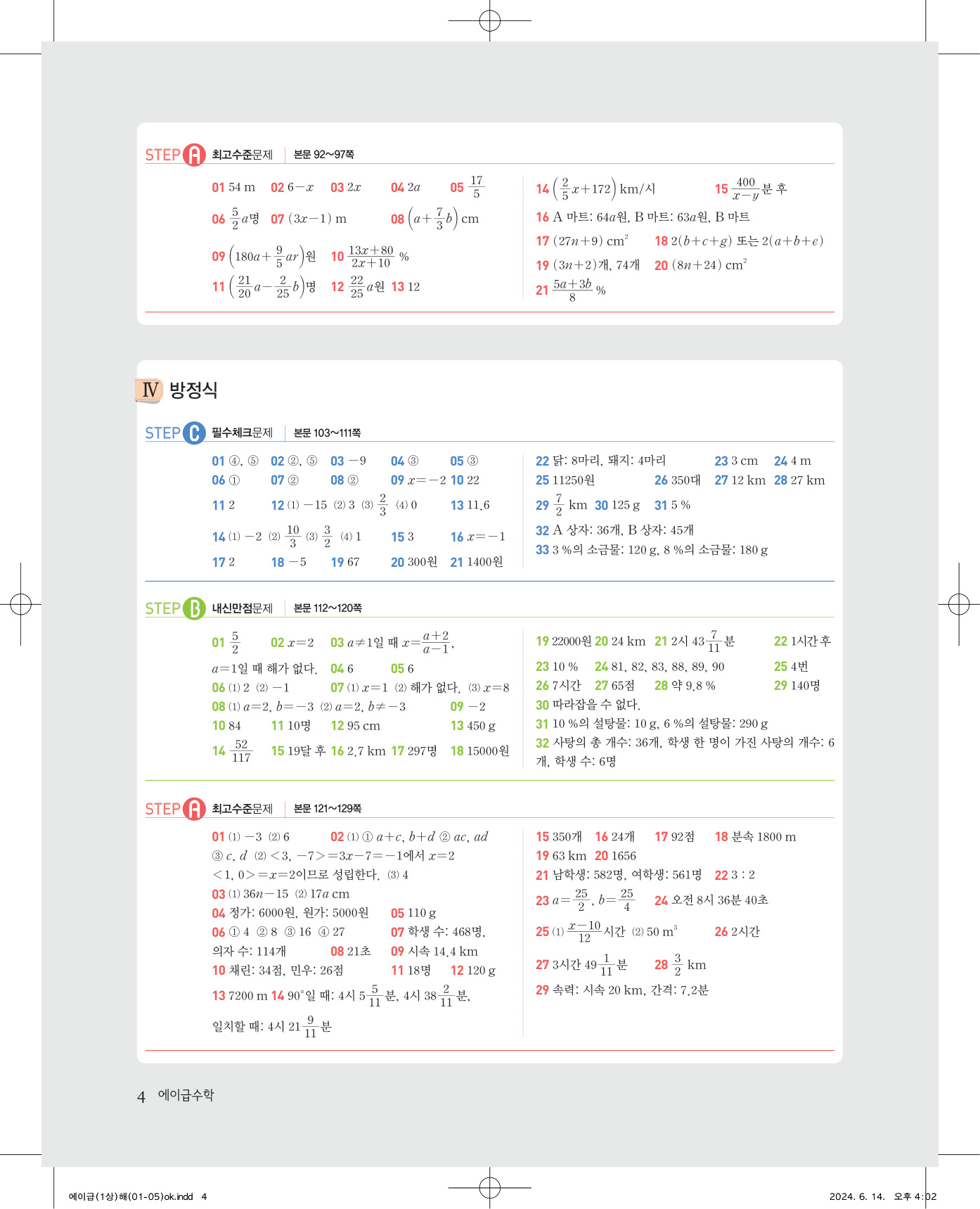 답지 해설 에이급 수학 중등 1-1 답지 해설 2025 by 답지다운 2025. 4. 11. 📑 목차 열기 ▼ 목차 Ⅰ 소인수분해Ⅱ 정수와 유리수Ⅲ 문자와 식Ⅳ 방정식Ⅴ 좌표평면과 그래프 답지 해설 사진답지 첨부하였습니다. 파일을 원하시면 맨 마지막에있습니다. 저작권은 해당 출판사에 있습니다. 반응형 통합_중등에이급1-1정답_240618.pdf 1.22MB 공유하기 게시글 관리 답지 다운 저작자표시 비영리 변경금지 (새창열림) 관련글 1등급 만들기 기하 334제 답지 해설 2025 에이급 수학 중등 1-2 답지 해설 2025 숨마쿰라우데 스타트업 대수 답지 해설 2026 숨마쿰라우데 중학수학 스타트업 2-1 답지 해설 2026