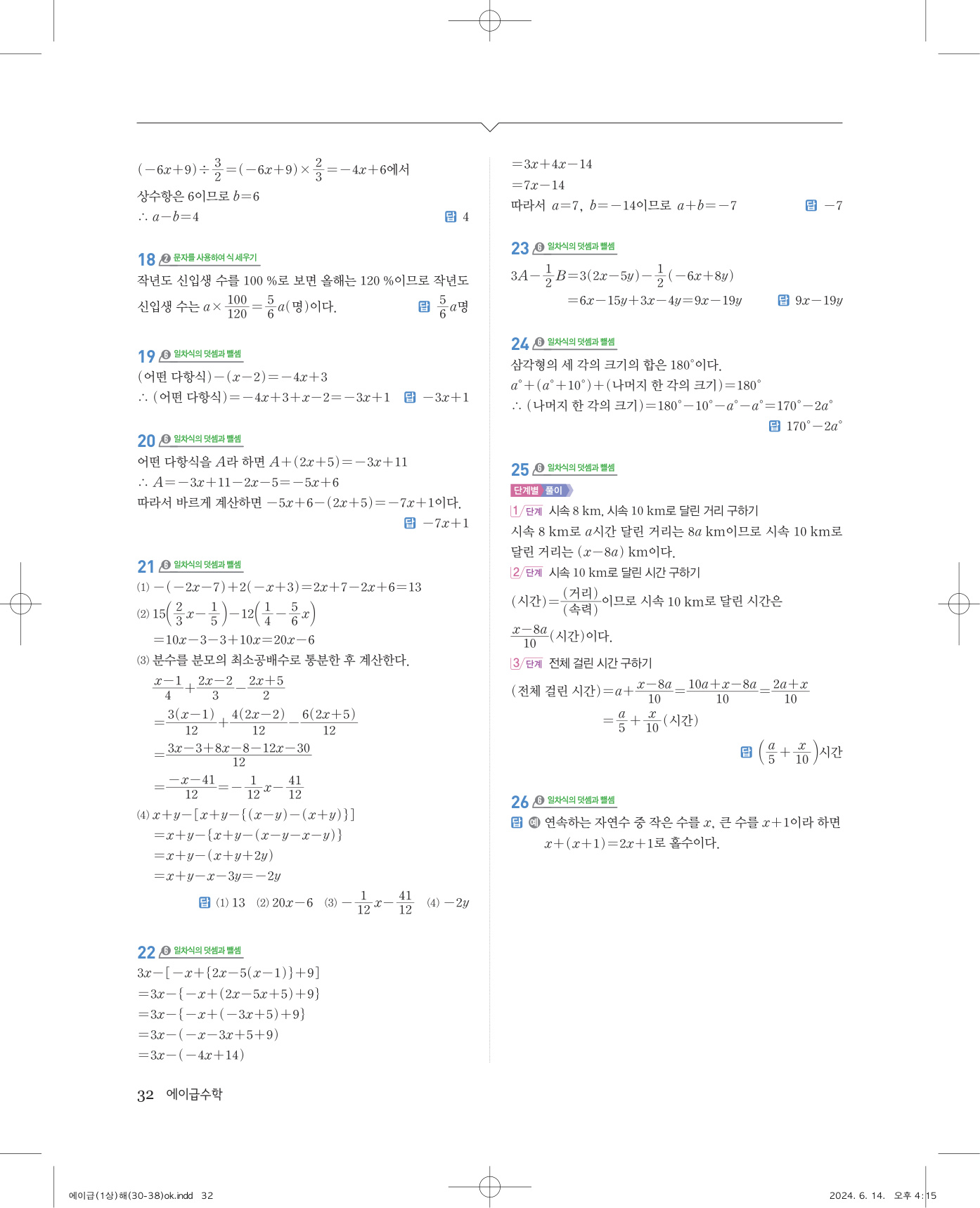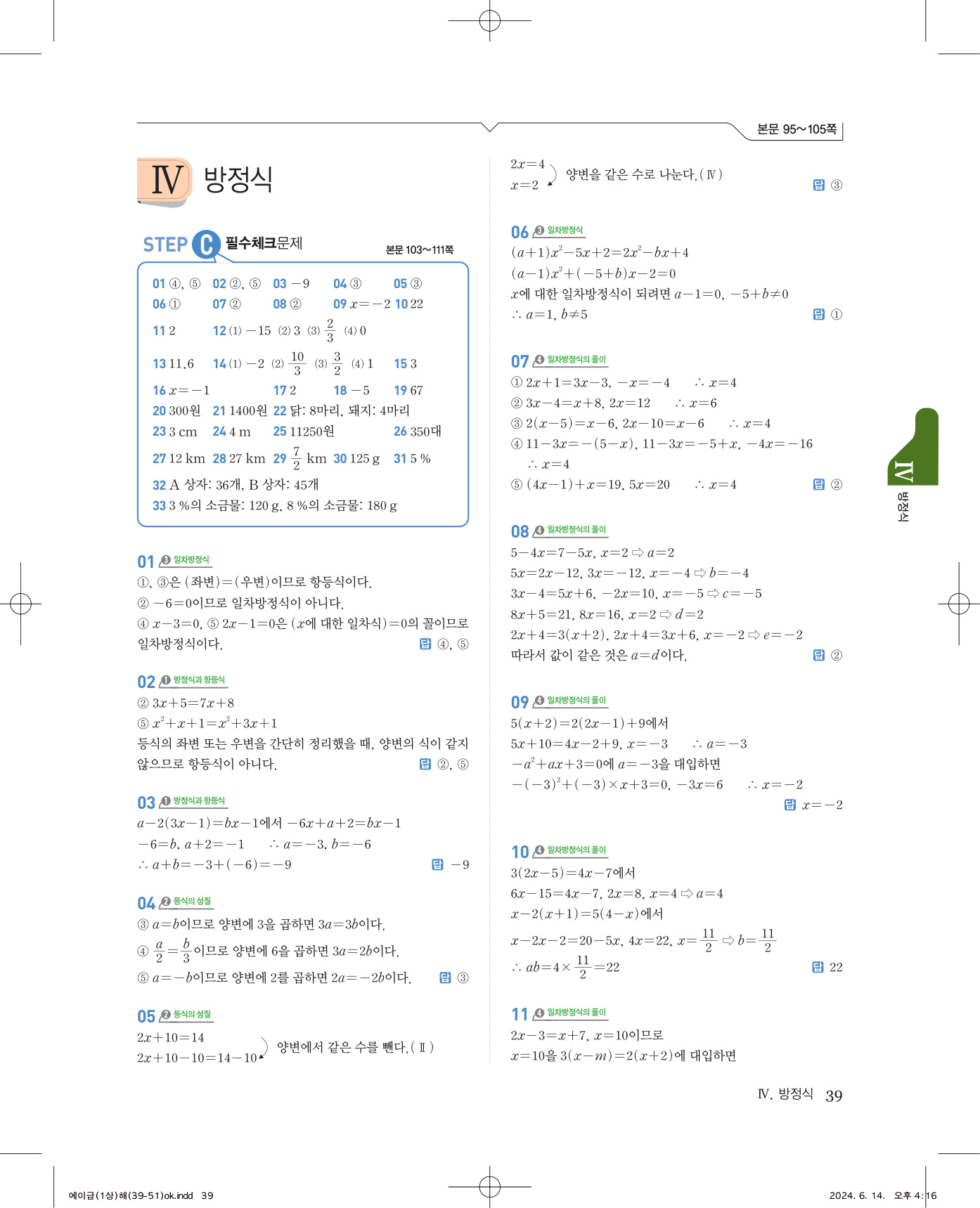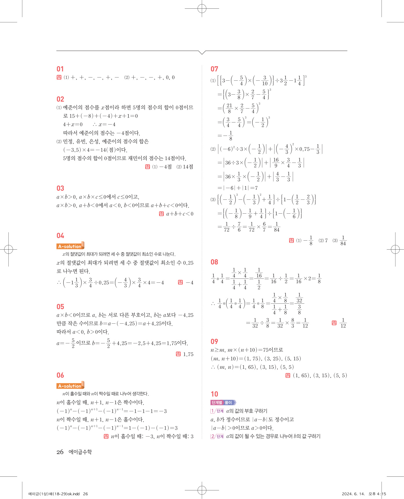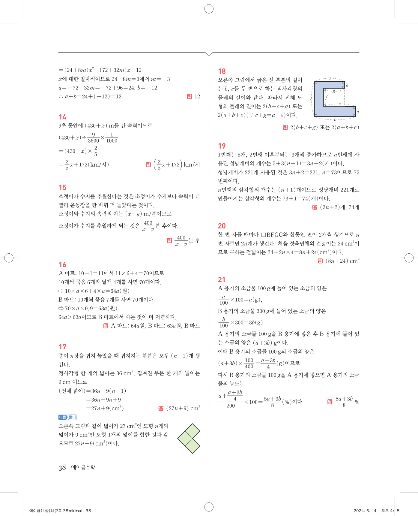 답지 해설 에이급 수학 중등 1-1 답지 해설 2025 by 답지다운 2025. 4. 11. 📑 목차 열기 ▼ 목차 Ⅰ 소인수분해Ⅱ 정수와 유리수Ⅲ 문자와 식Ⅳ 방정식Ⅴ 좌표평면과 그래프 답지 해설 사진답지 첨부하였습니다. 파일을 원하시면 맨 마지막에있습니다. 저작권은 해당 출판사에 있습니다. 반응형 통합_중등에이급1-1정답_240618.pdf 1.22MB 공유하기 게시글 관리 답지 다운 저작자표시 비영리 변경금지 (새창열림) 관련글 1등급 만들기 기하 334제 답지 해설 2025 에이급 수학 중등 1-2 답지 해설 2025 숨마쿰라우데 스타트업 대수 답지 해설 2026 숨마쿰라우데 중학수학 스타트업 2-1 답지 해설 2026