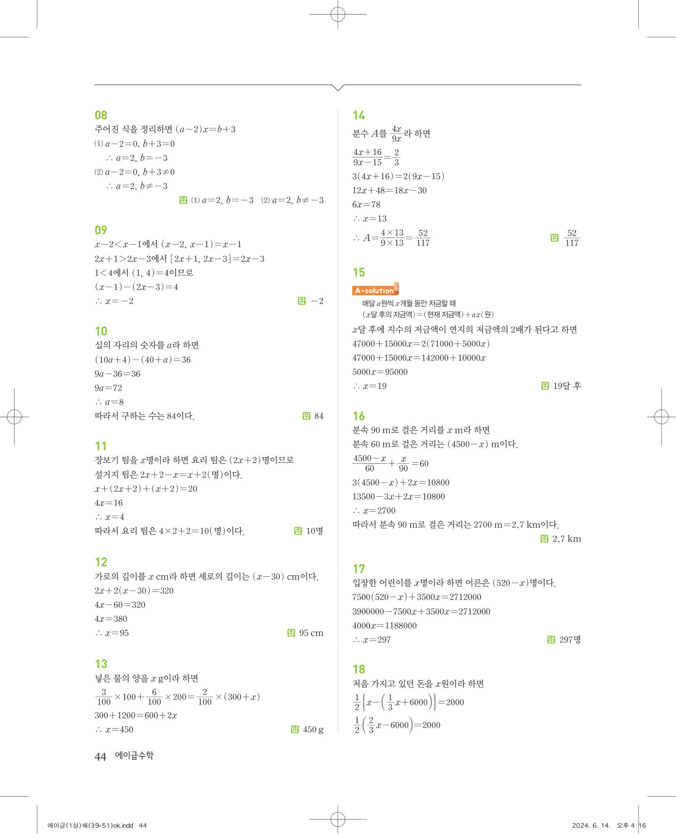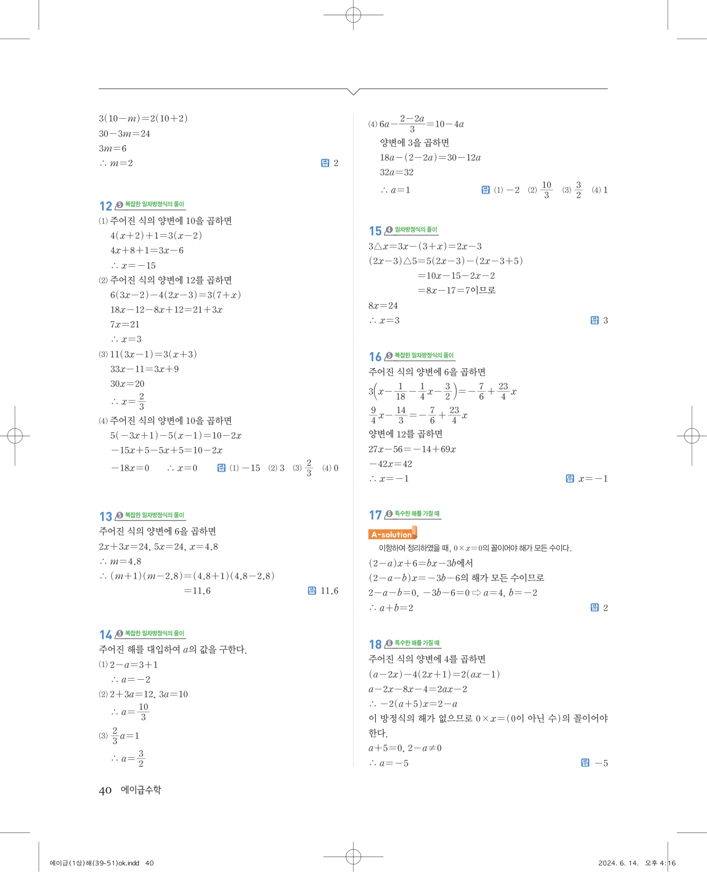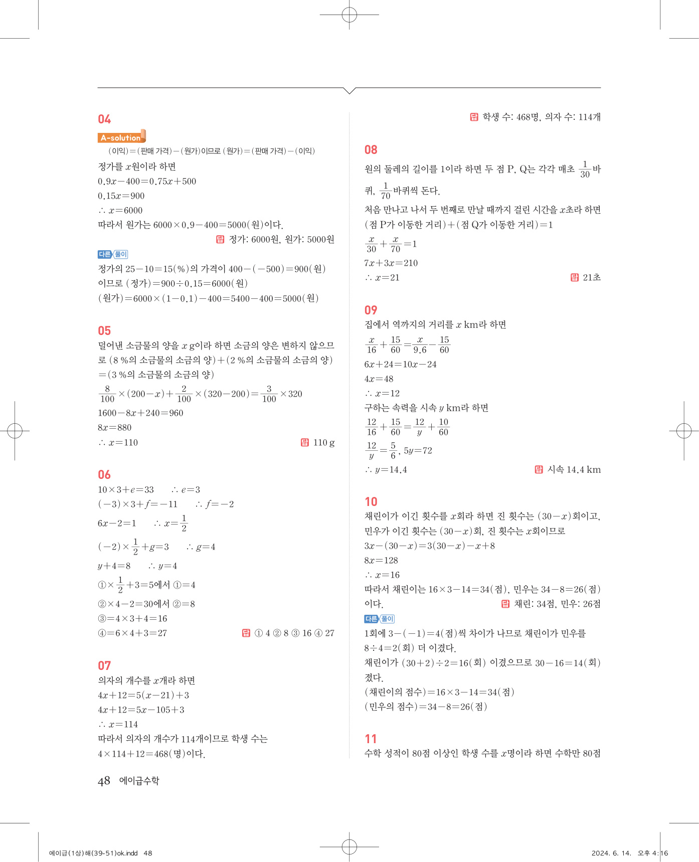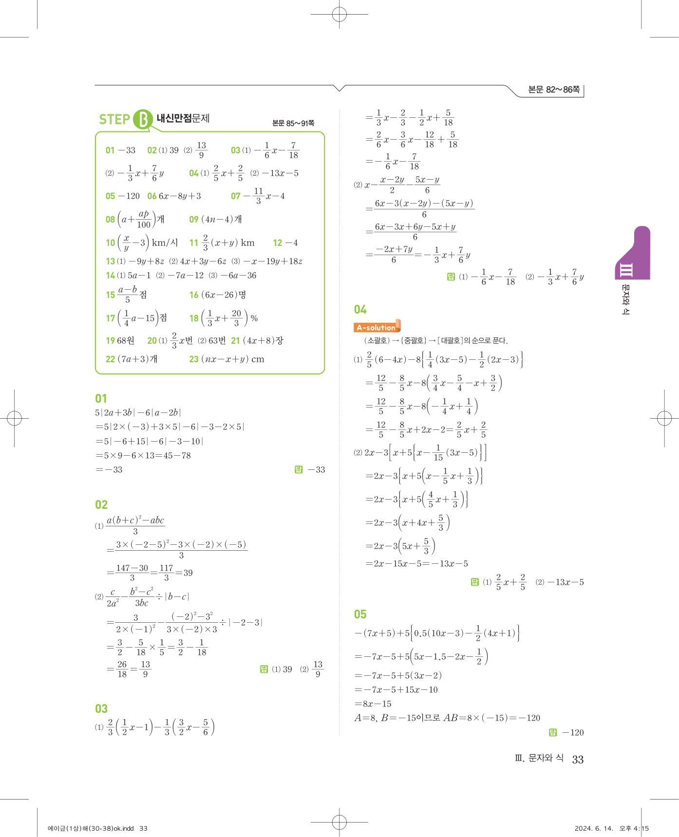 답지 해설 에이급 수학 중등 1-1 답지 해설 2025 by 답지다운 2025. 4. 11. 📑 목차 열기 ▼ 목차 Ⅰ 소인수분해Ⅱ 정수와 유리수Ⅲ 문자와 식Ⅳ 방정식Ⅴ 좌표평면과 그래프 답지 해설 사진답지 첨부하였습니다. 파일을 원하시면 맨 마지막에있습니다. 저작권은 해당 출판사에 있습니다. 반응형 통합_중등에이급1-1정답_240618.pdf 1.22MB 공유하기 게시글 관리 답지 다운 저작자표시 비영리 변경금지 (새창열림) 관련글 1등급 만들기 기하 334제 답지 해설 2025 에이급 수학 중등 1-2 답지 해설 2025 숨마쿰라우데 스타트업 대수 답지 해설 2026 숨마쿰라우데 중학수학 스타트업 2-1 답지 해설 2026