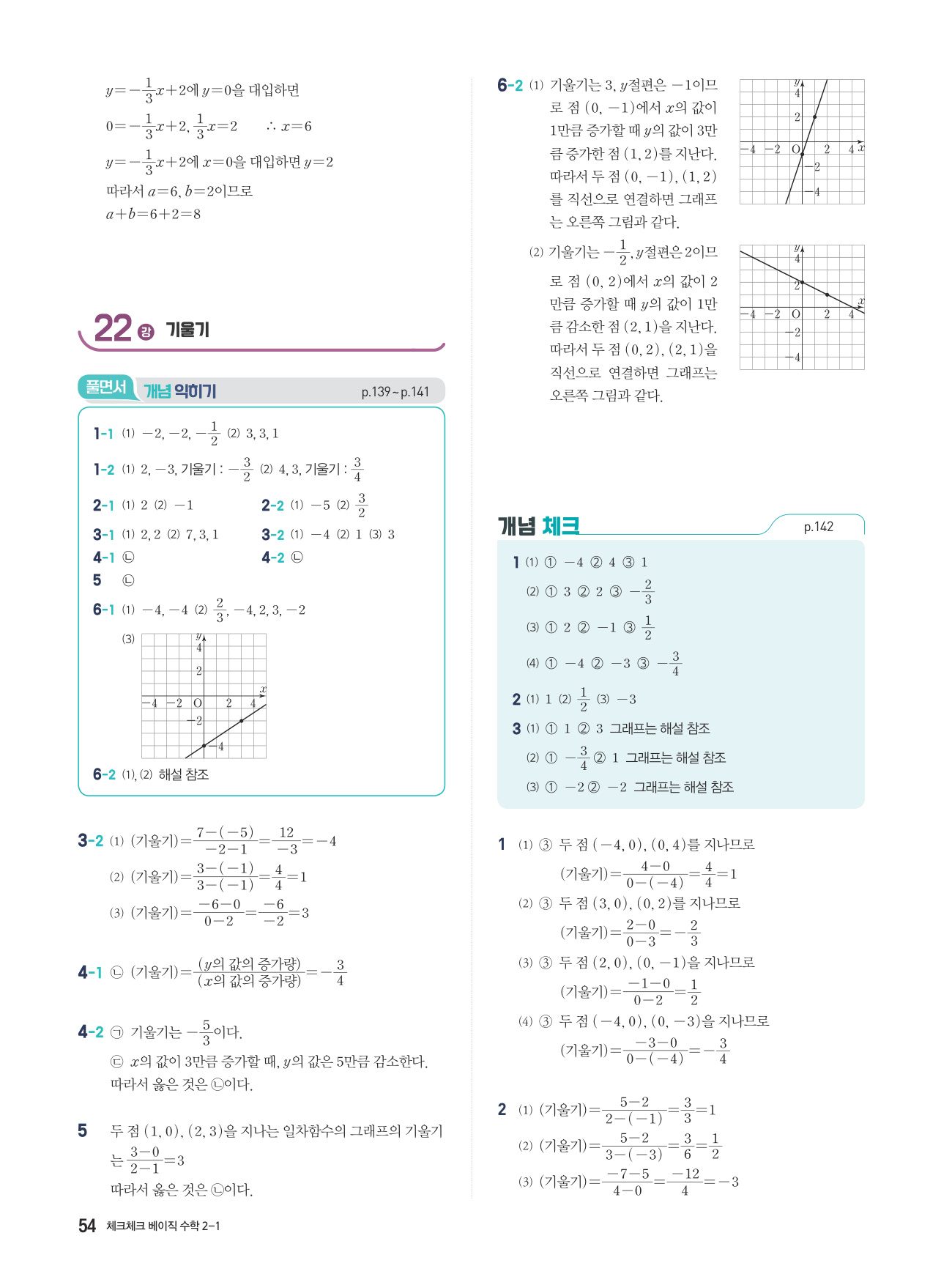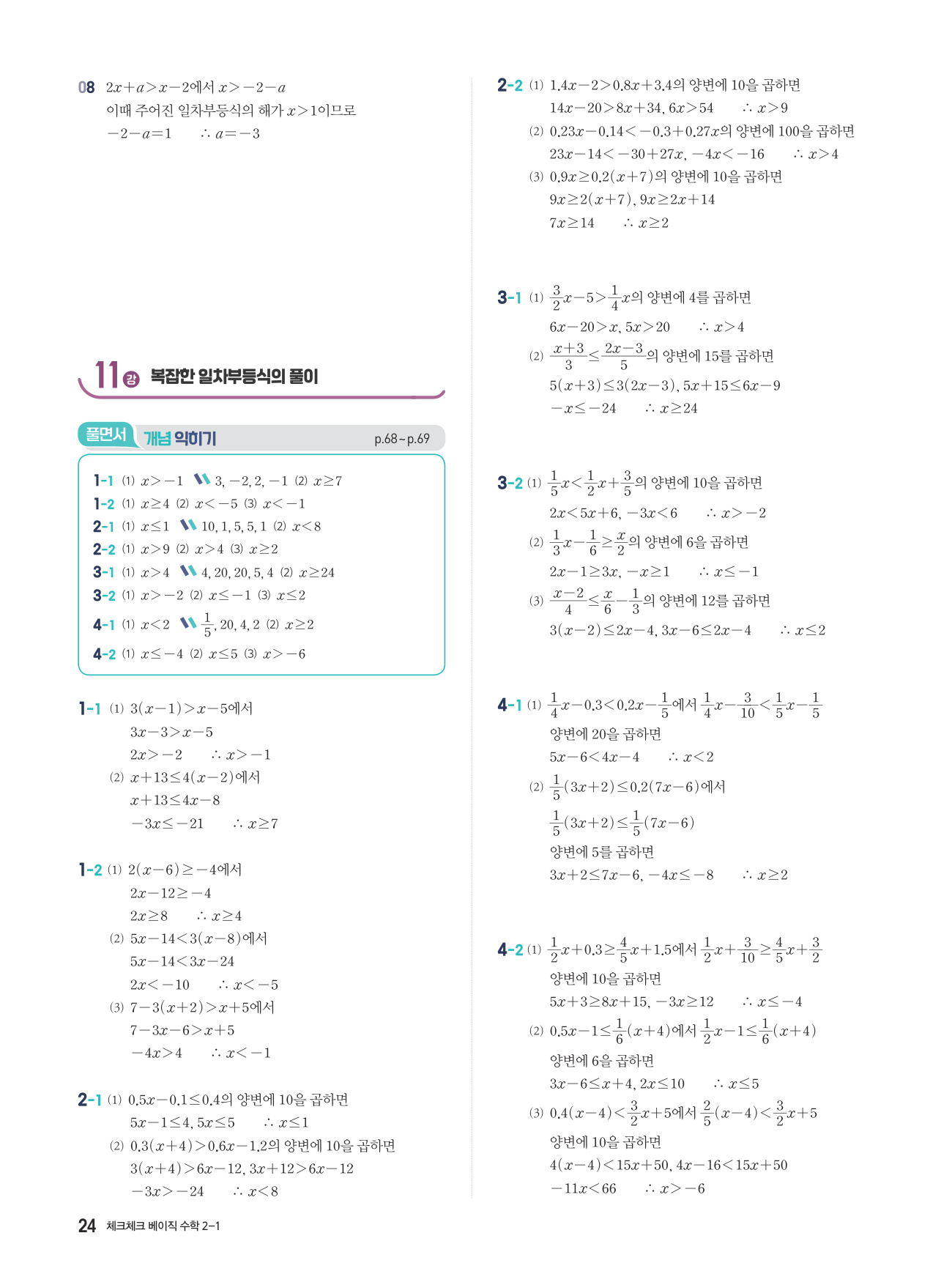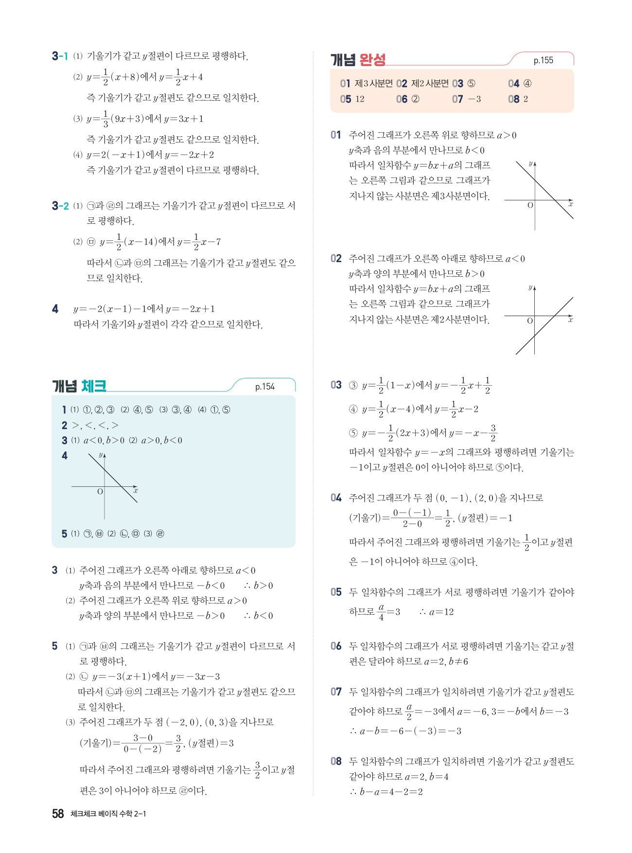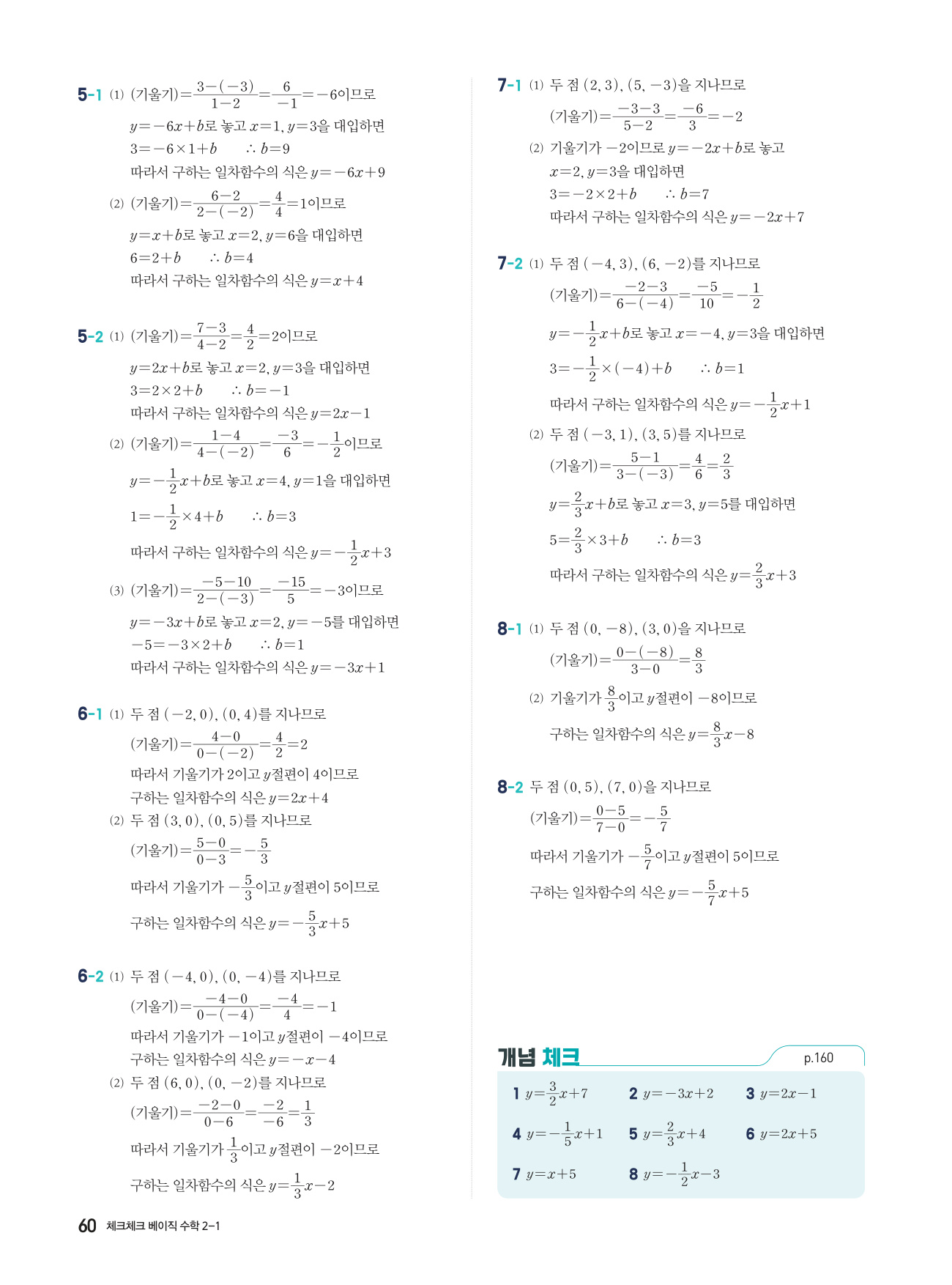체크체크 베이직 수학 중 2-1 답지 해설 PDF 사진답지