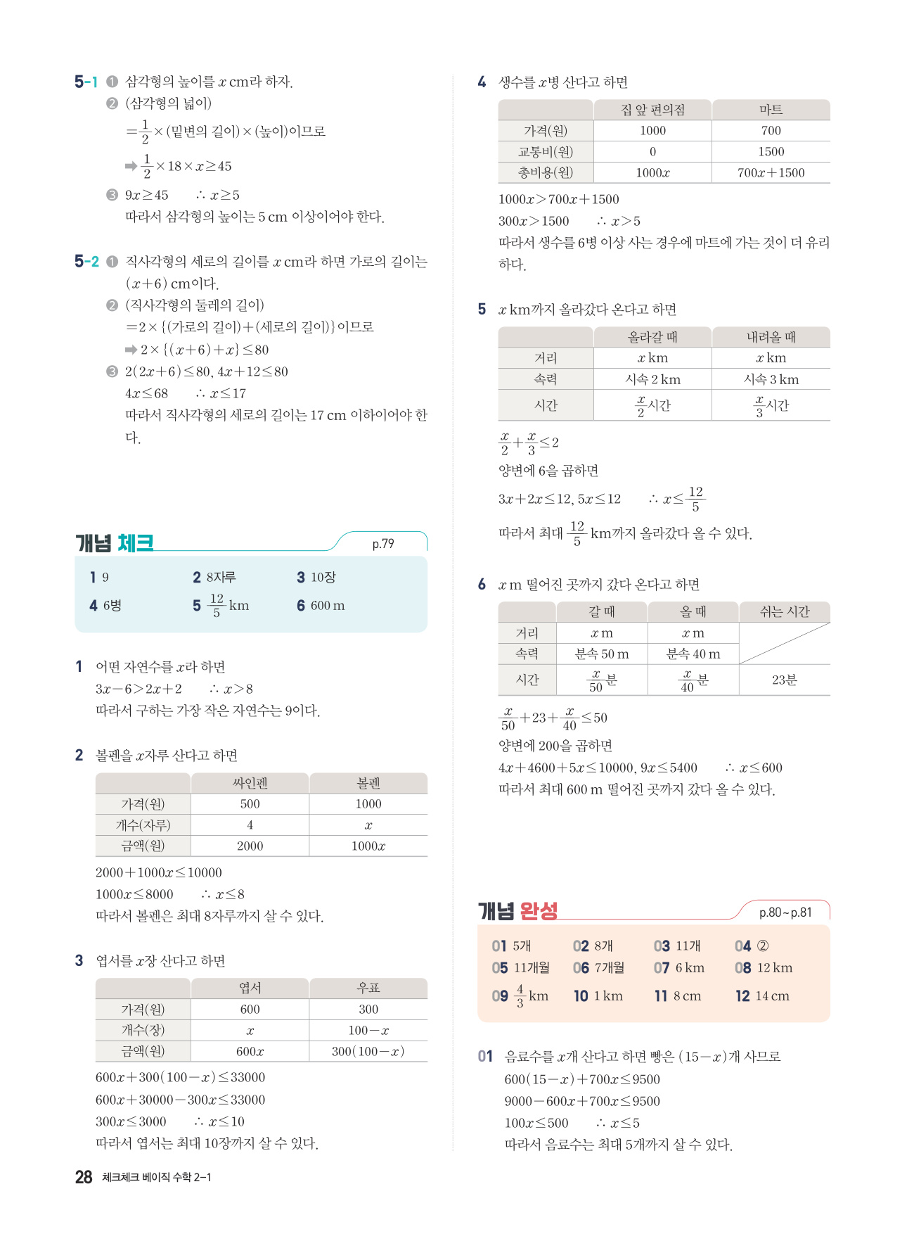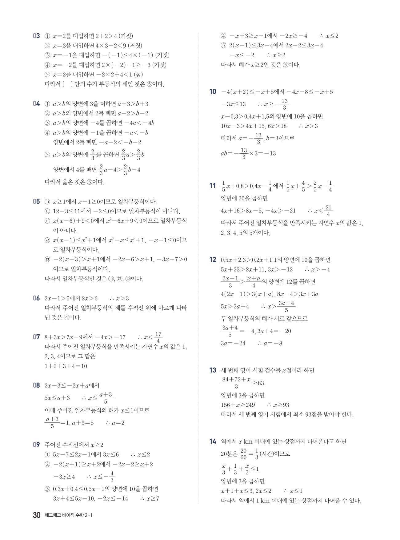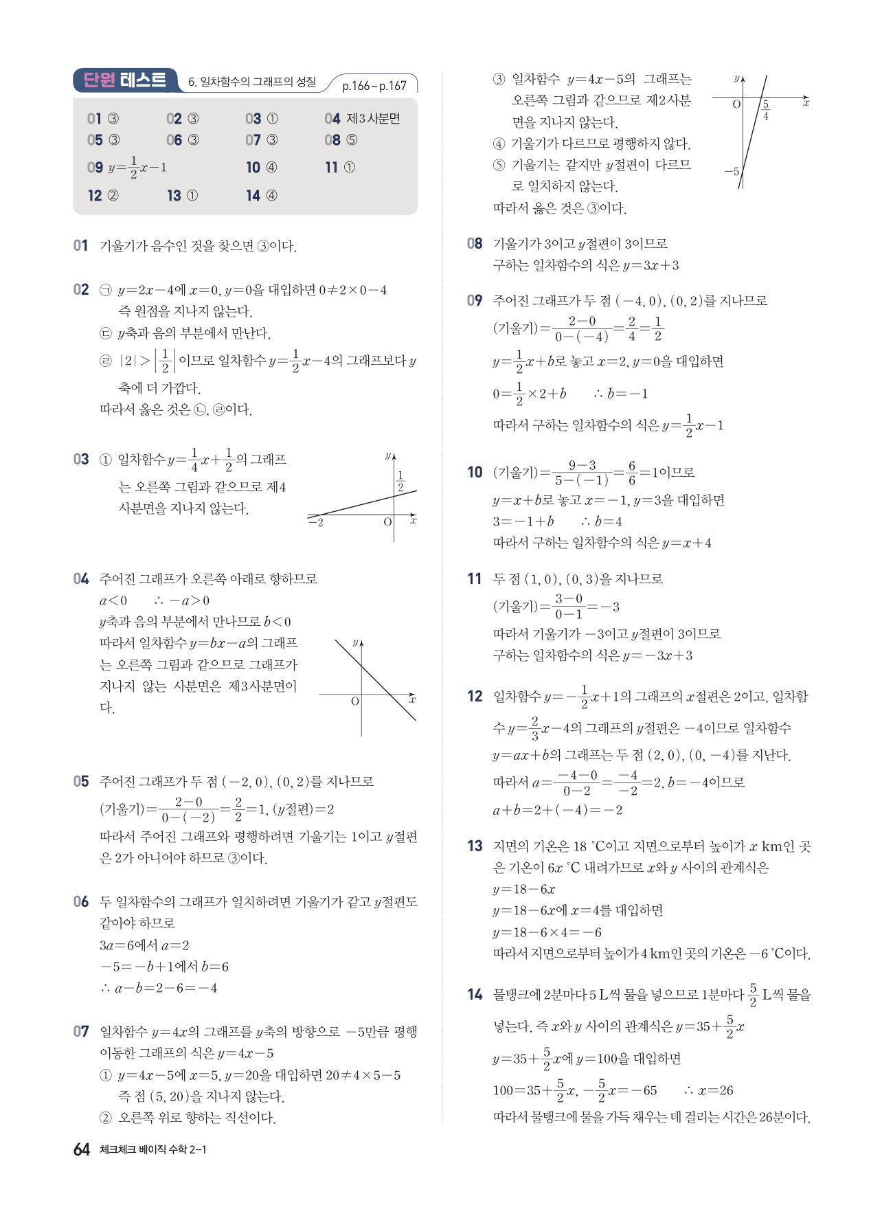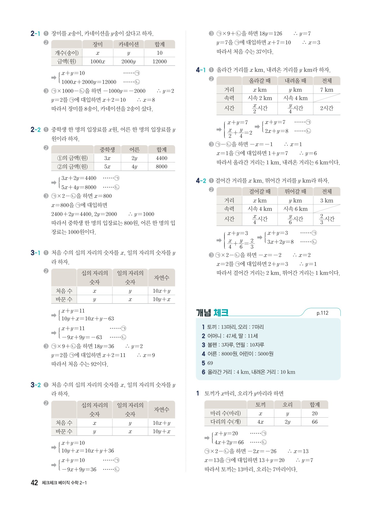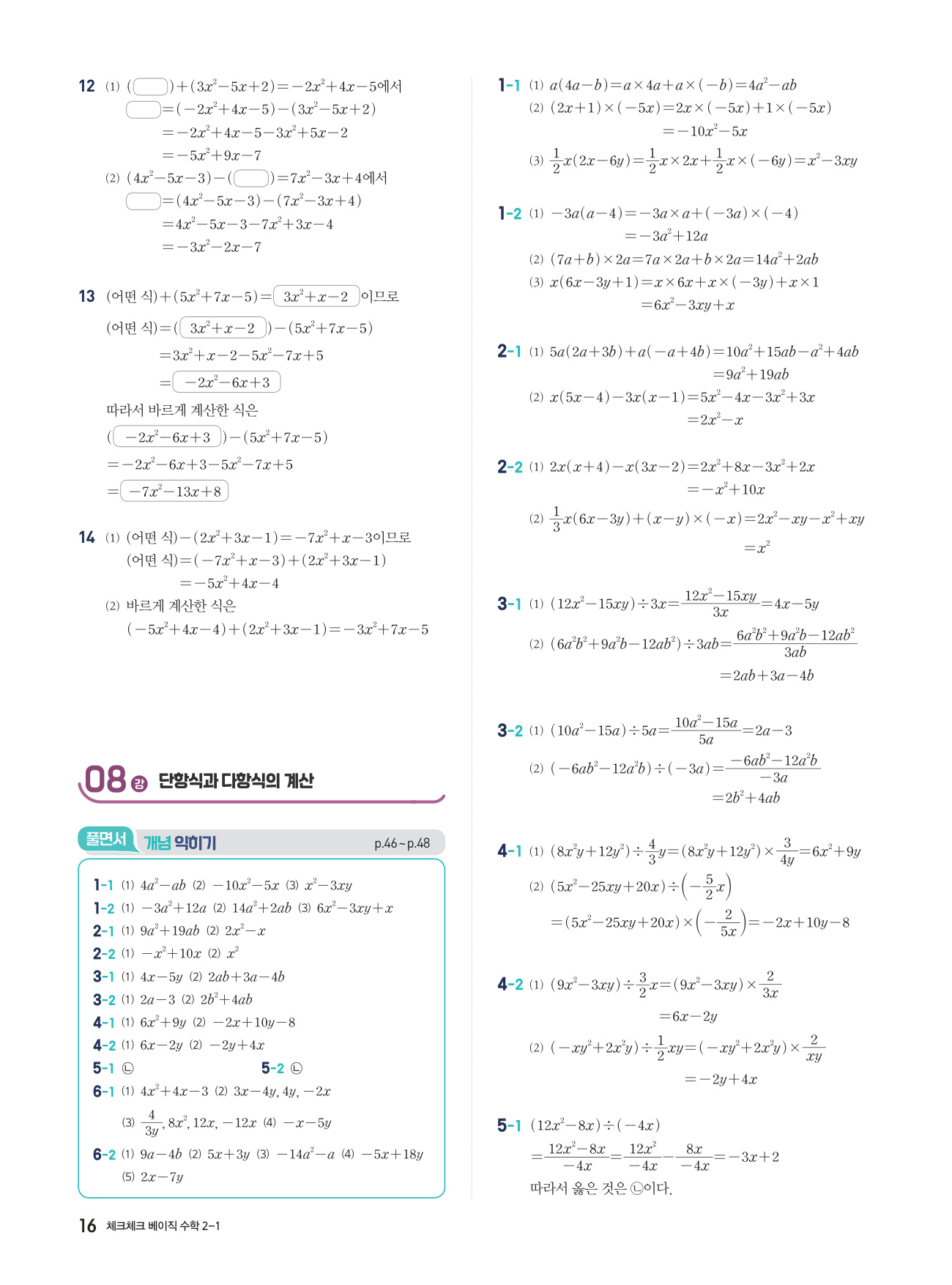 체크체크 베이직 수학 중 2-1 답지 해설 PDF 사진답지