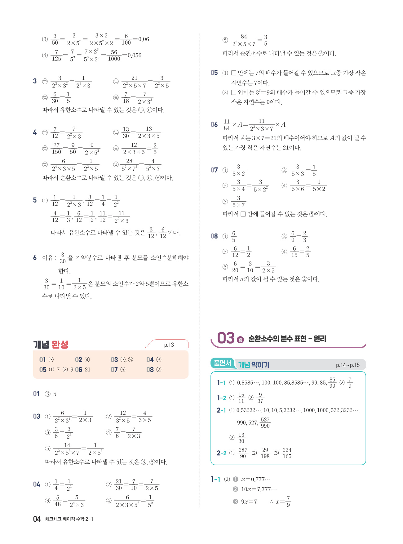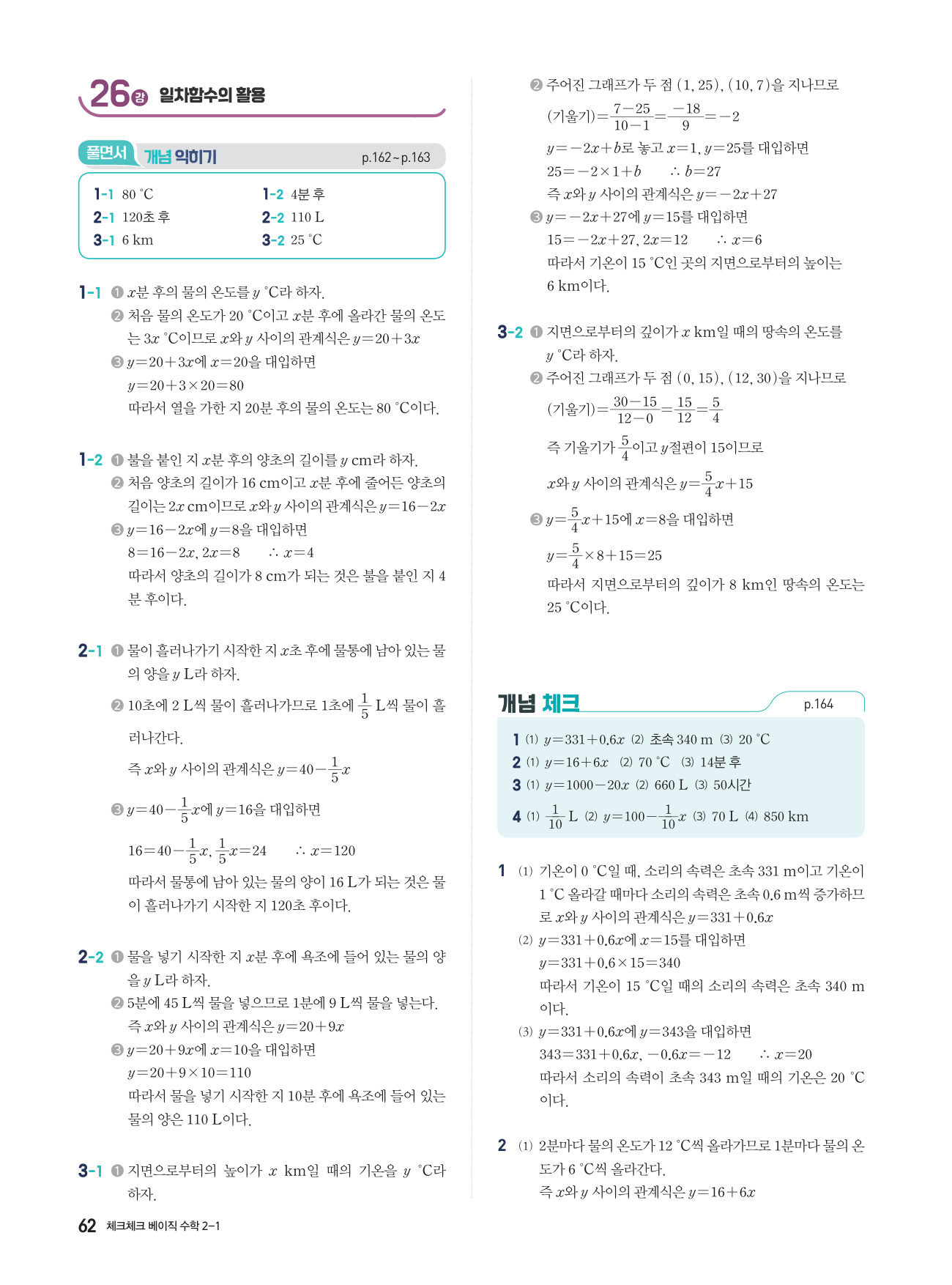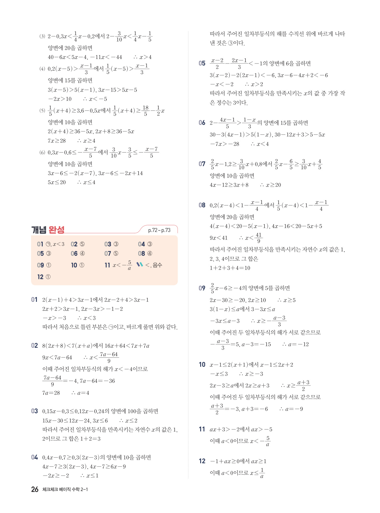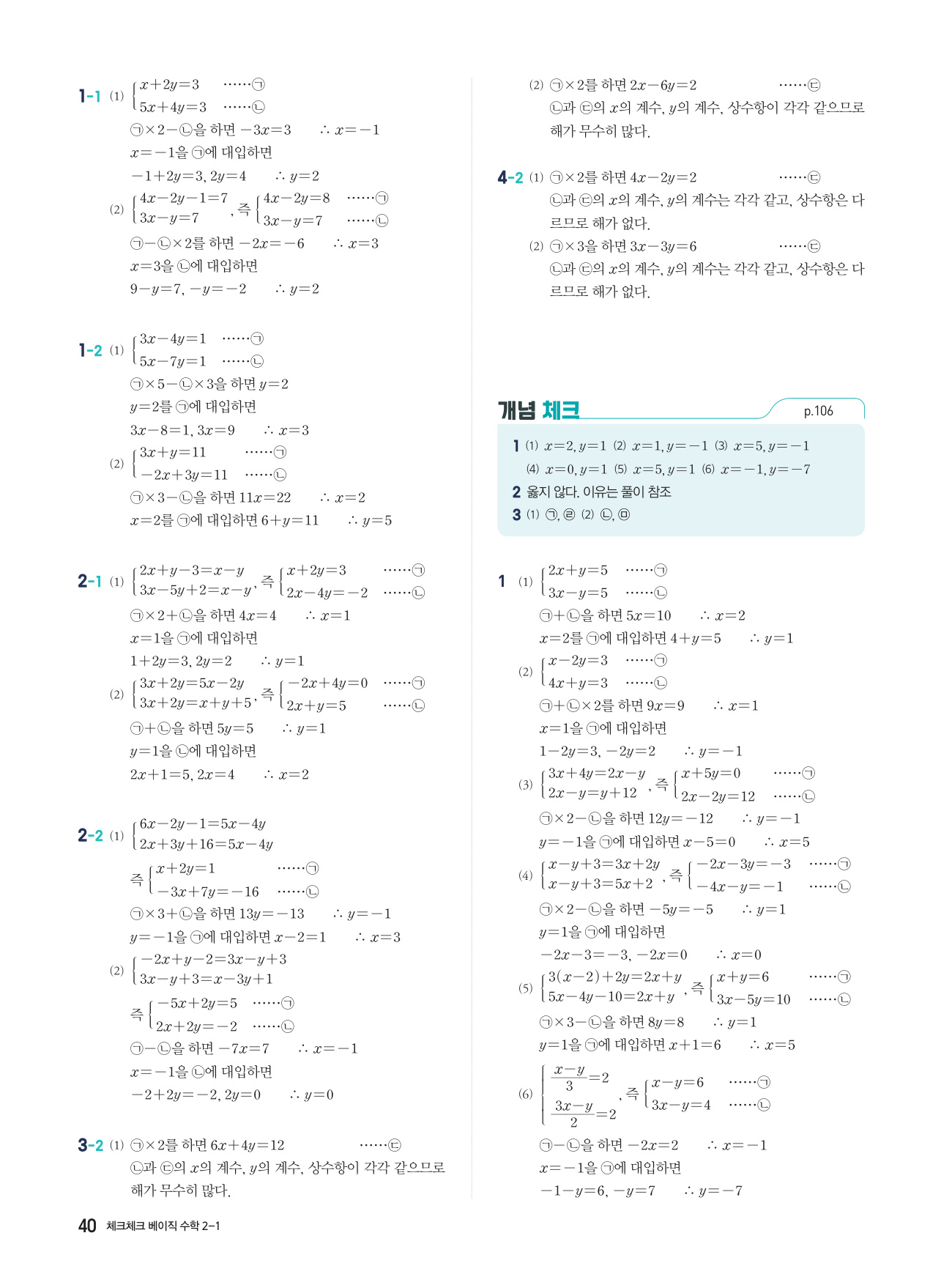 체크체크 베이직 수학 중 2-1 답지 해설 PDF 사진답지