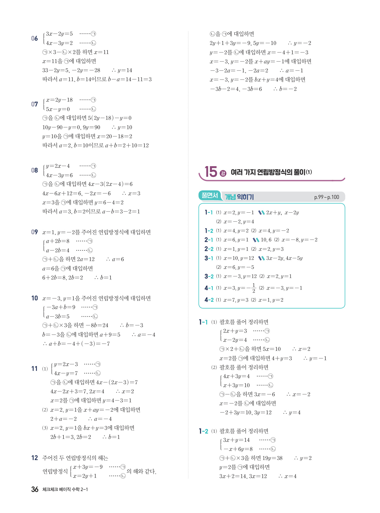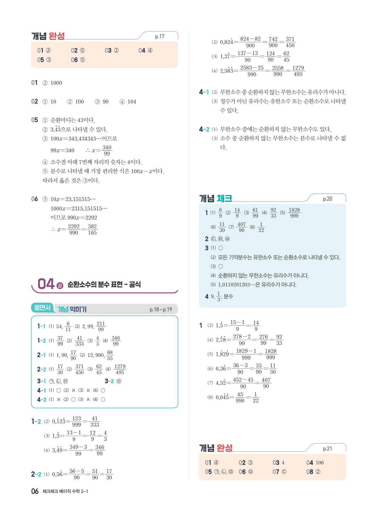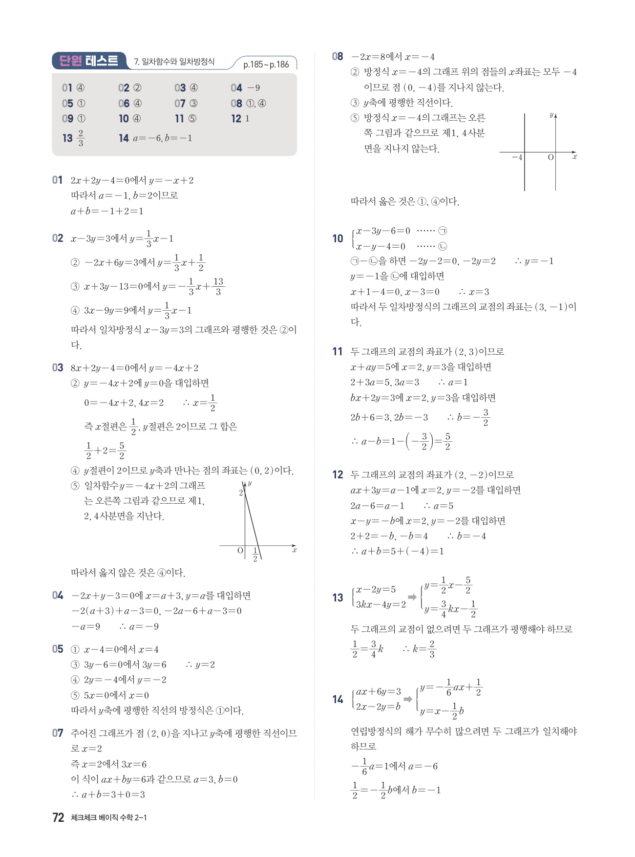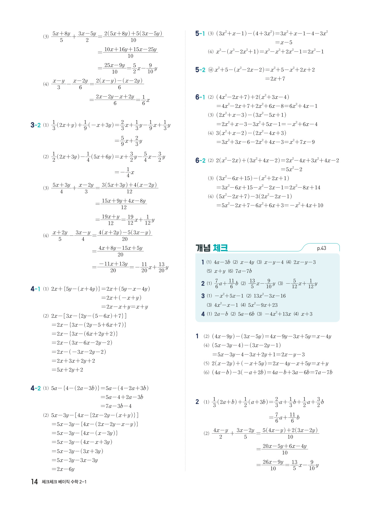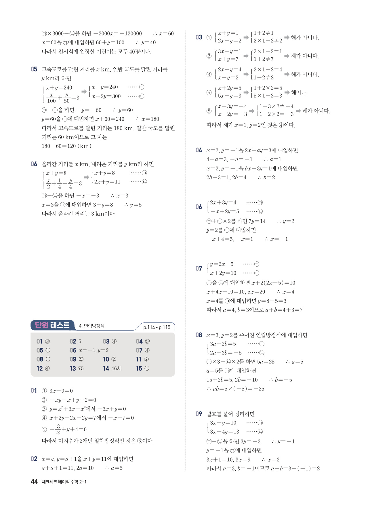 체크체크 베이직 수학 중 2-1 답지 해설 PDF 사진답지