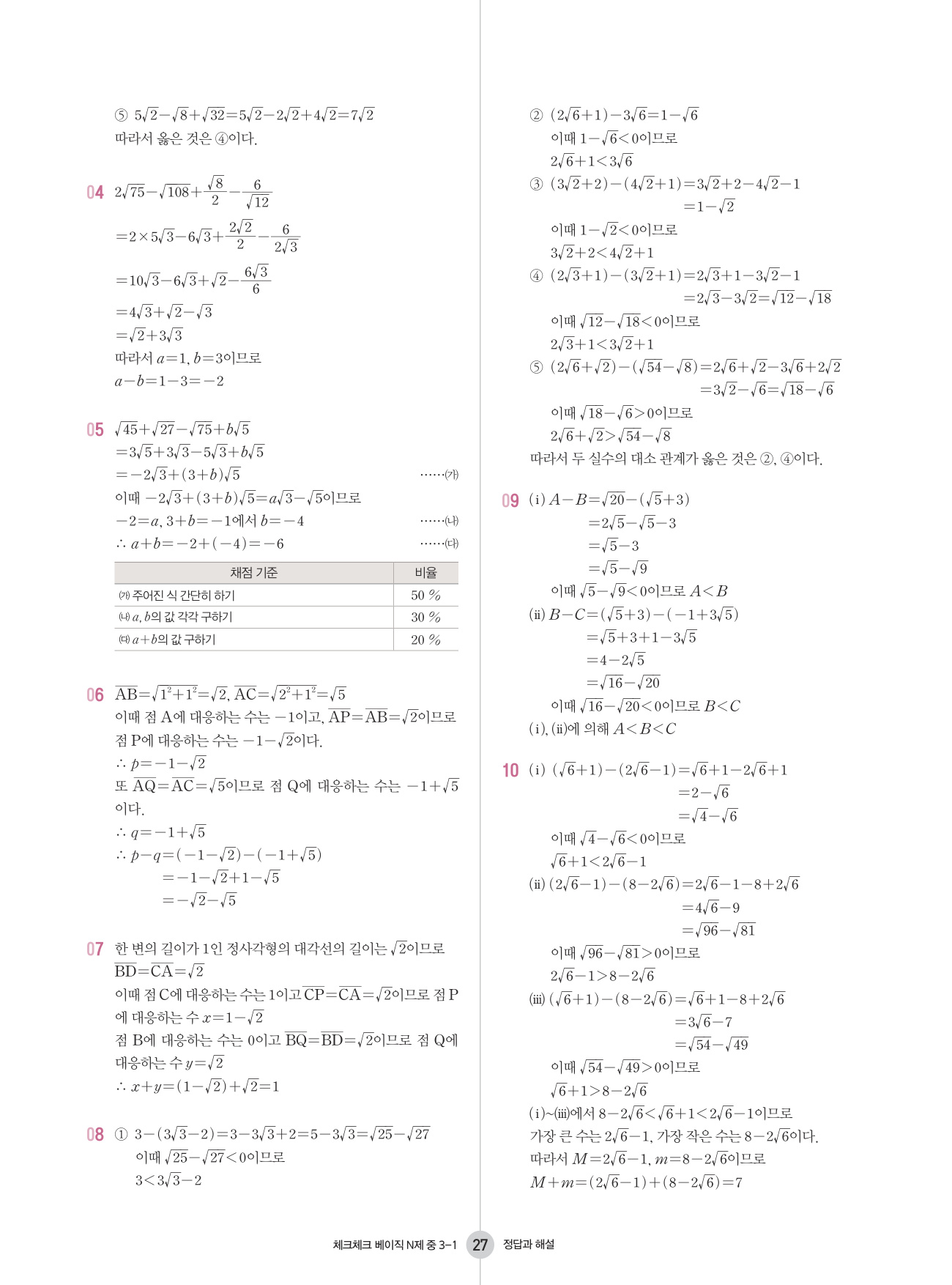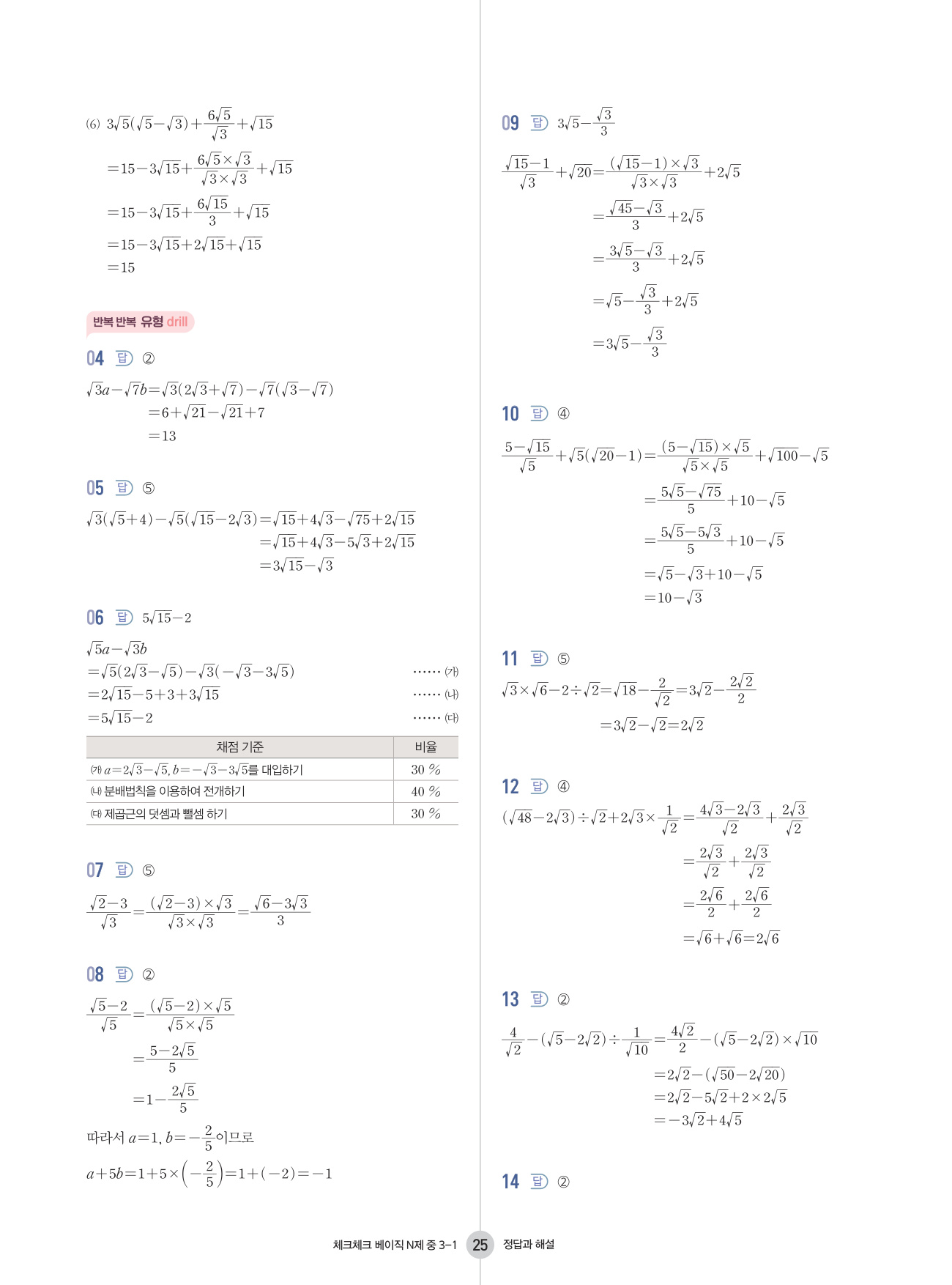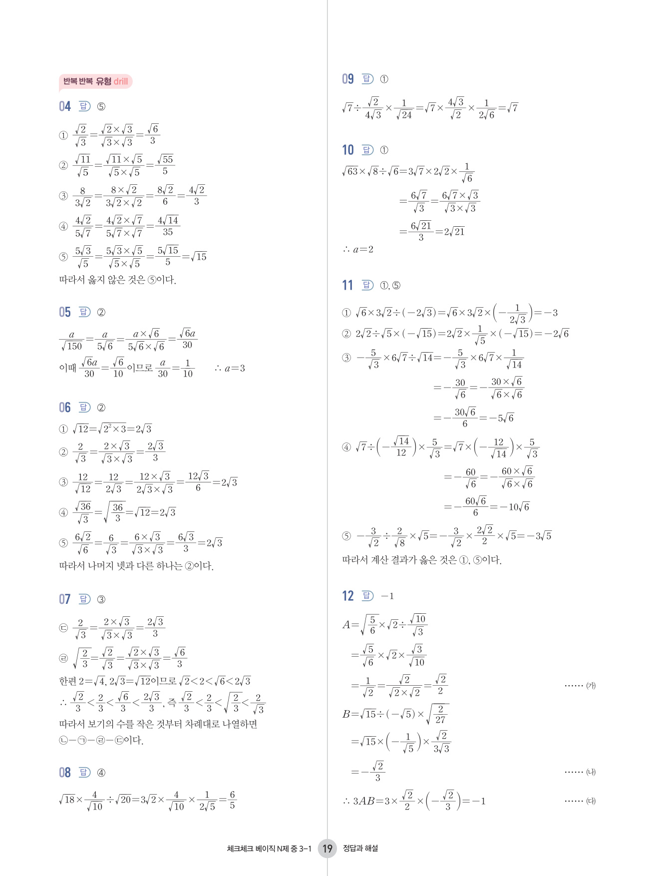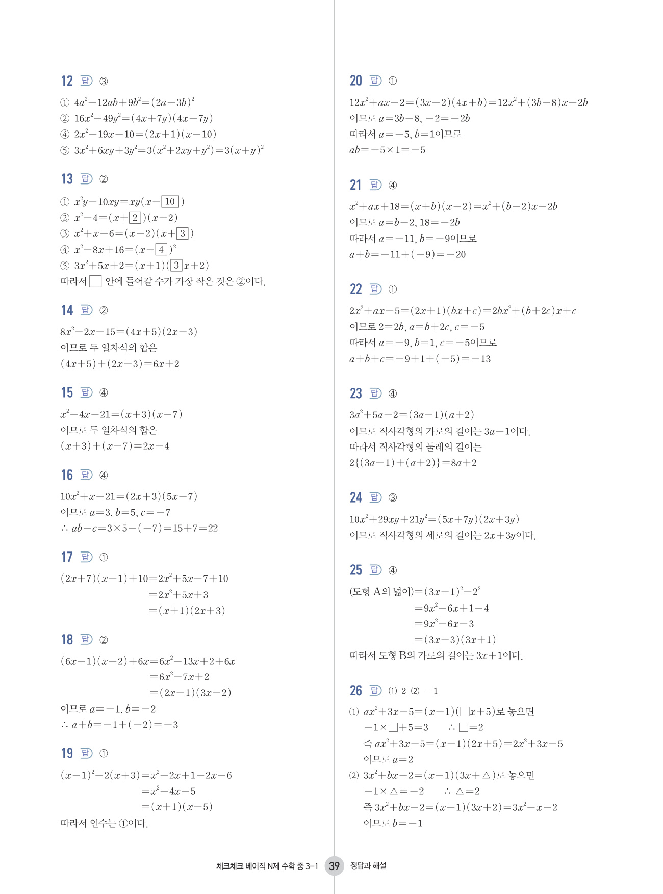 좀 더 많은 쉬운 문제를 풀어서 기초를 더욱 탄탄하게 하고 싶다면 체크체크 베이직 수학과 함께 더블클릭 수학을 푸는 것을 추천합니다. 체크체크 베이직 수학으로 개념이 잡혔다고 생각된다면 기출 문제 기본서 유형체크 N제에 도전하기를 추천합니다. 만약 개념을 더 다지길 원한다면 체크체크 수학을 선택하여 개념을 다시 한 번 다지며 체크체크 베이직 수학에 없는 다양한 유형의 문제들을 맛보는 것을 추천합니다.