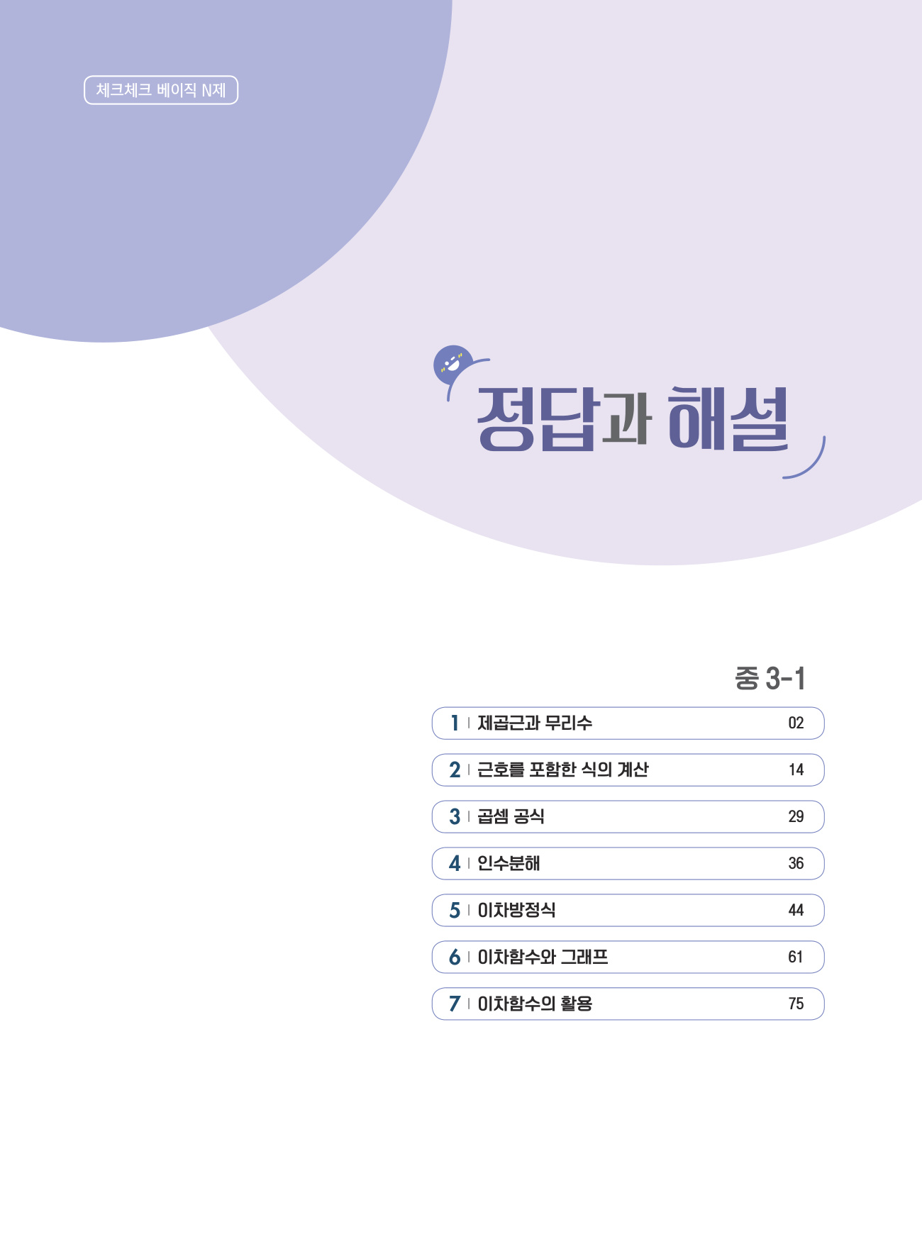 시중의 중학 수학 개념서를 쓰면서 여러 이유로 불편했던 독자들을 위하여 개념 이해 문제부터 적용 문제까지 쉬운 문제로만 구성한 쉬운 개념서를 출간하였습니다. 체크체크 수학이나 타 회사의 개념서를 한 권 다 풀기 어려웠었다면 체크체크 베이직 수학을 추천합니다. 자신의 이해도에 따라 하루에 한 강, 아니면 2강~3강까지 공부가 가능하도록 개념을 아주 잘게 쪼개어 다양하게 익힐 수 있도록 하였습니다.
