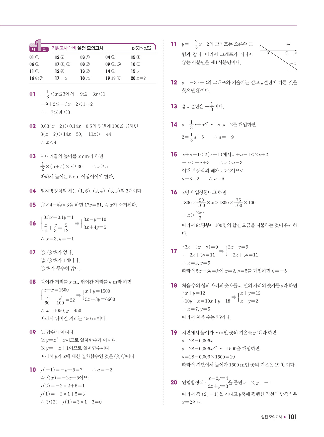 실제 시험과 같은 점수 배점으로 실력을 체크할 수 있도록 하였다. 서술형 문제도 수록되어 서술형 문제에 완벽 대비할 수 있다.