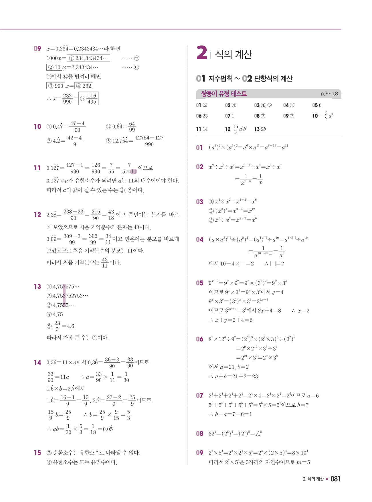 STEP1 필수 유형 익히기의 유형과 쌍둥이 문제를 수록하였다.