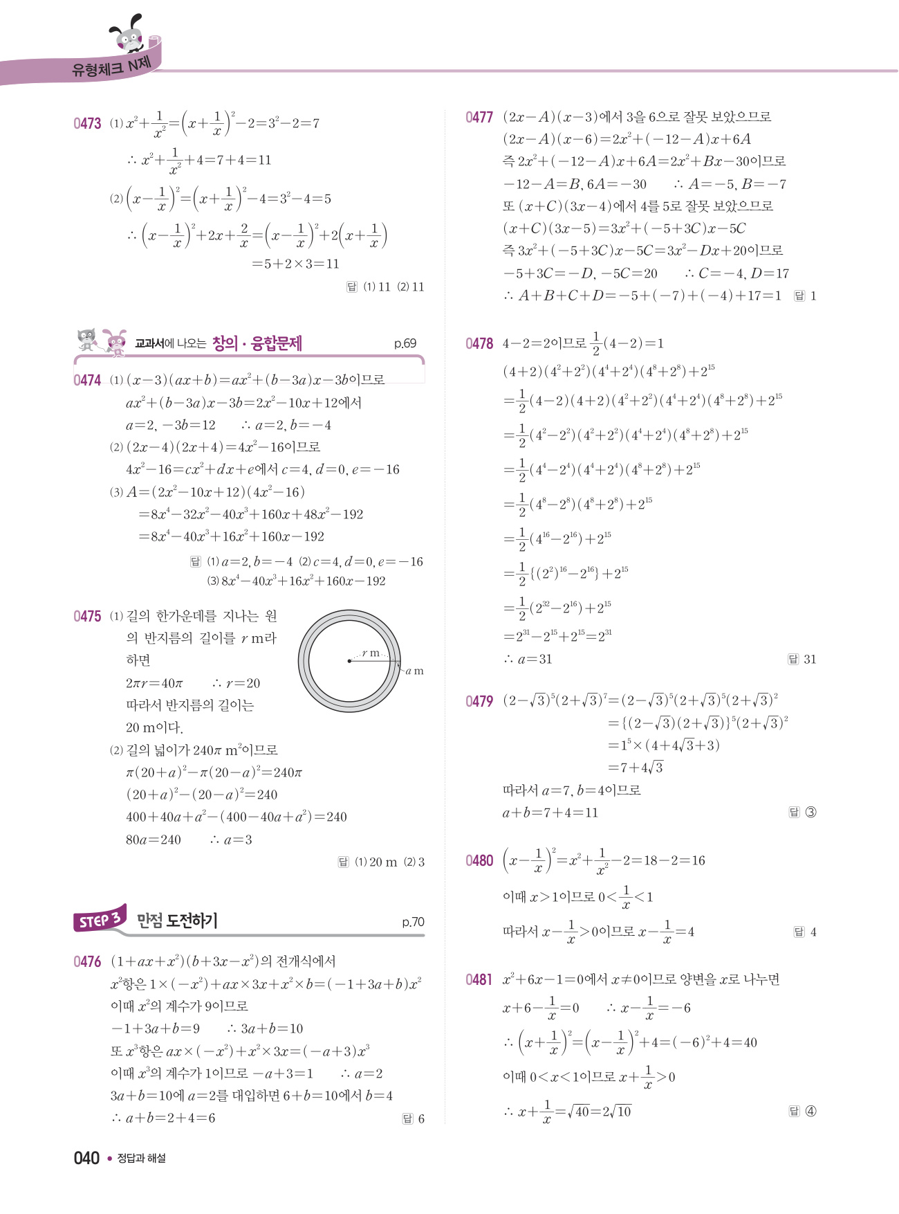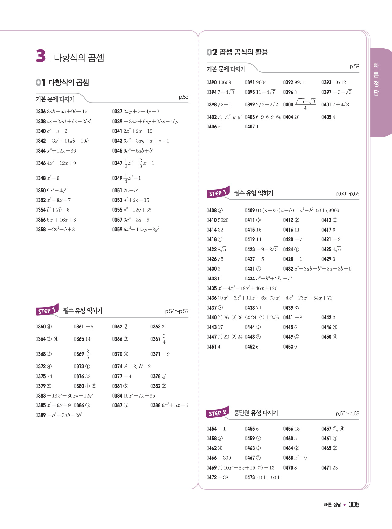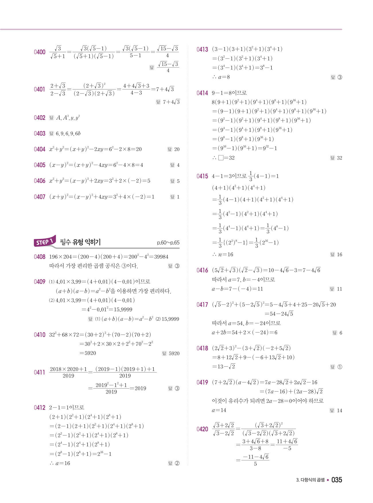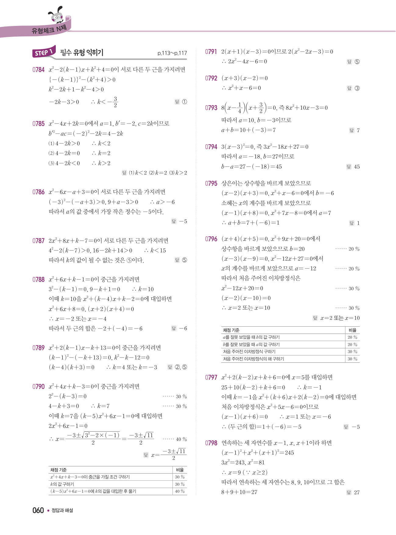 STEP1 필수 유형 익히기의 유형과 쌍둥이 문제를 수록하였다.