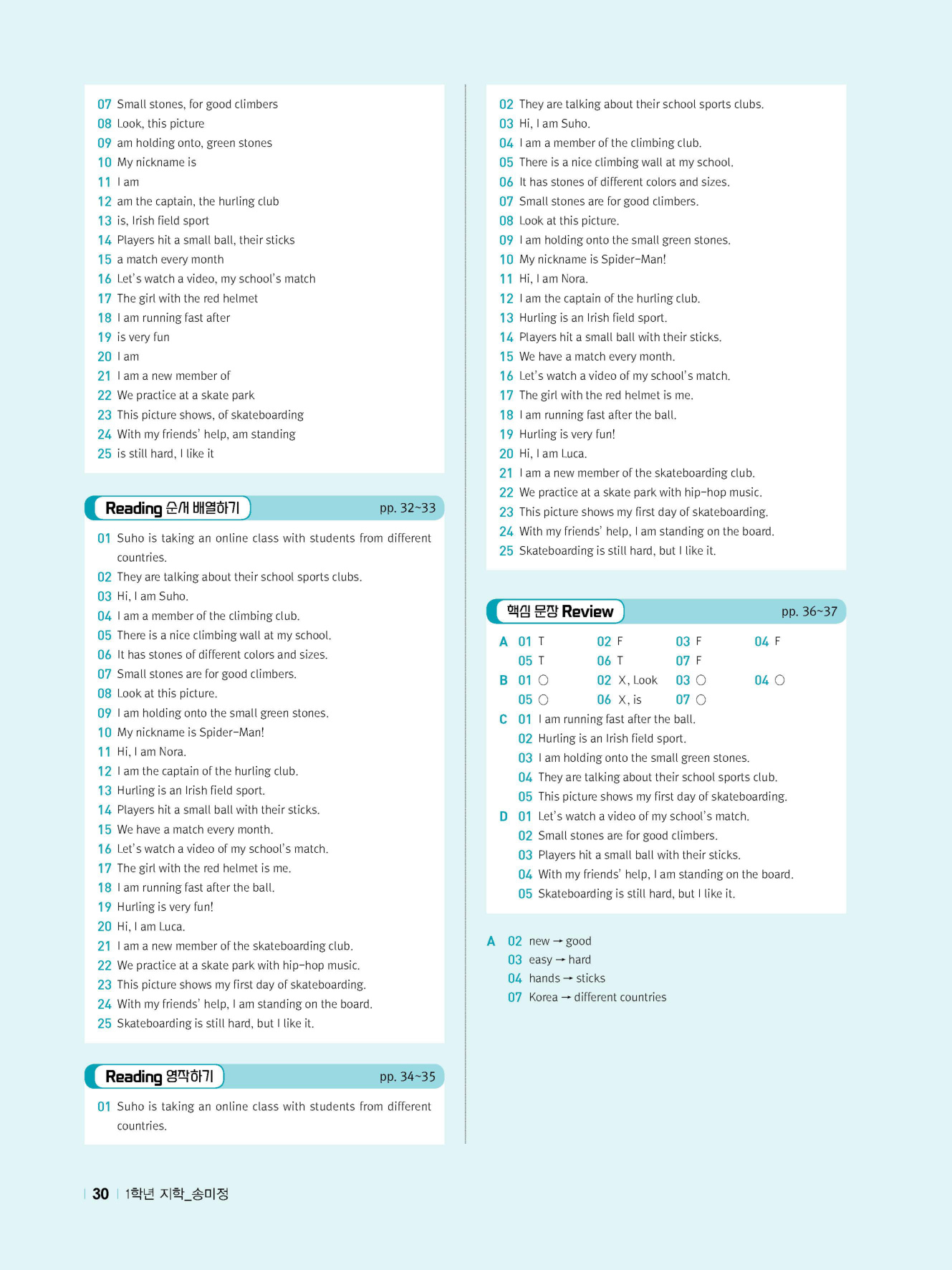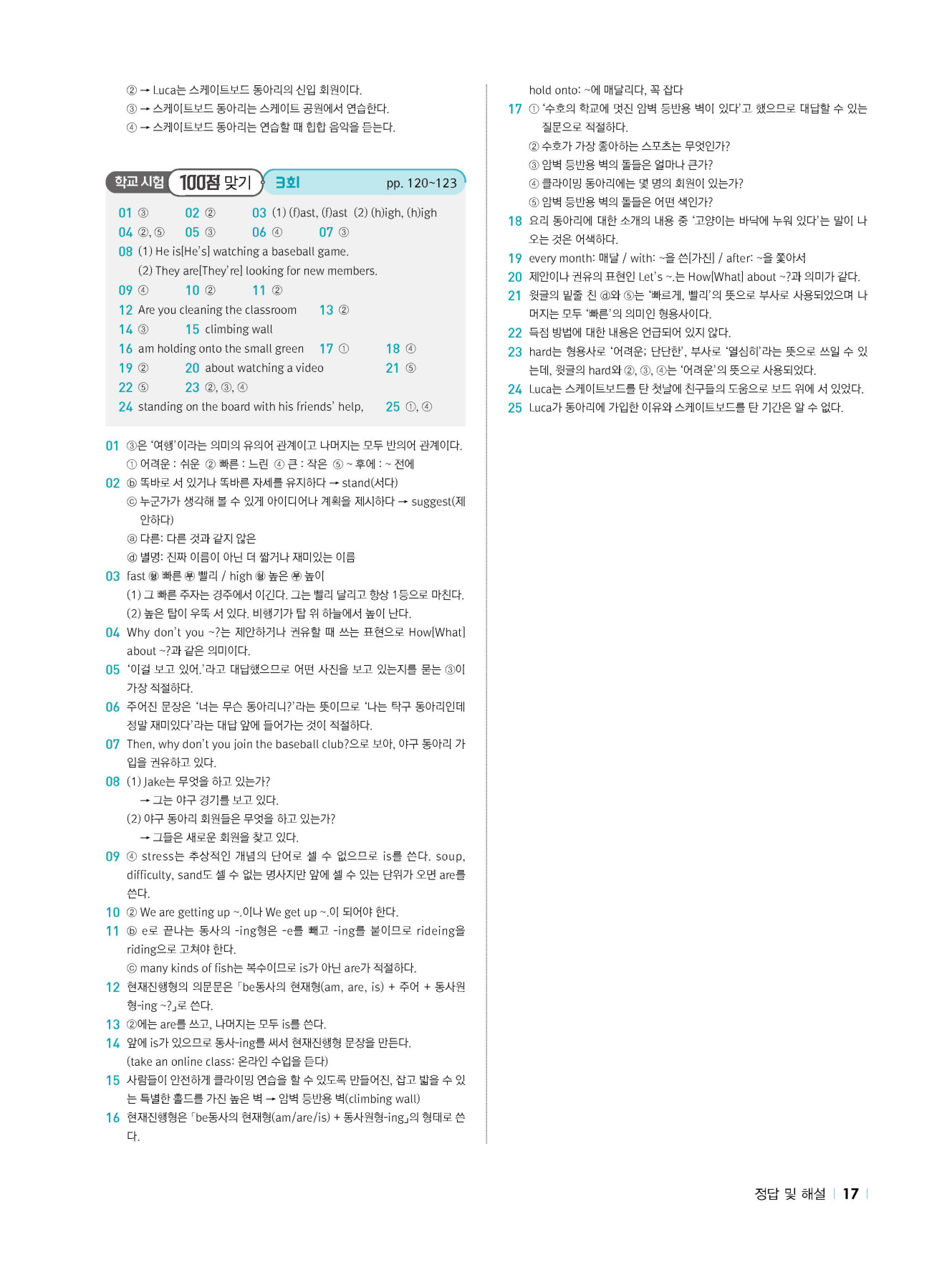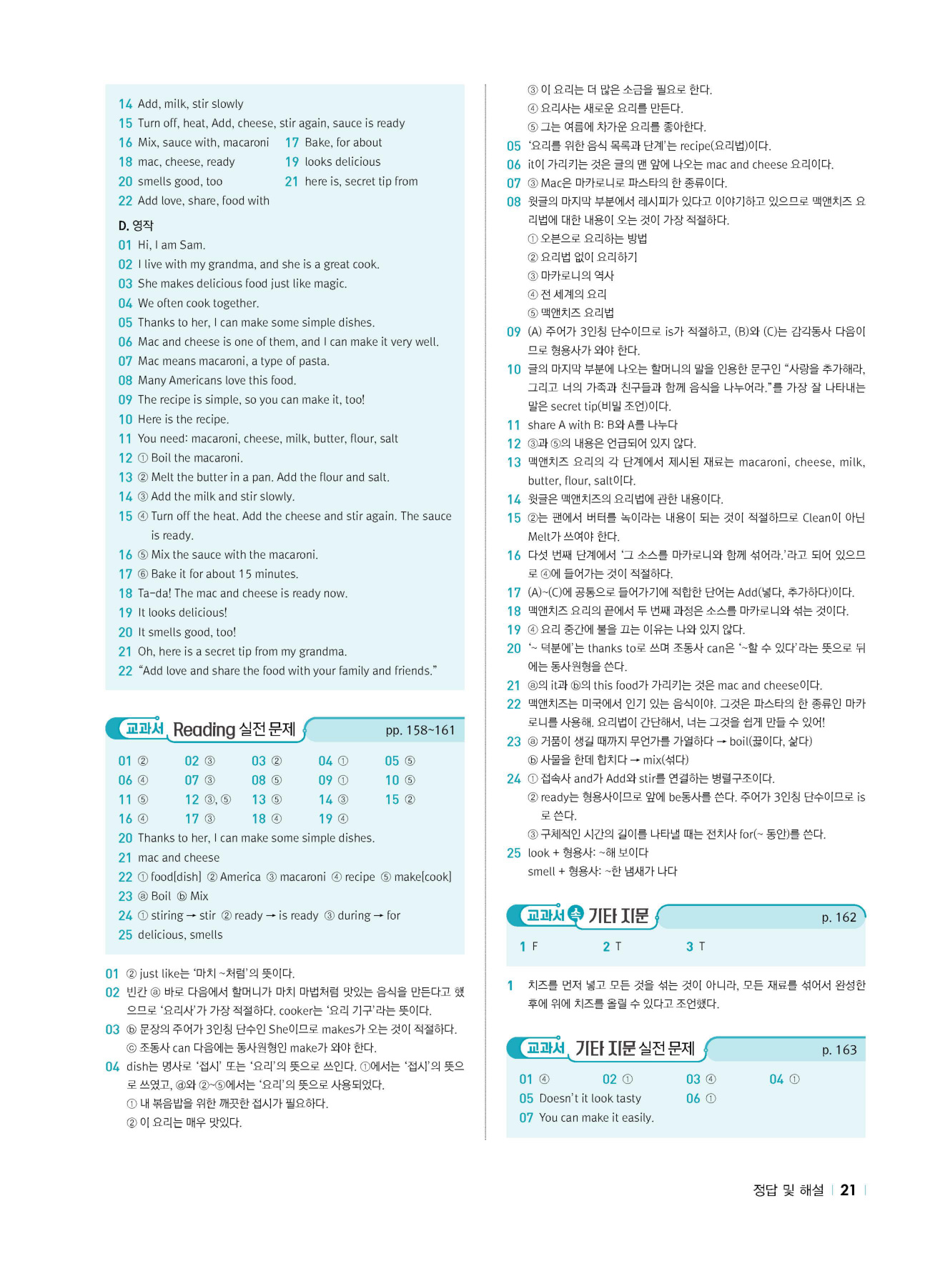 교과서에 수록된 기타 지문들을 꼼꼼히 분석하여 대화/문법 핵심 포인트를 학습하고, 실전 문제를 통해 학교 시험에 대비할 수 있도록 함