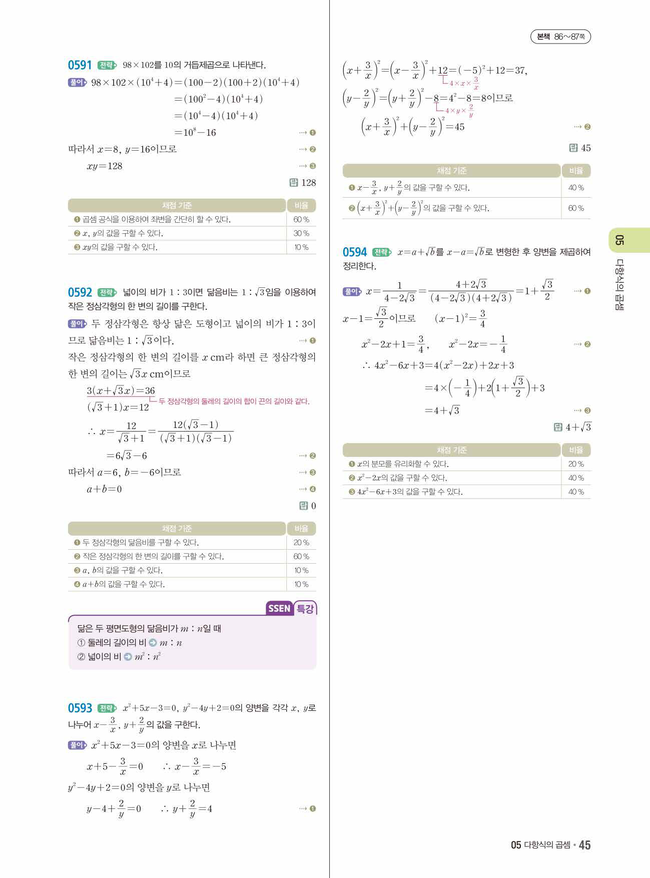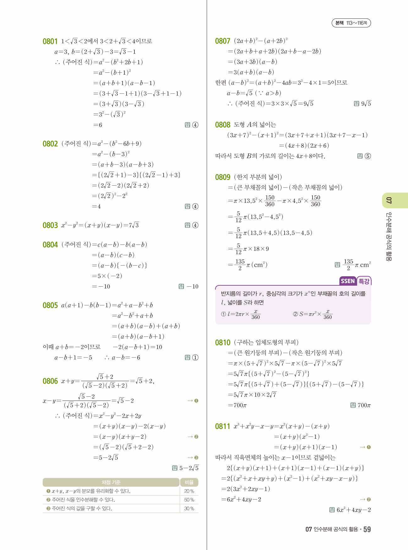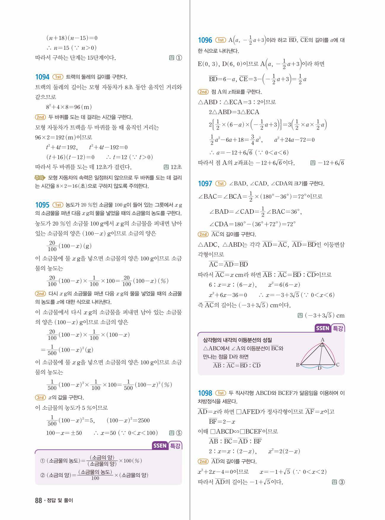 최적의 유형 학습을 통한 실제 문제해결 능력을 기르는 쎈, 수학의 답은 쎈입니다!