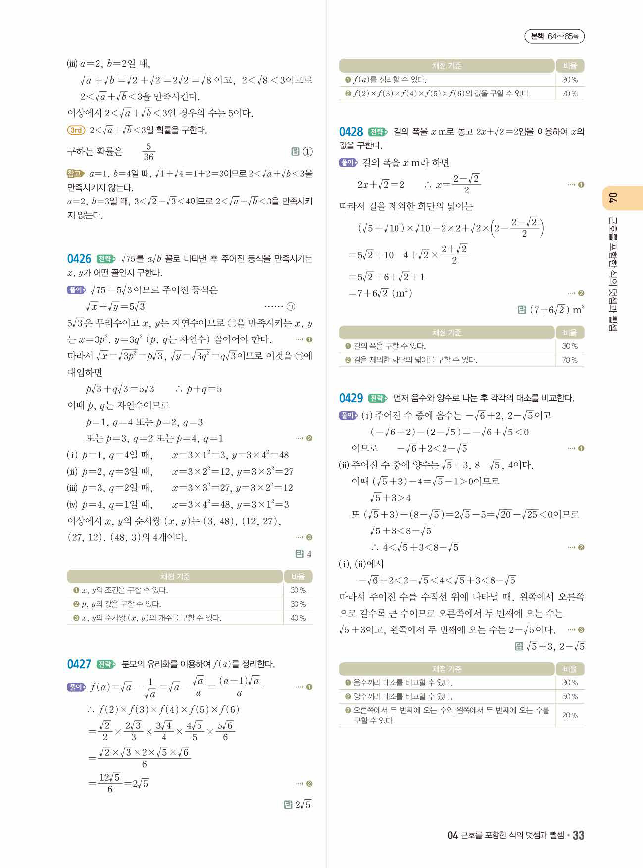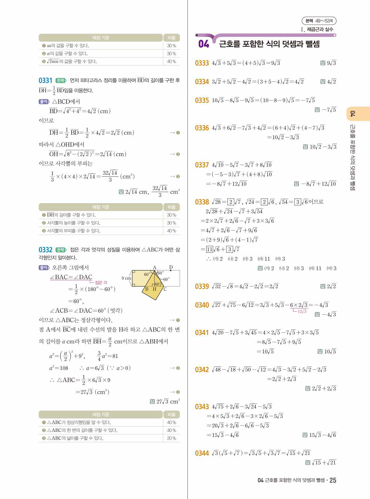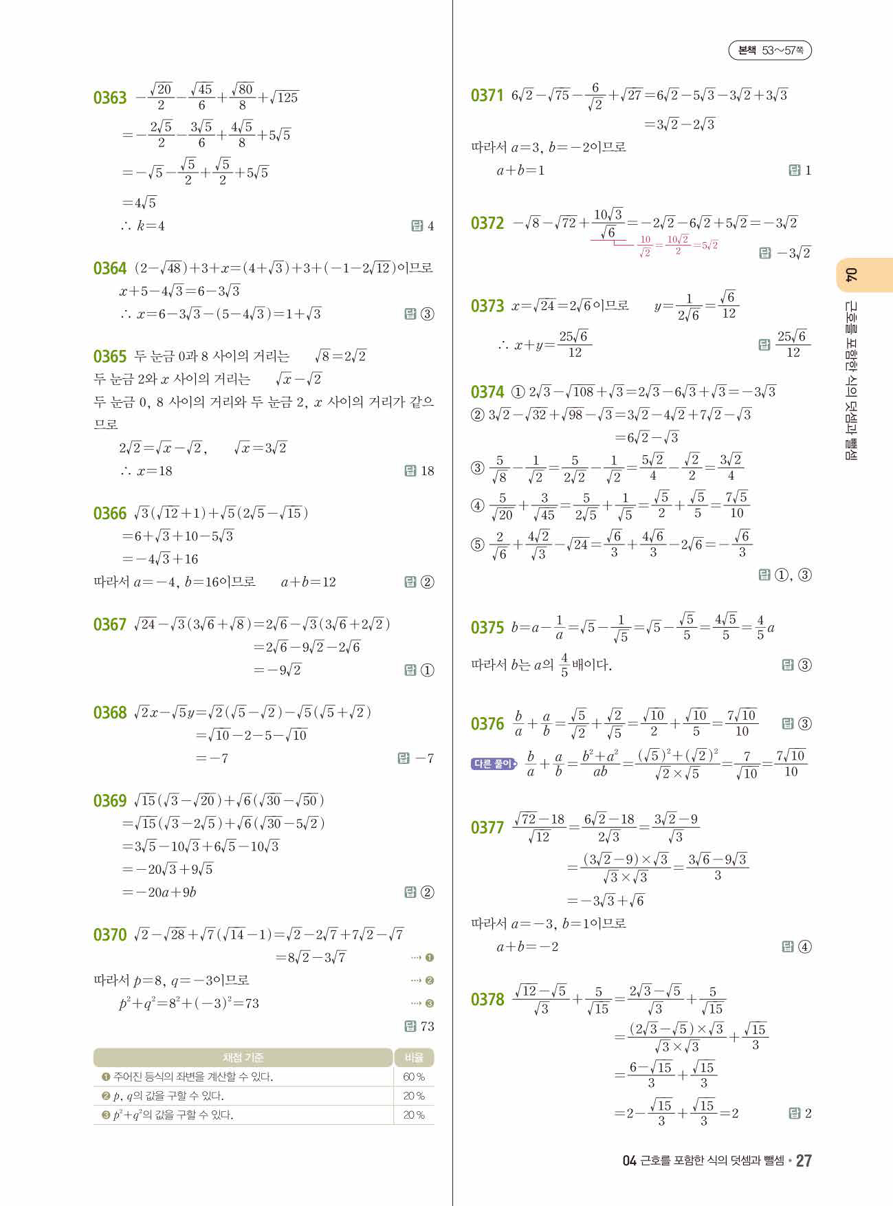04 근호를 포함한 식의 덧셈과 뺄셈 52