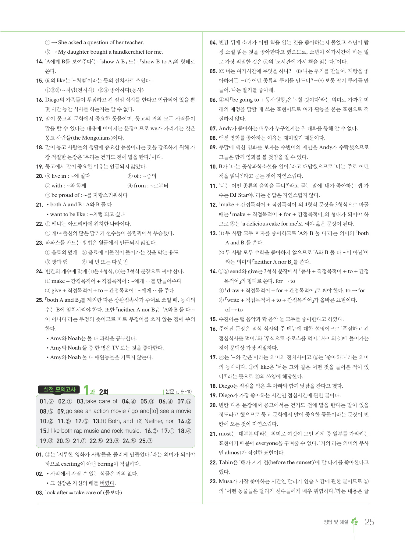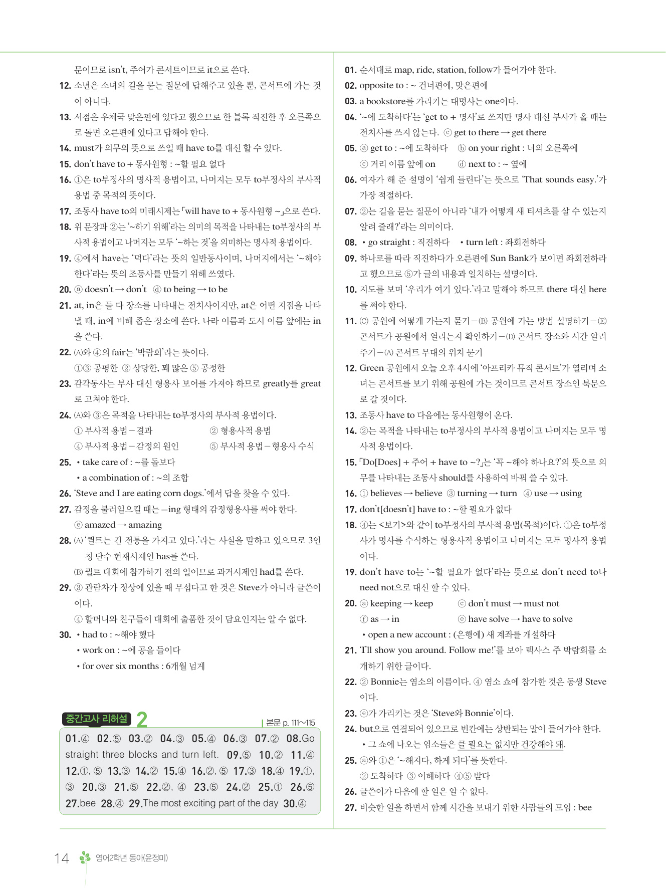 2025 내신콘서트 영어 중2 1학기 중간고사 동아 윤정미 답지 해설 PDF 사진답지