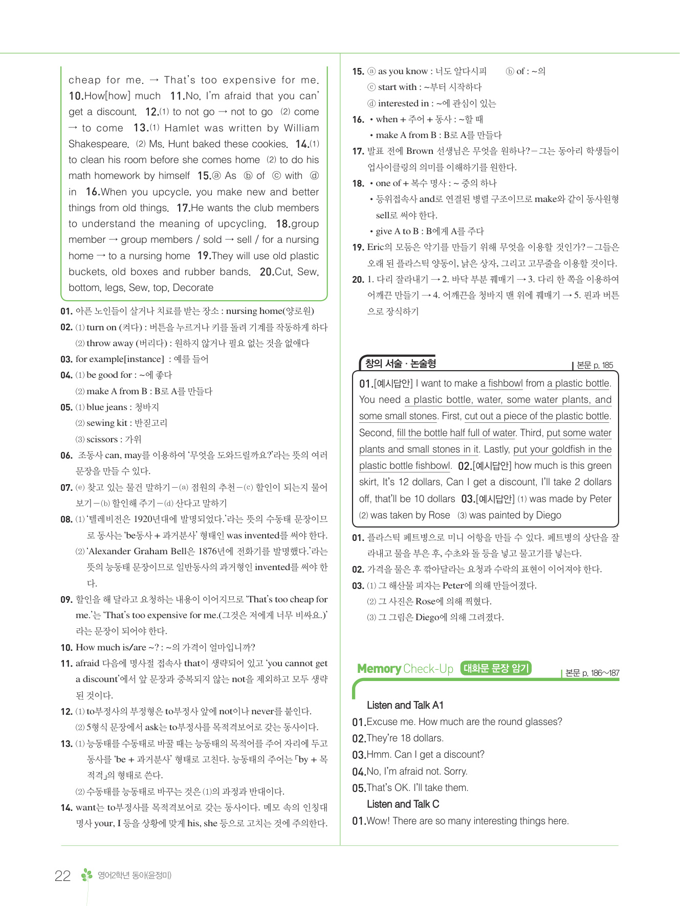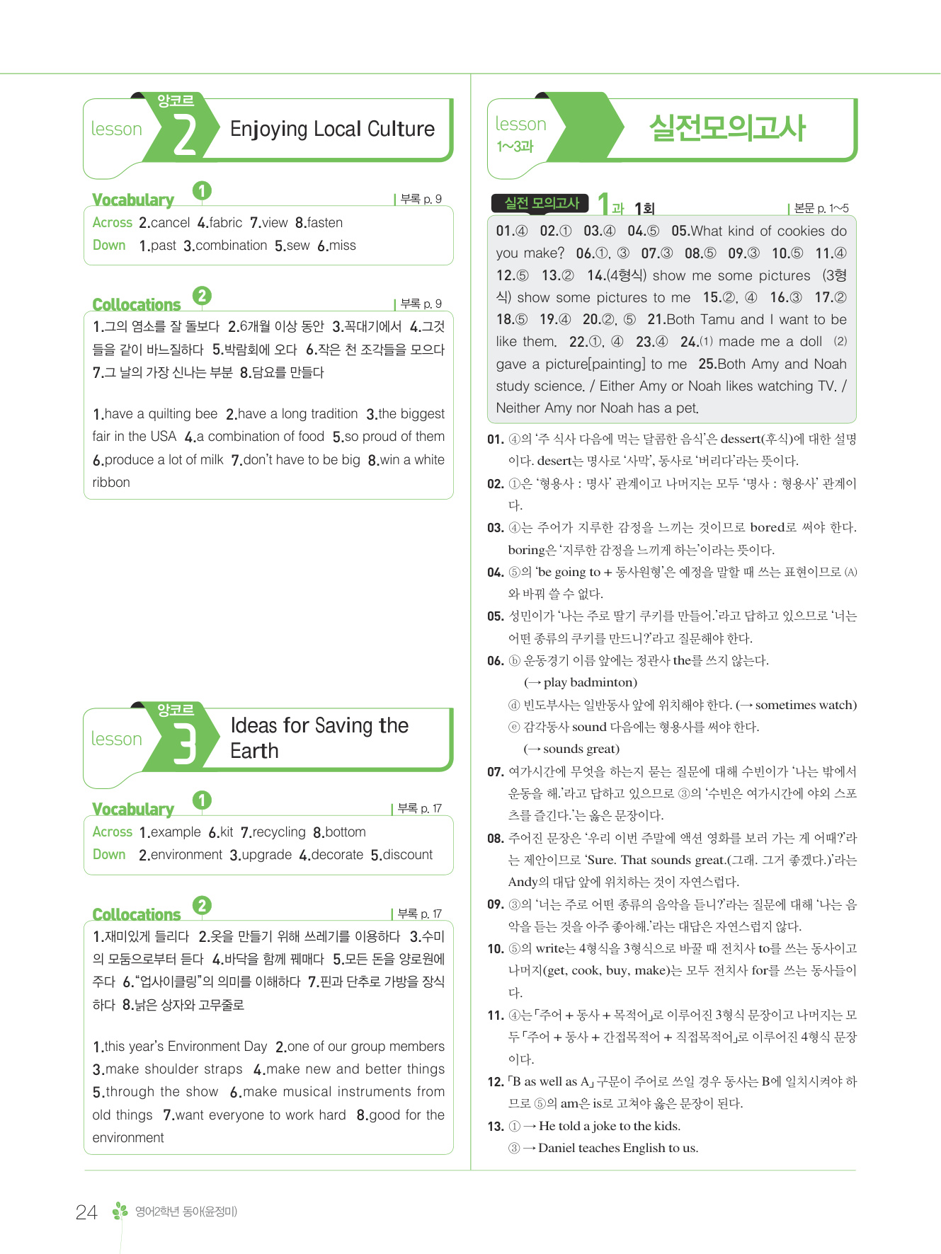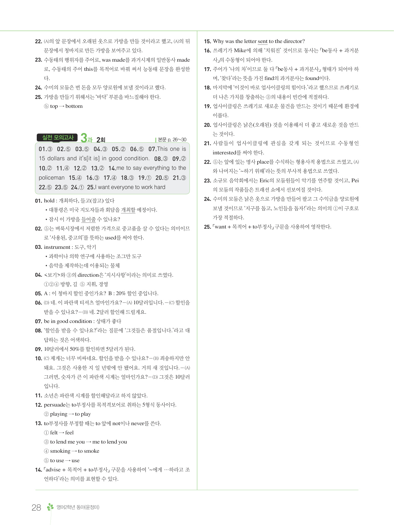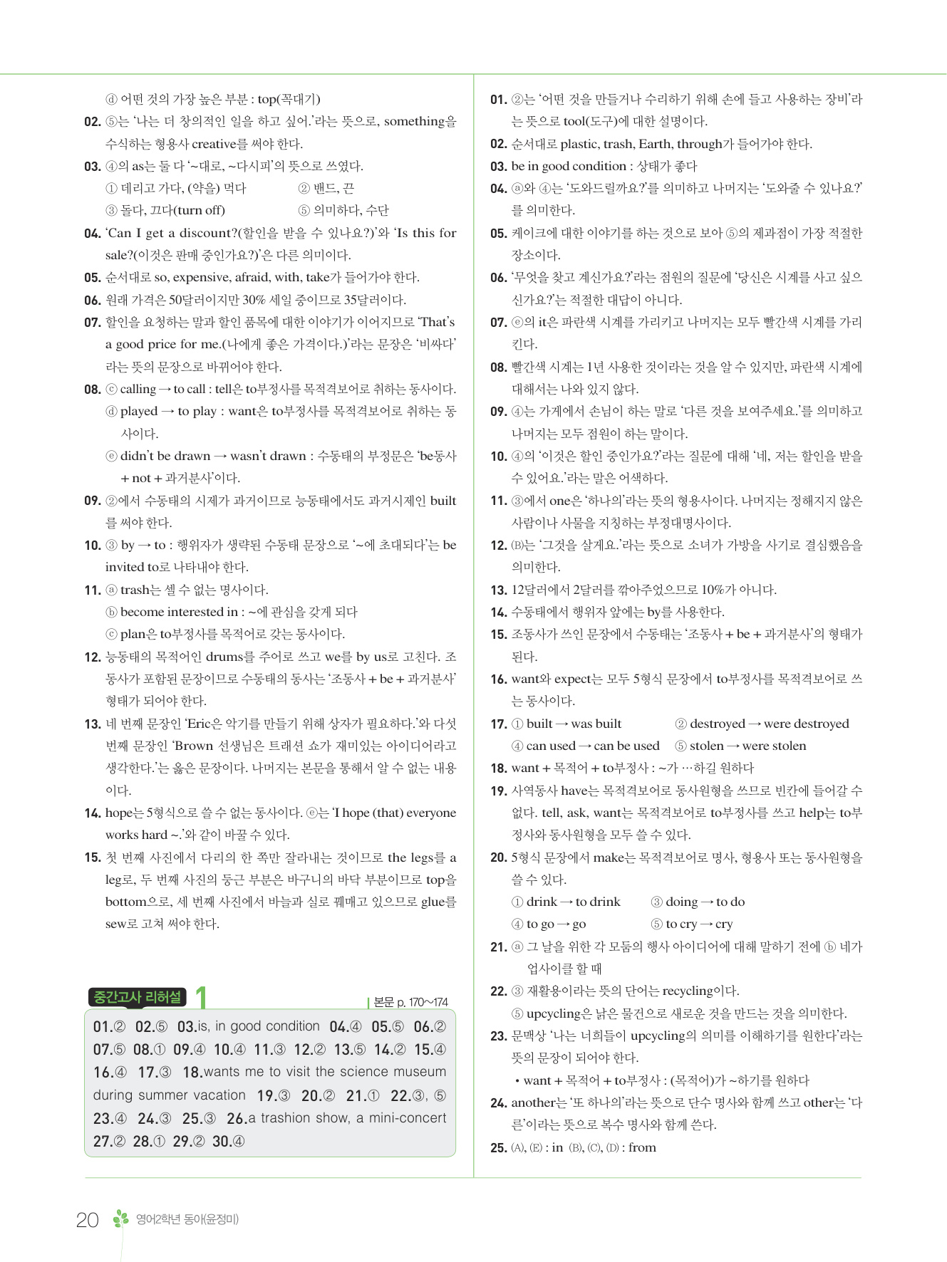 2025 내신콘서트 영어 중2 1학기 중간고사 동아 윤정미 답지 해설 PDF 사진답지