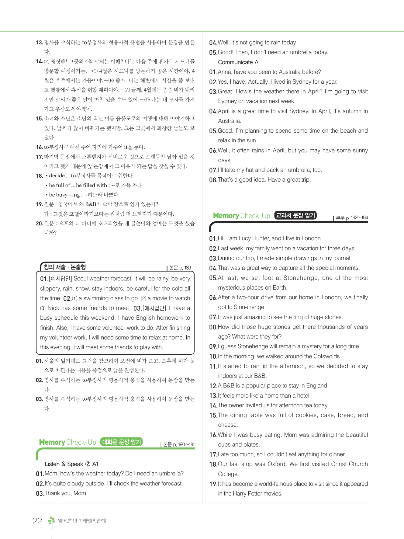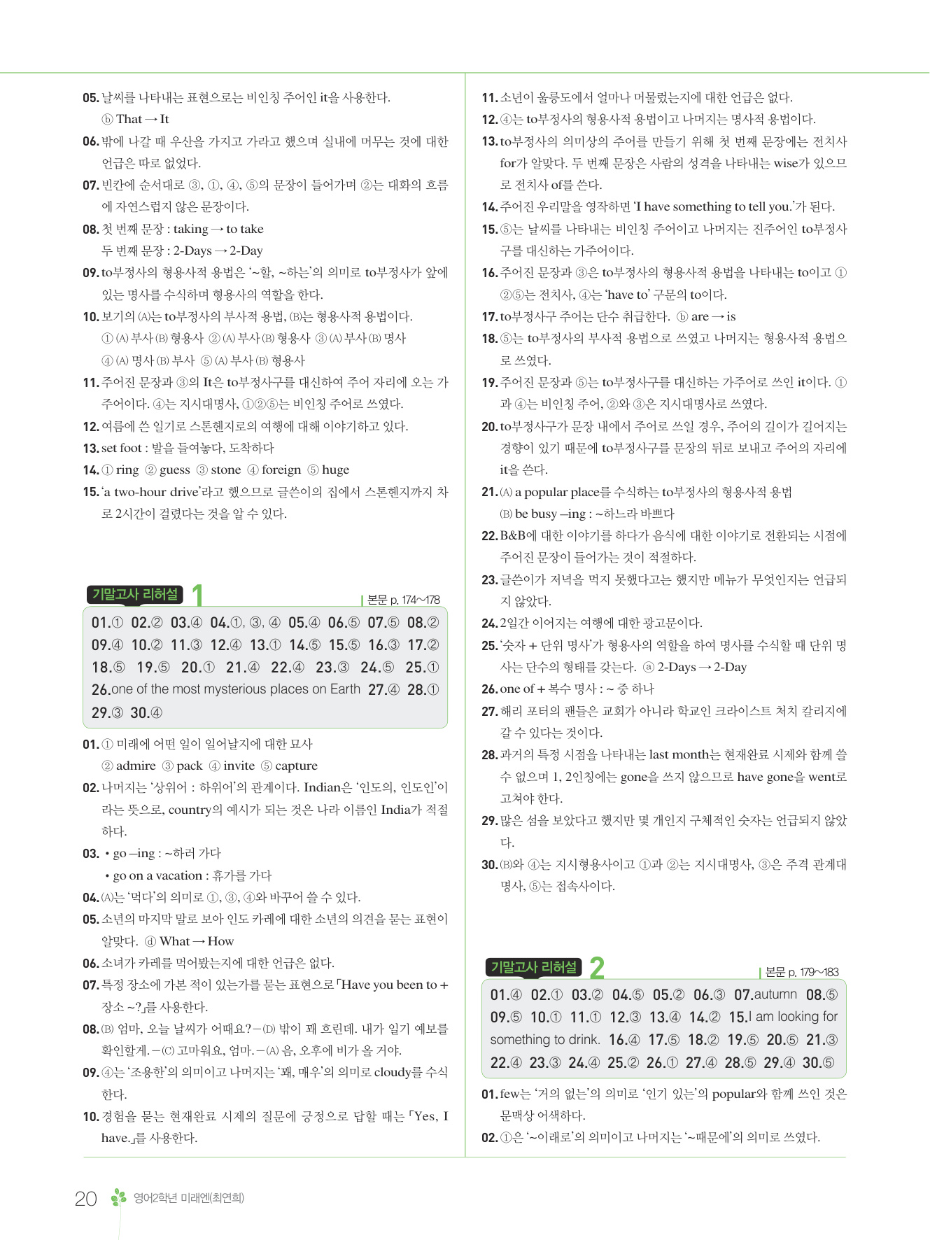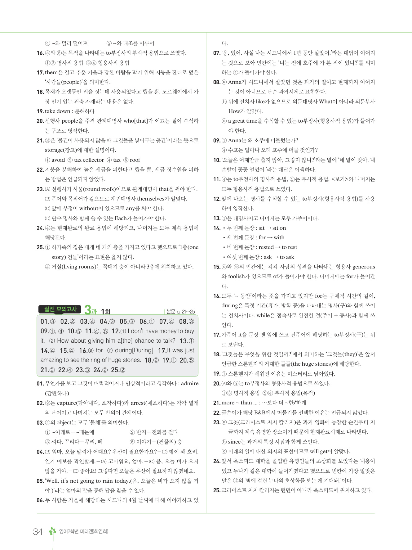 2025 내신콘서트 영어 중2 1학기 통합본 미래엔 최연희 답지 해설 PDF 사진답지