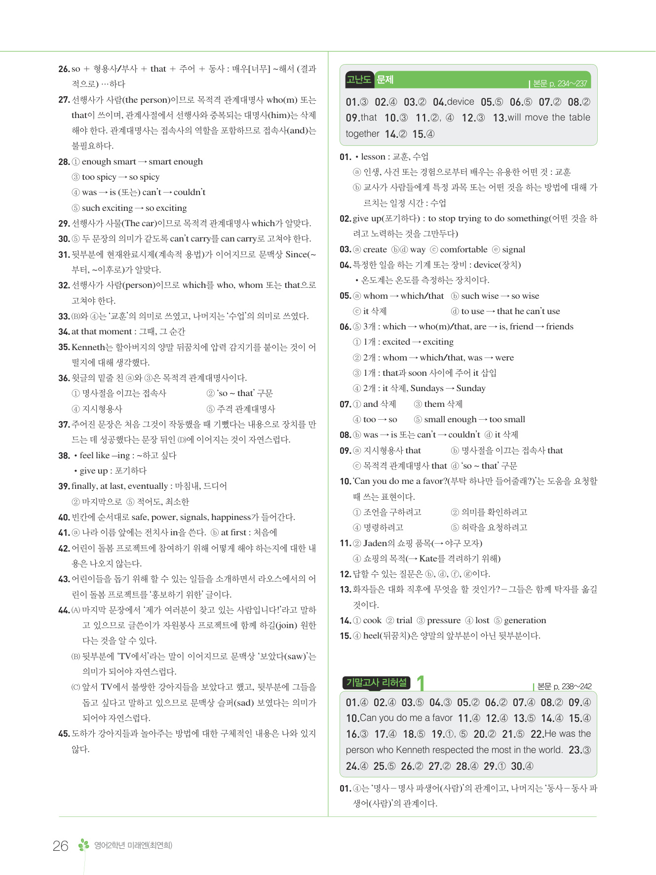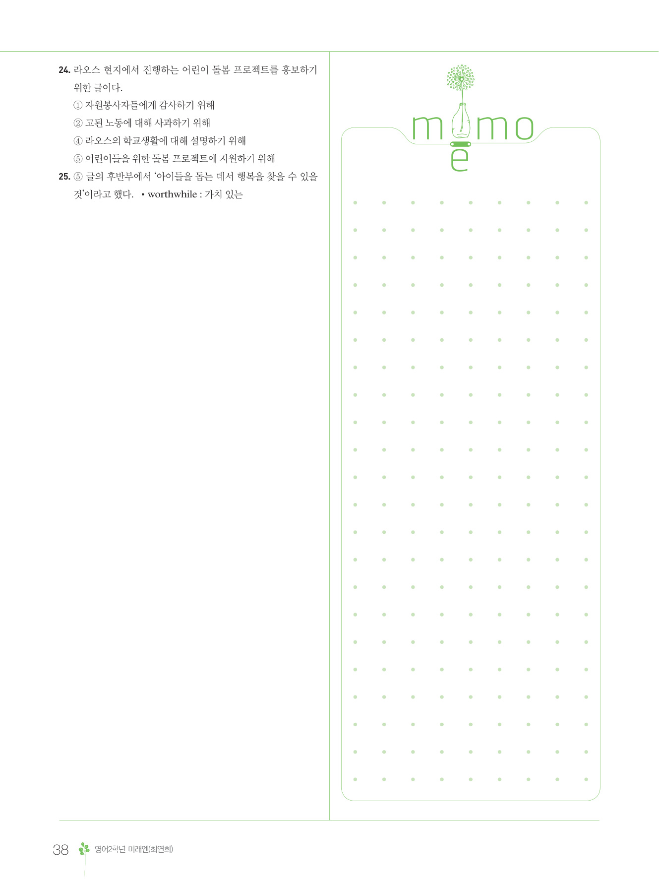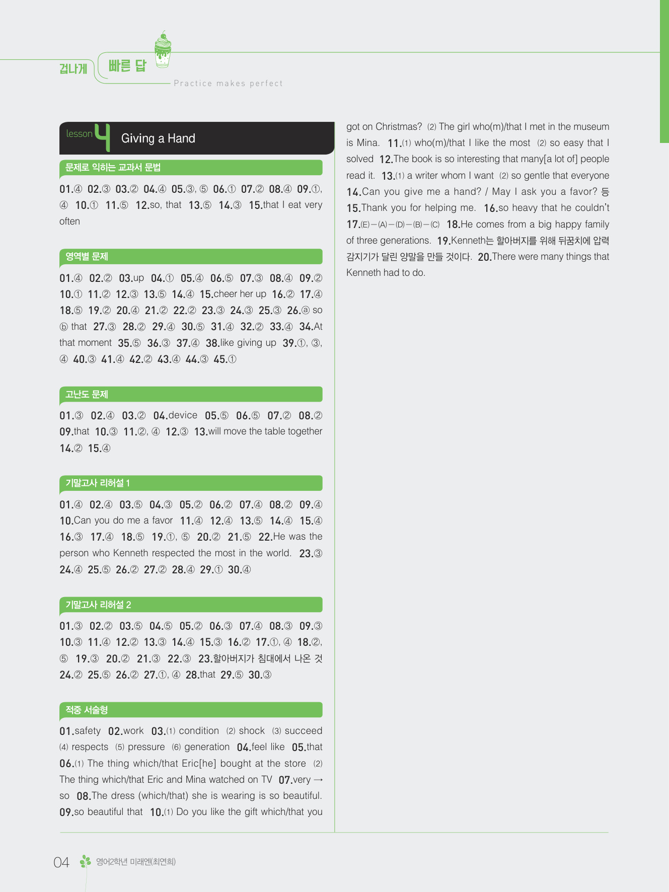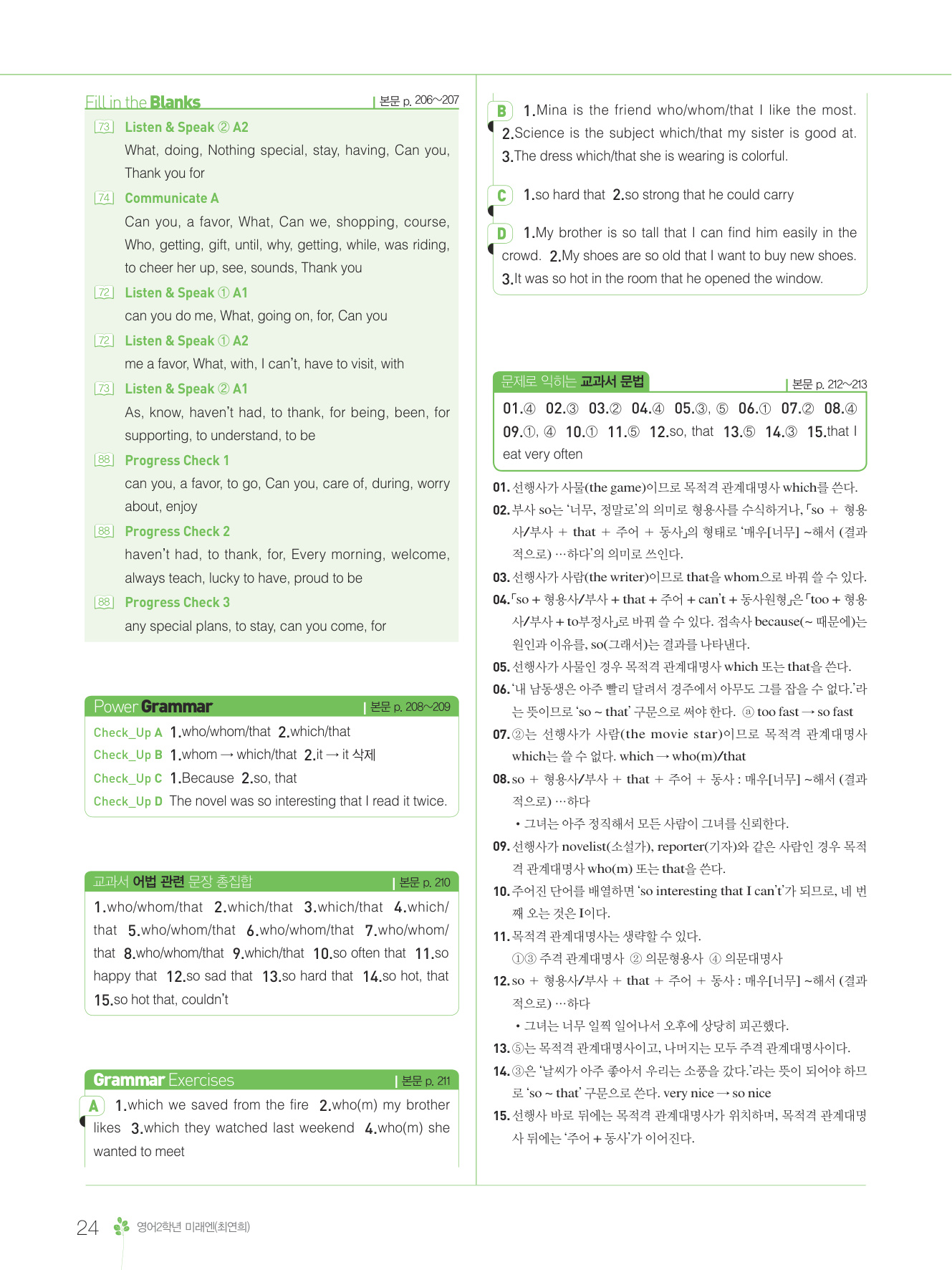 2025 내신콘서트 영어 중2 1학기 통합본 미래엔 최연희 답지 해설 PDF 사진답지