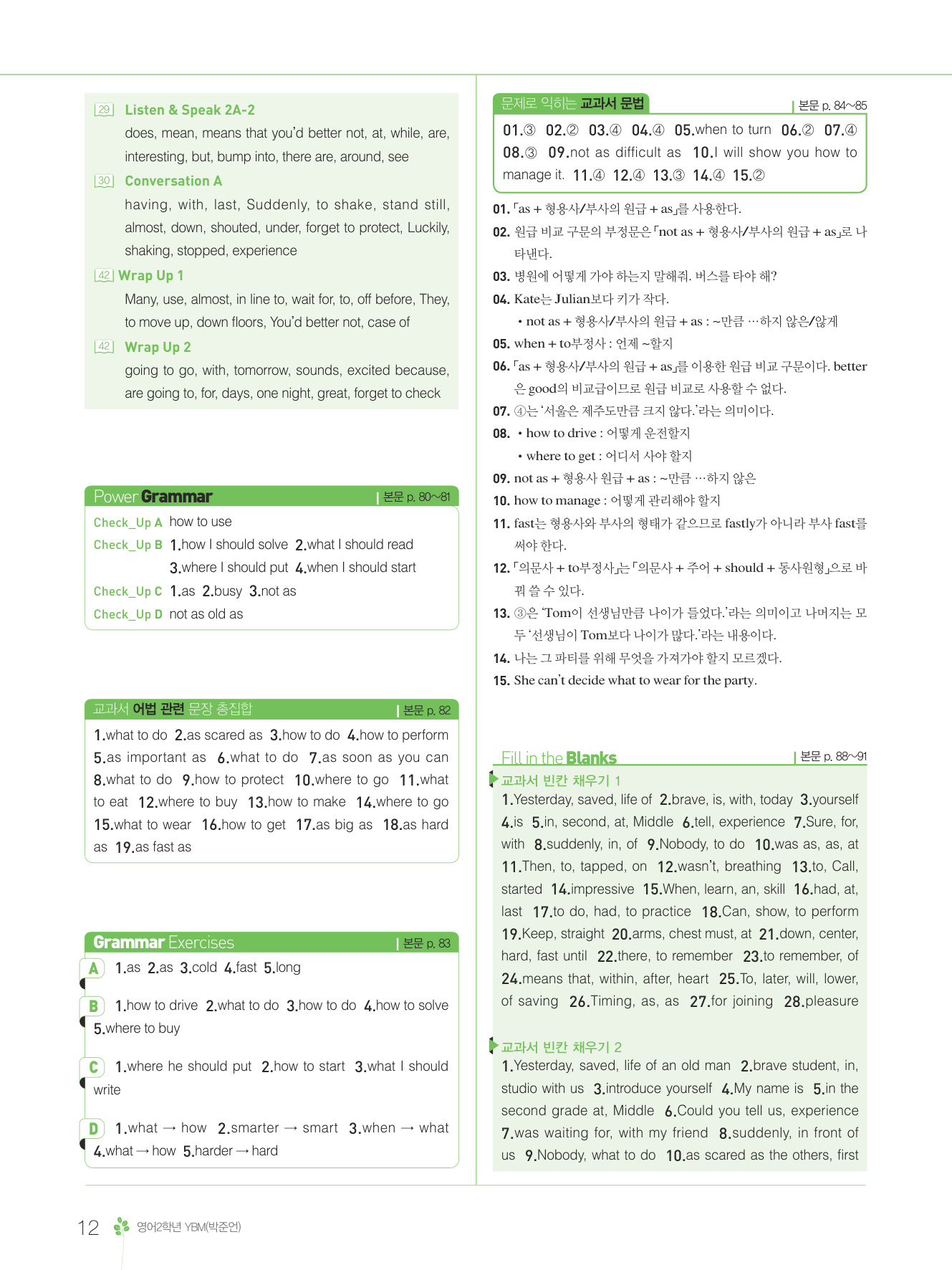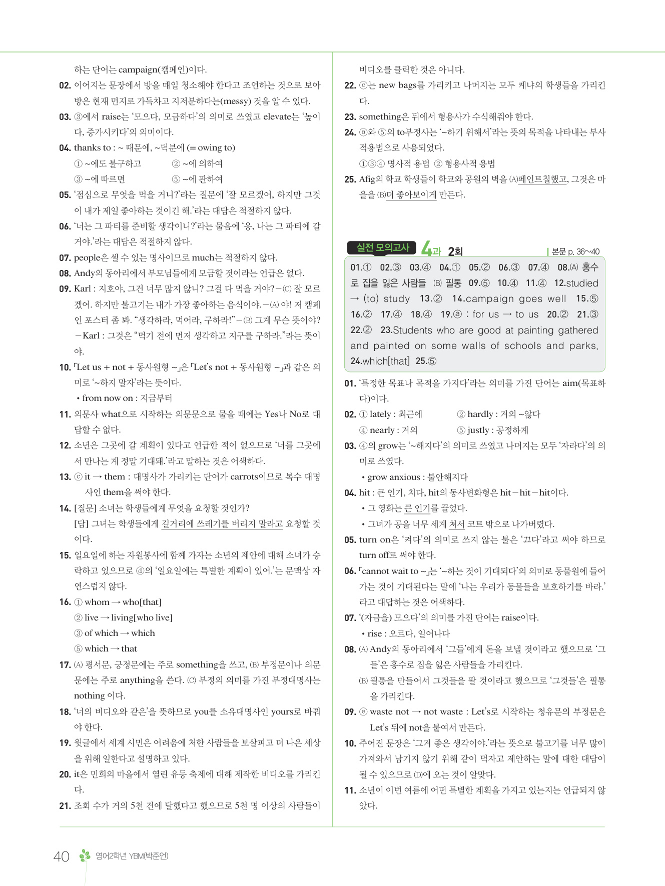 2025 내신콘서트 영어 중2-1 통합본 YBM 박준언 답지 해설 PDF 사진답지