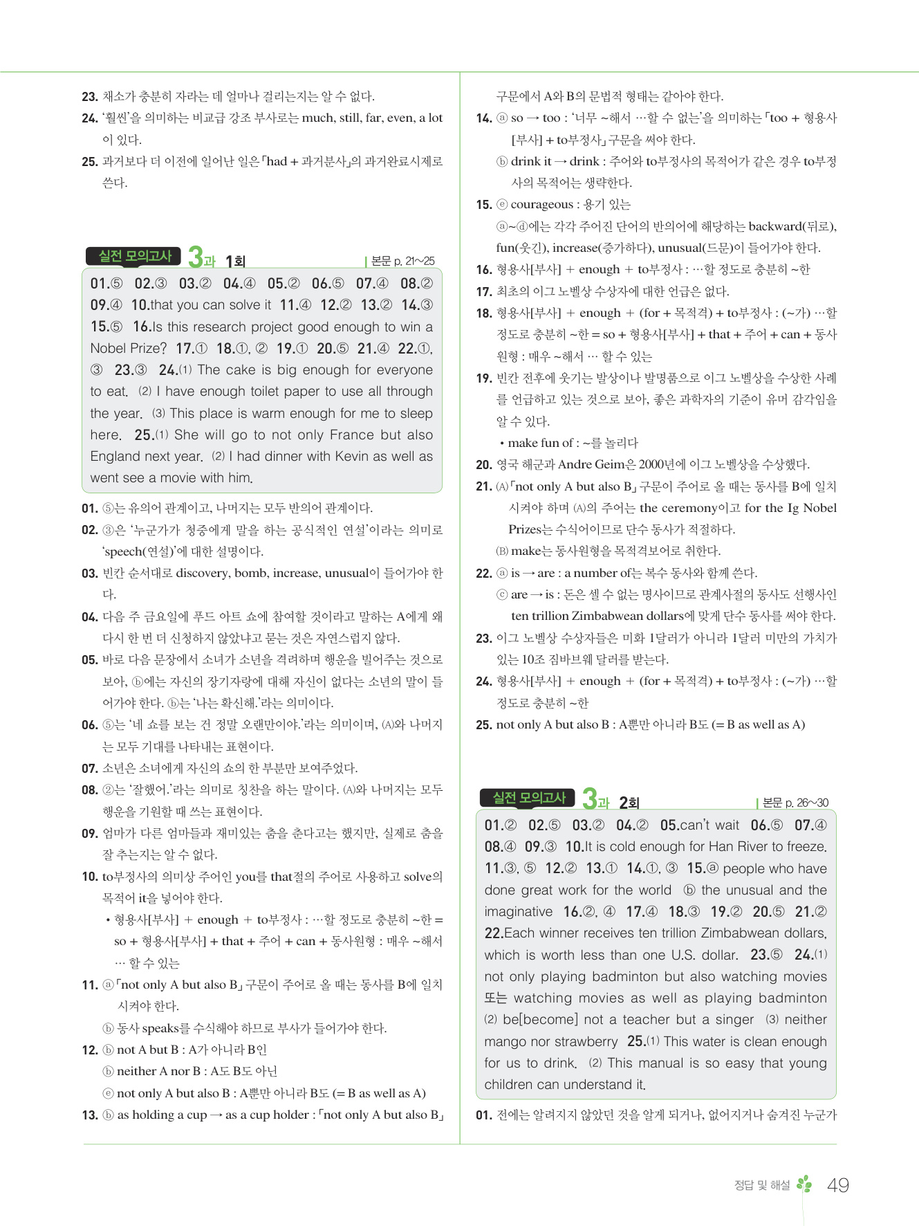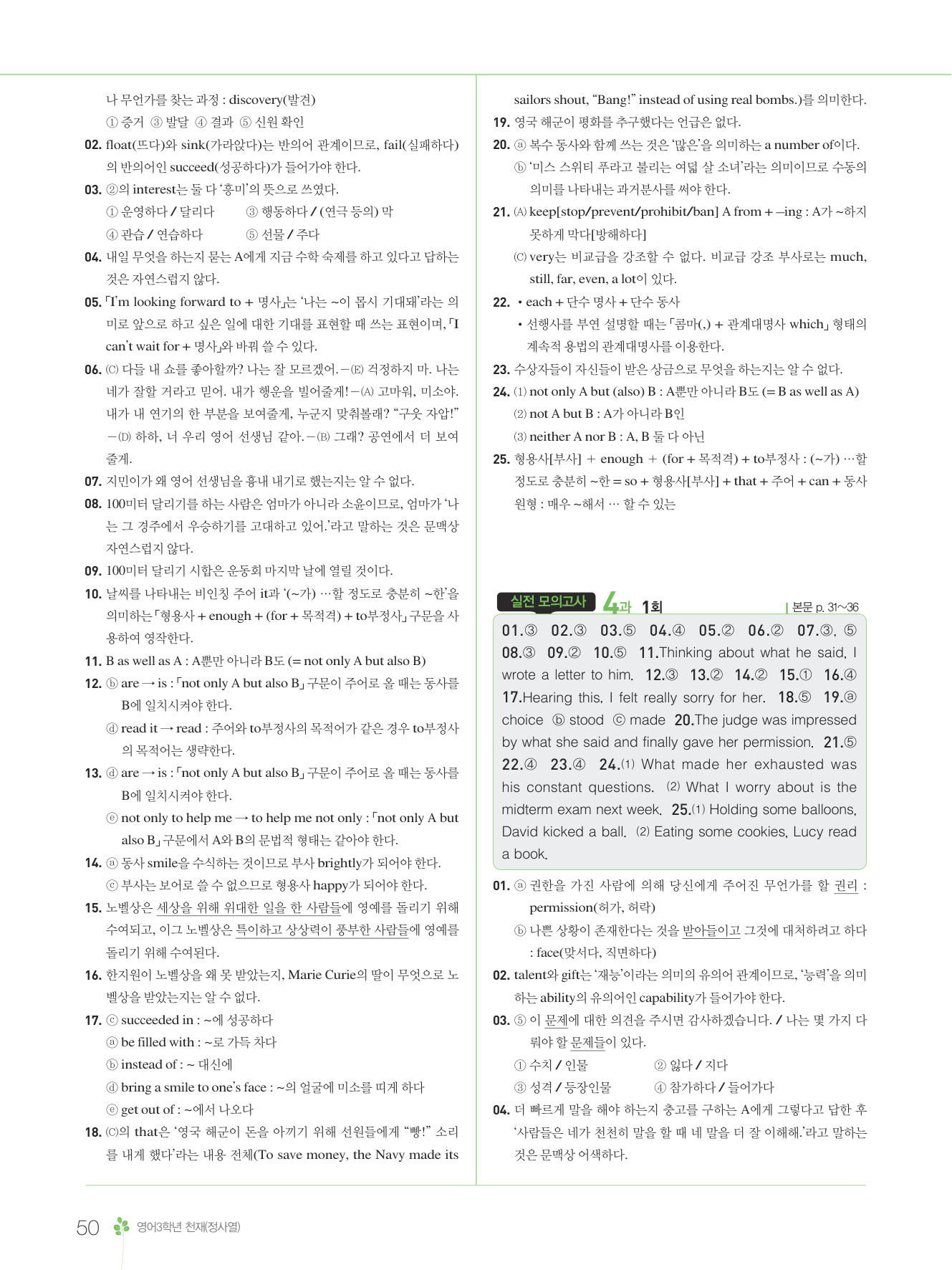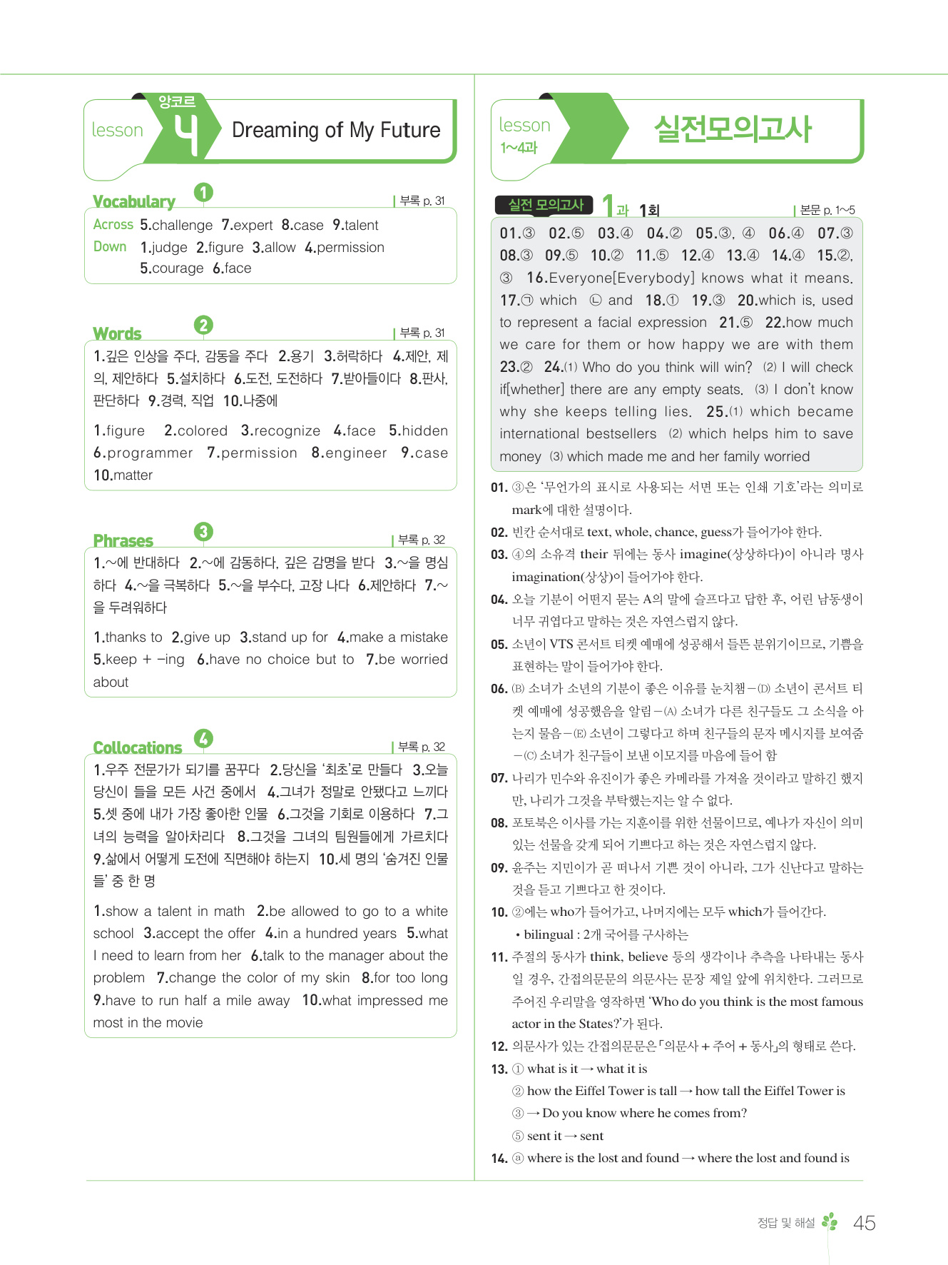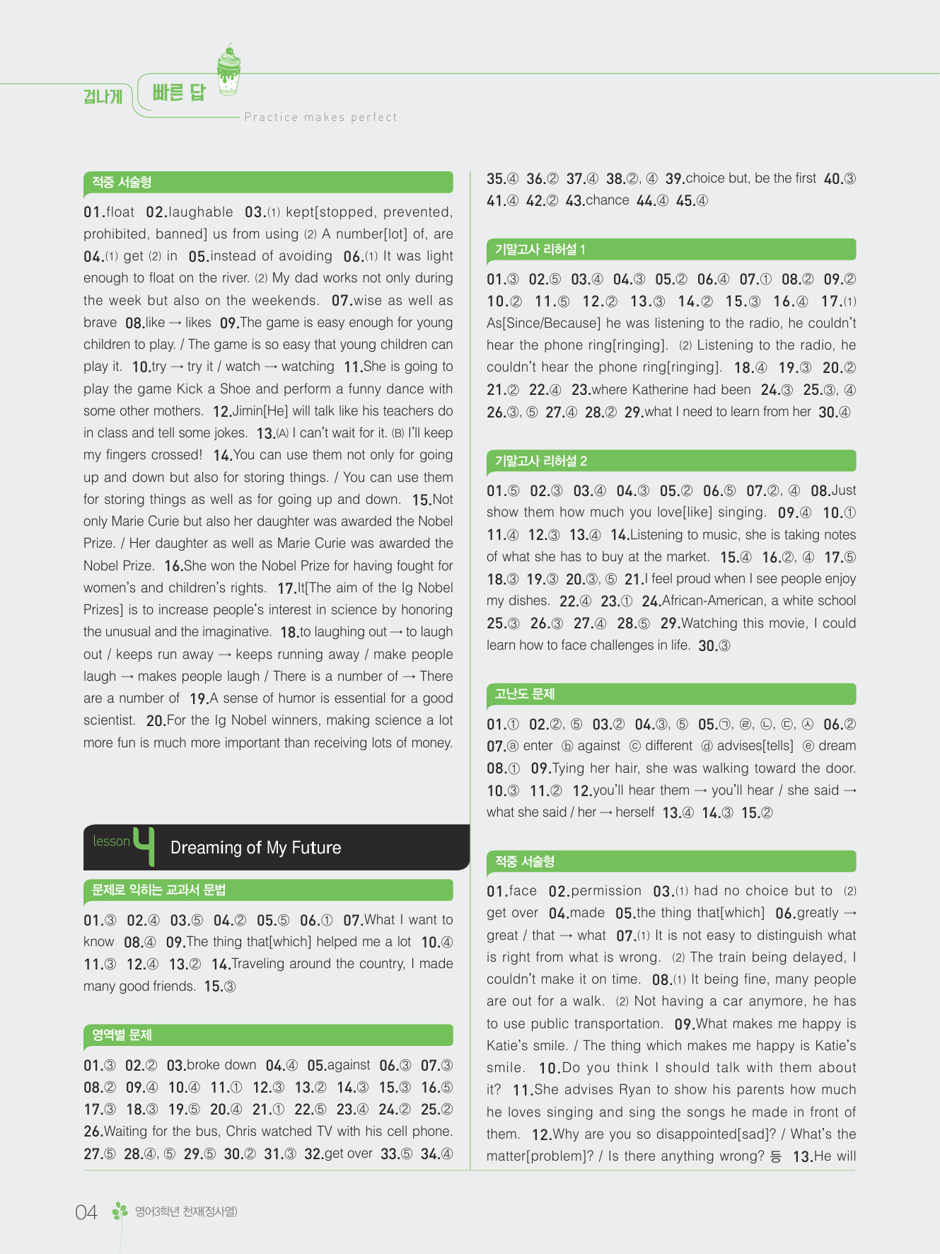 2025 내신콘서트 영어 통합본 중3 1학기 천재 정사열 답지 해설 PDF 사진답지