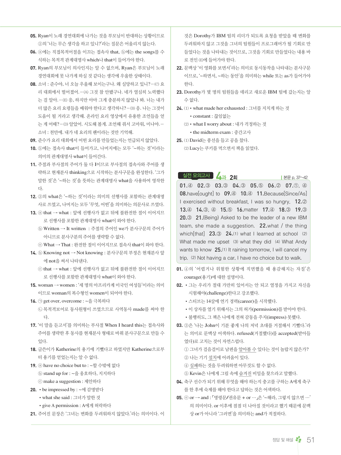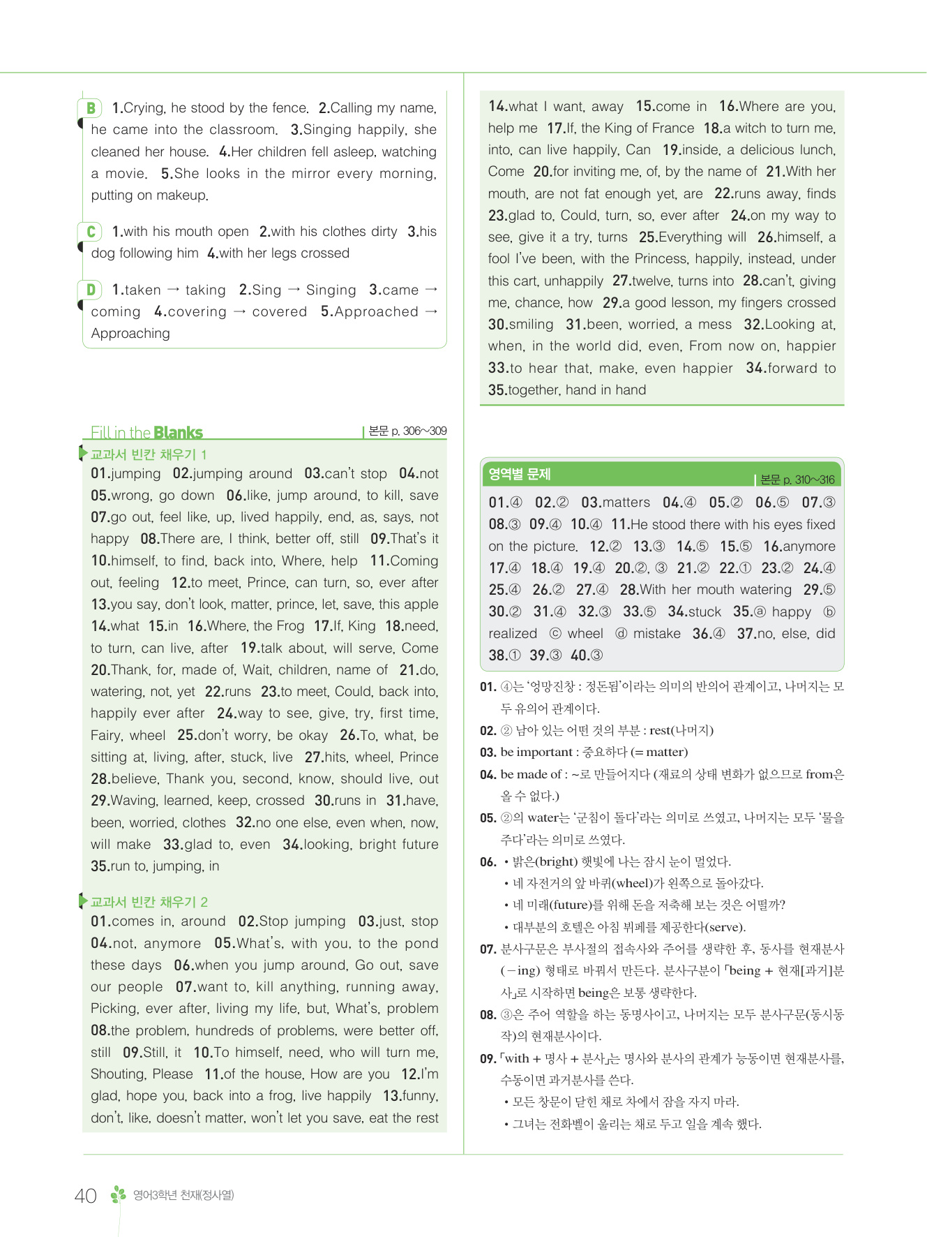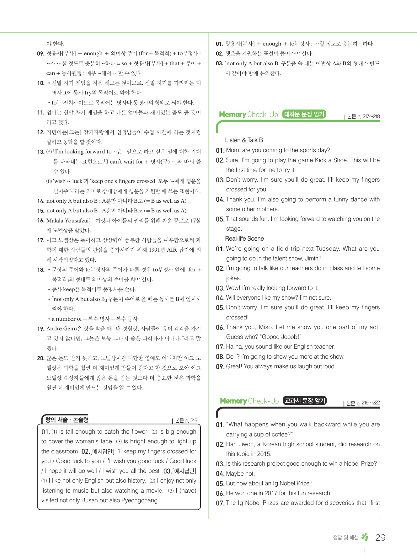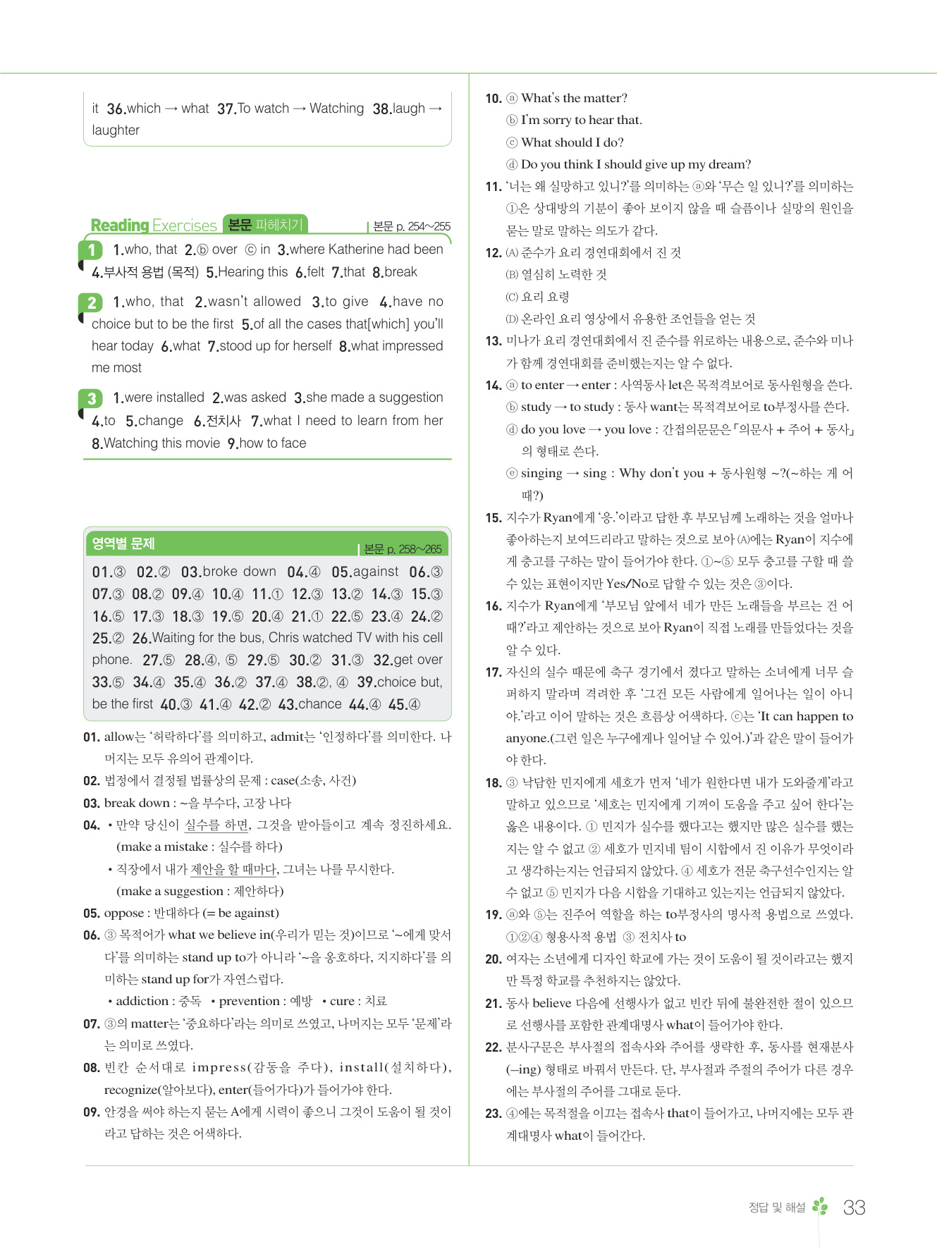 2025 내신콘서트 영어 통합본 중3 1학기 천재 정사열 답지 해설 PDF 사진답지