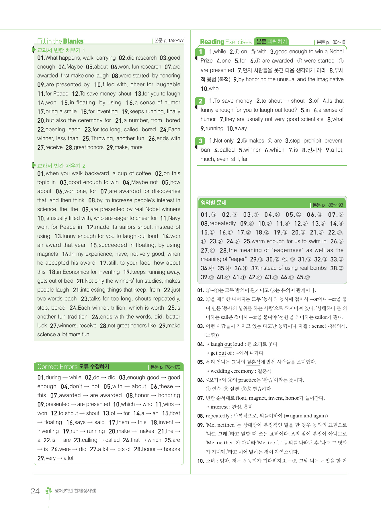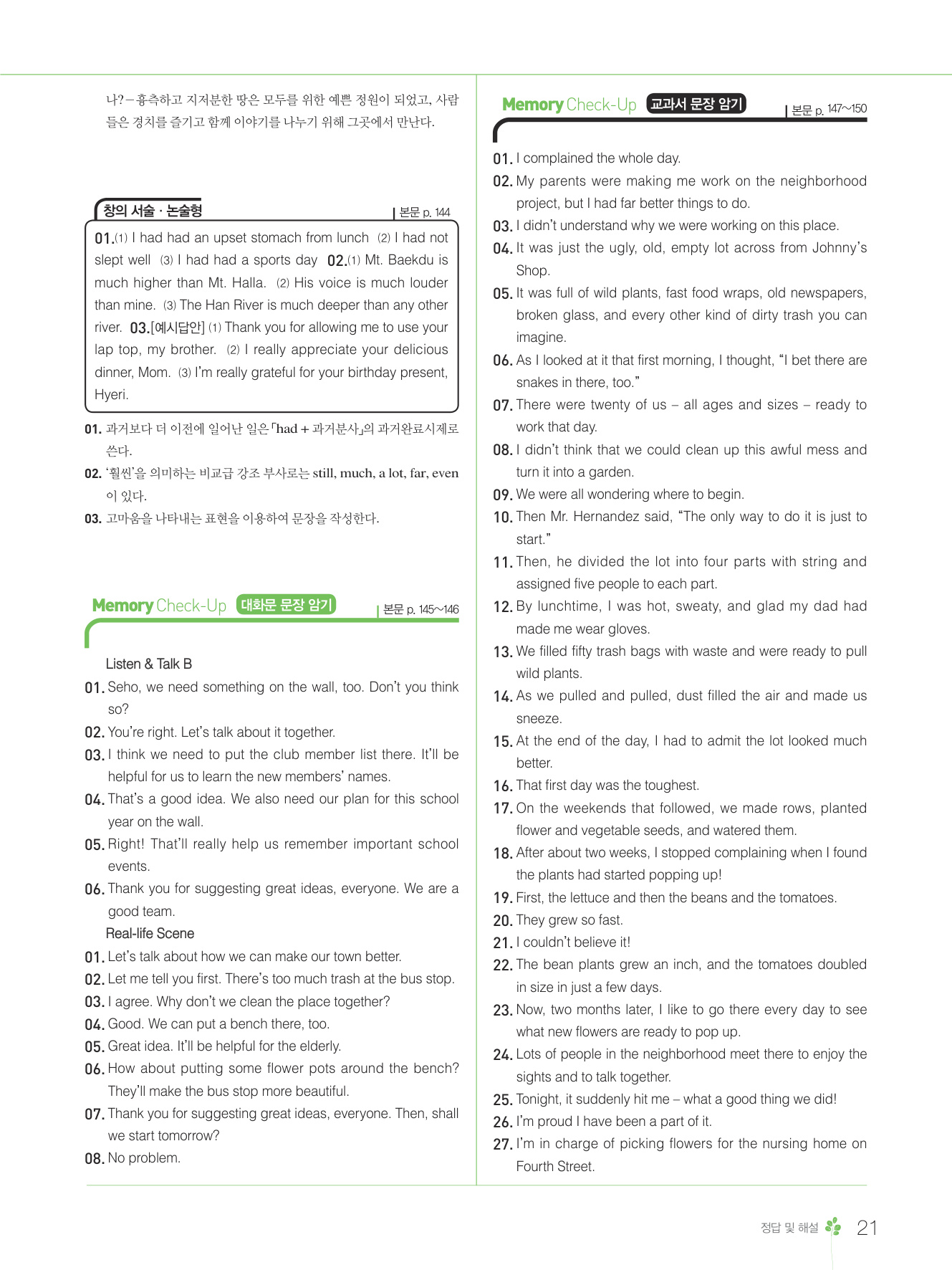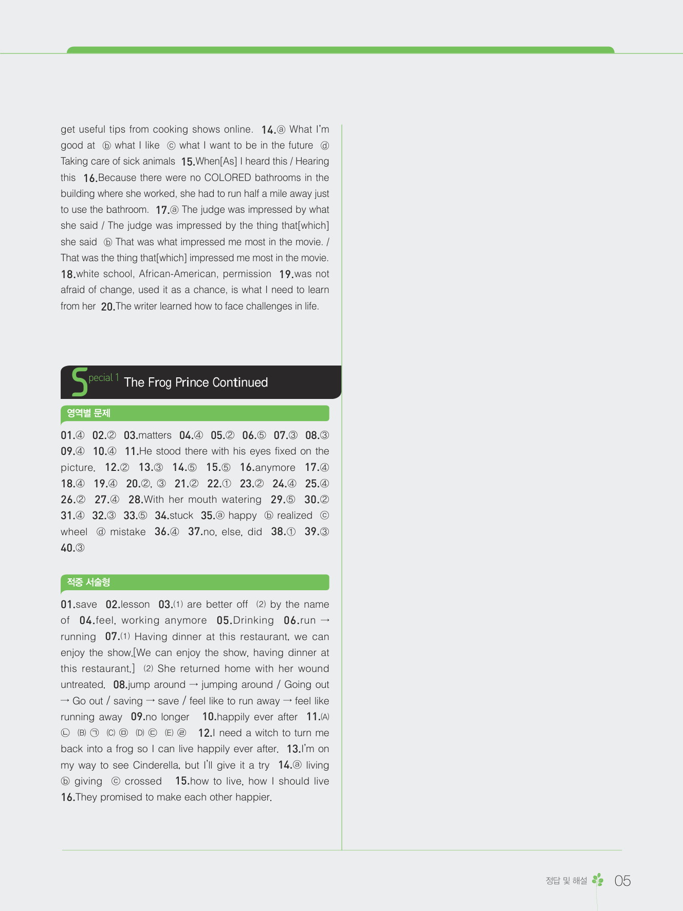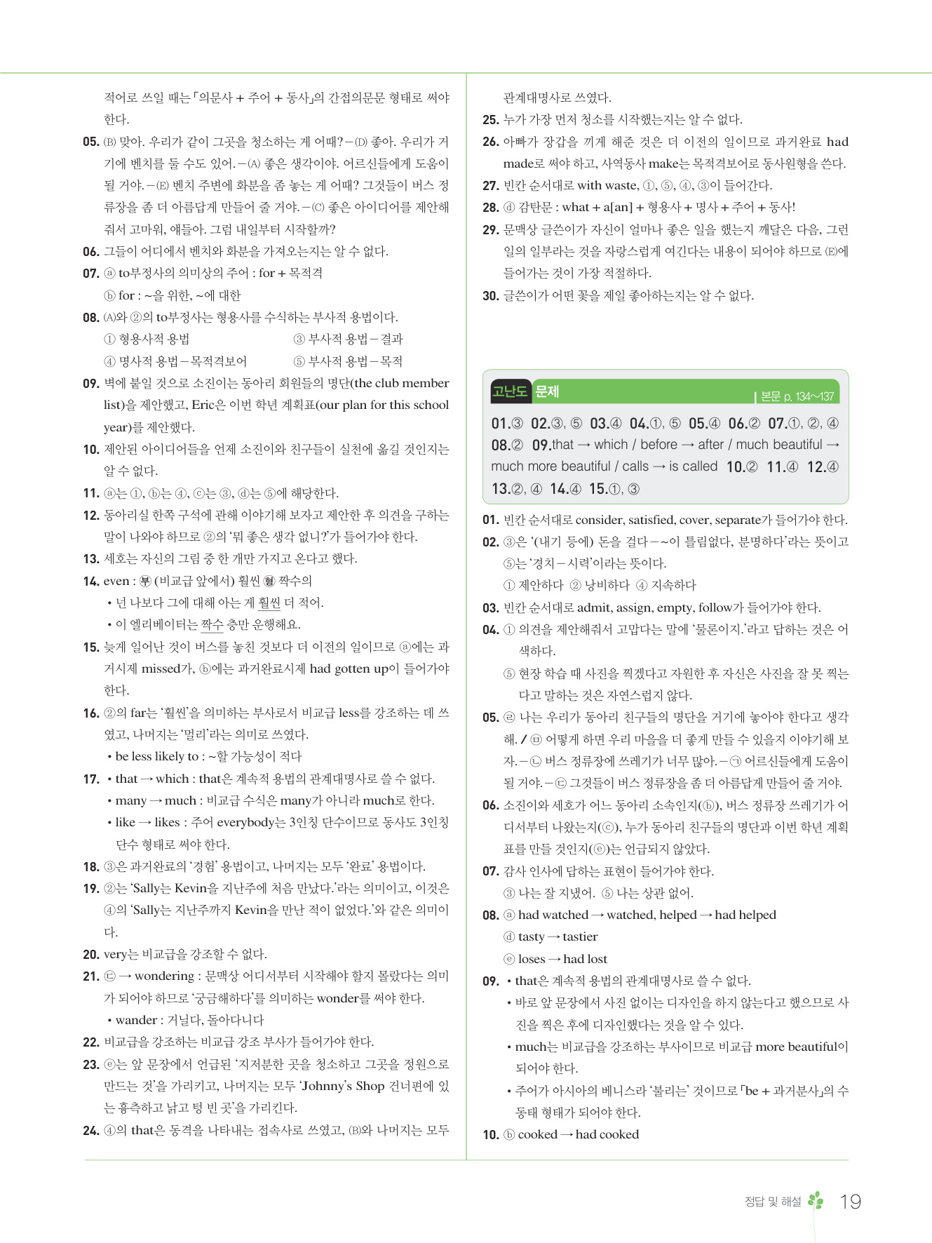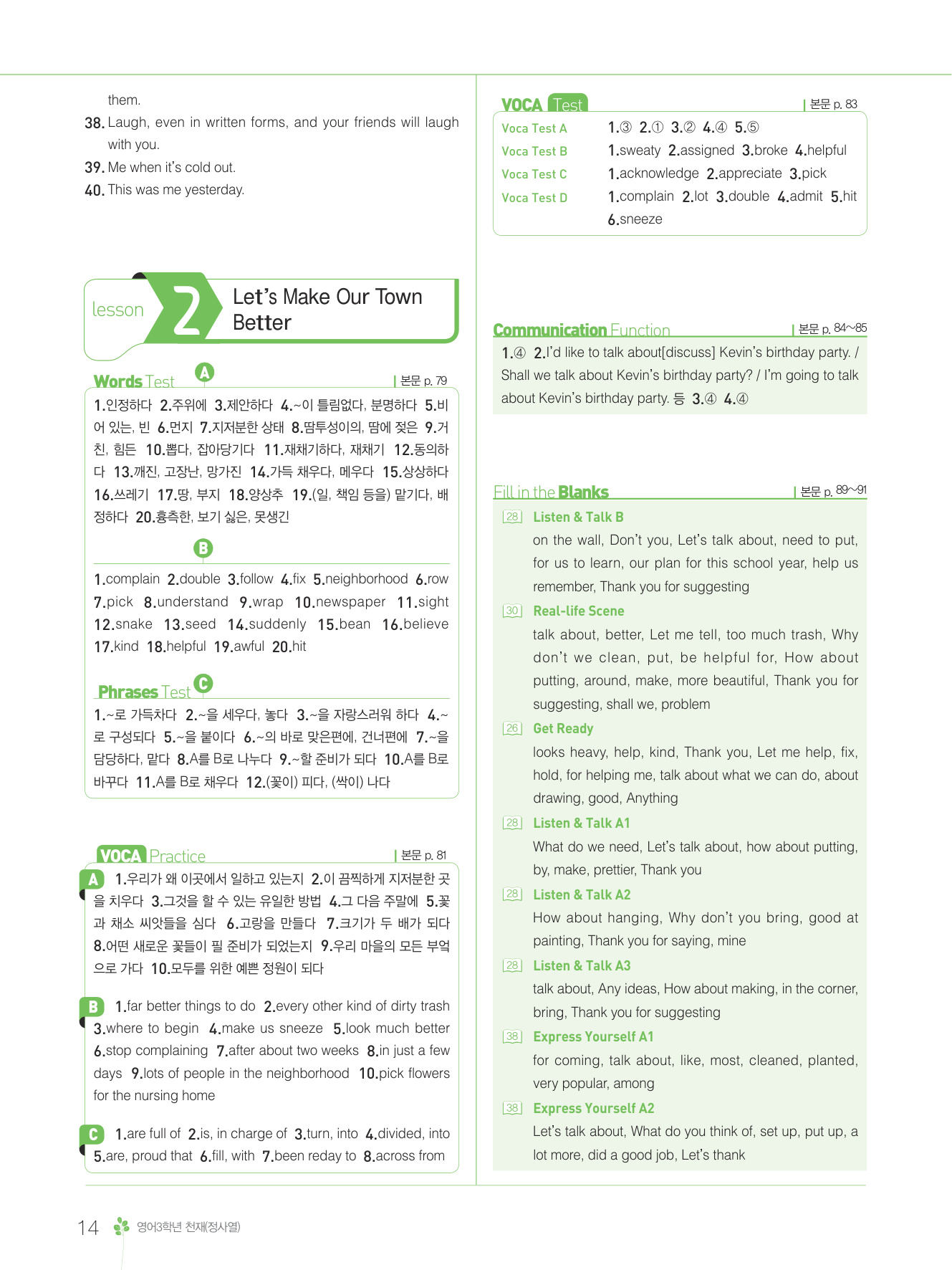 2025 내신콘서트 영어 통합본 중3 1학기 천재 정사열 답지 해설 PDF 사진답지
