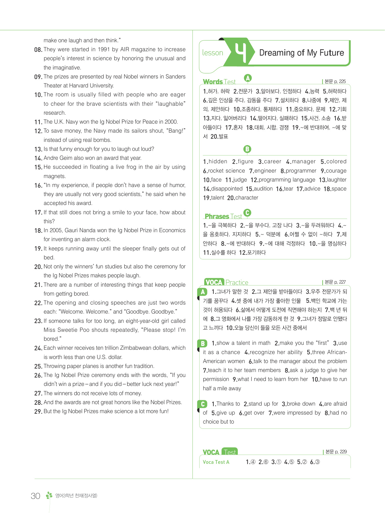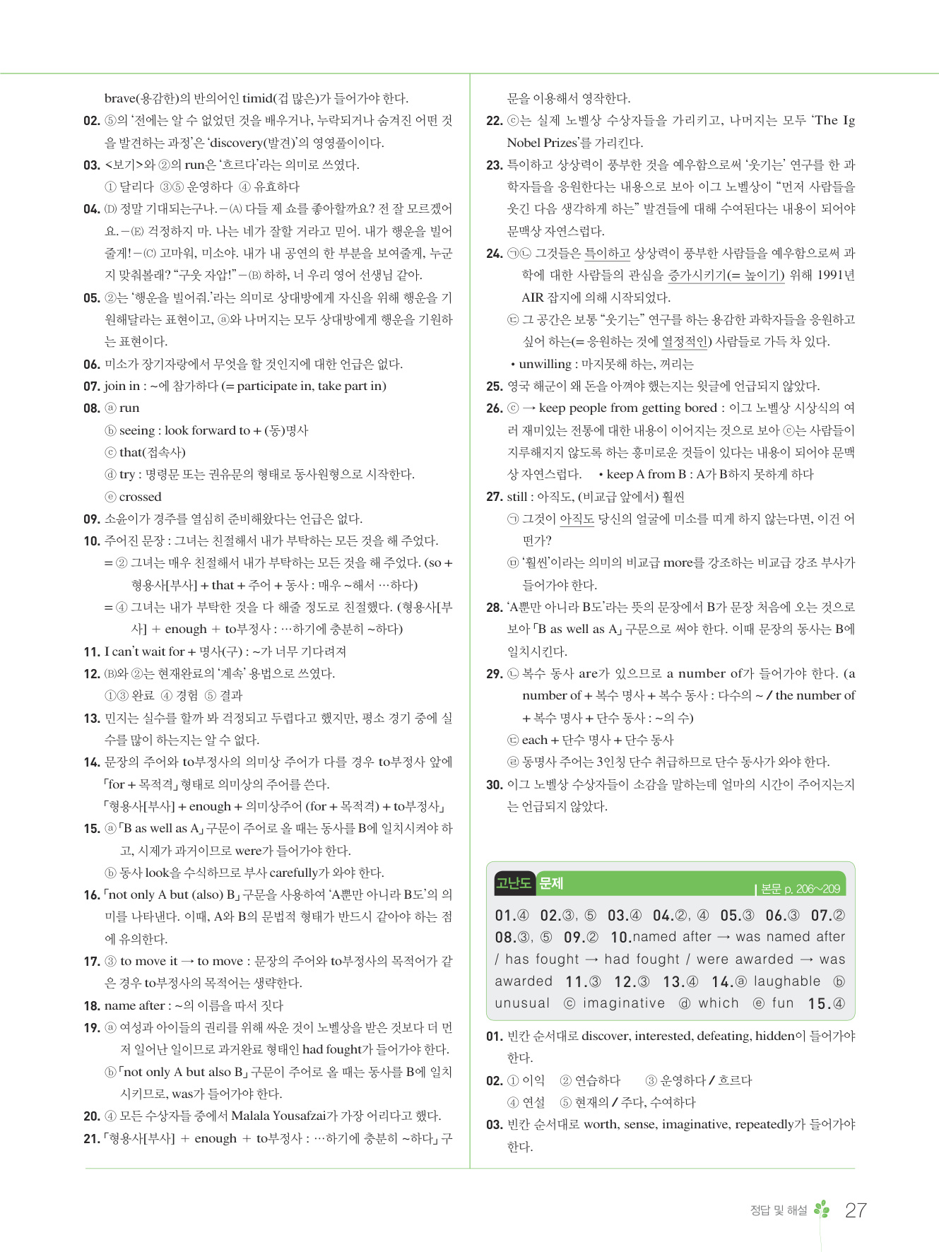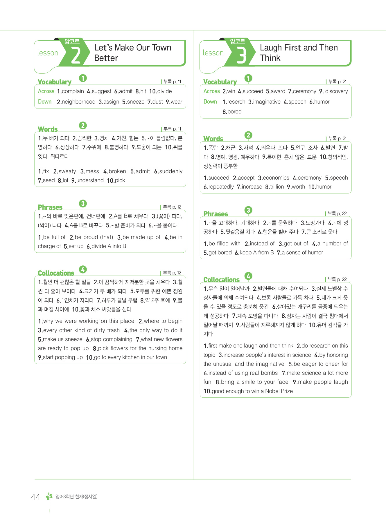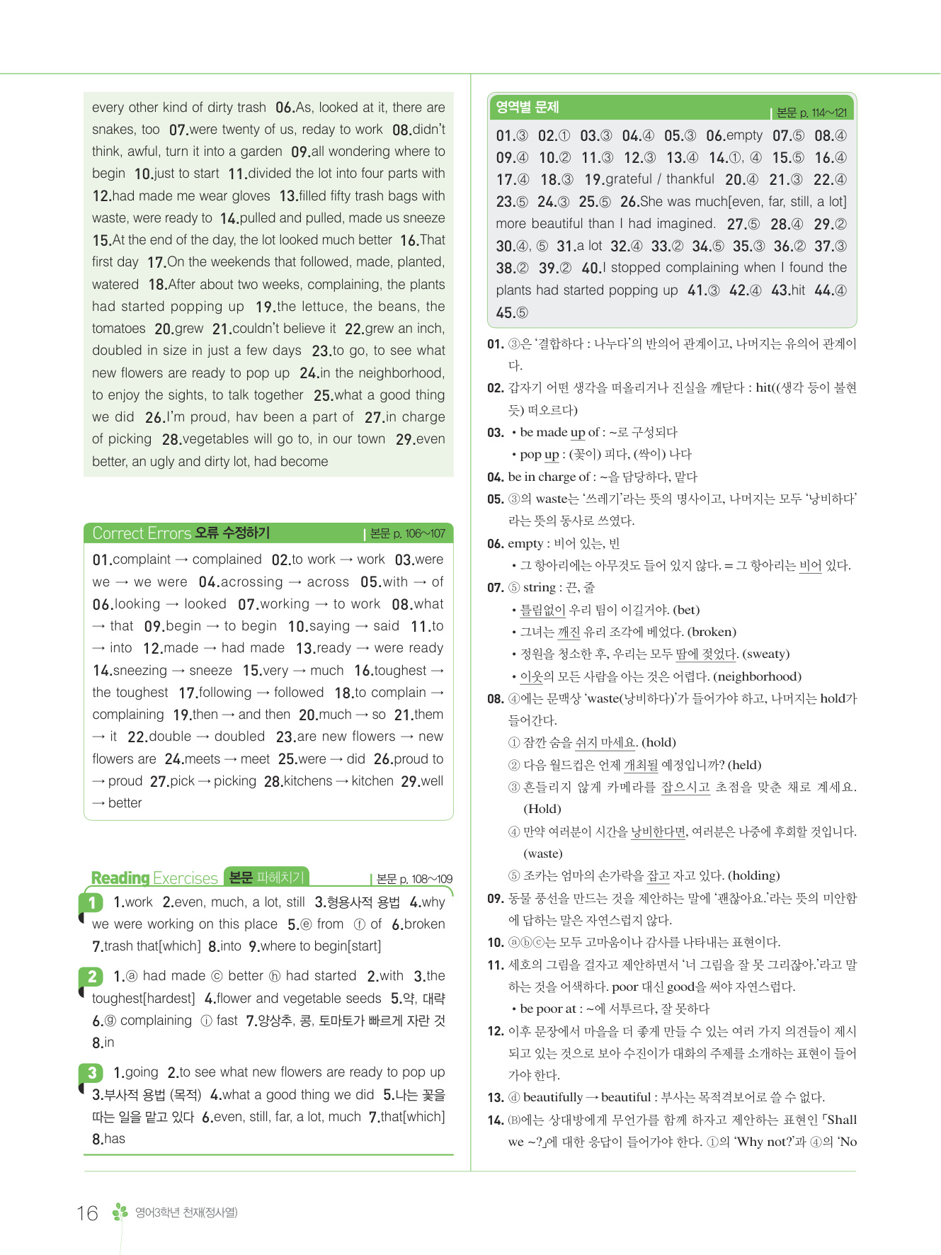 2025 내신콘서트 영어 통합본 중3 1학기 천재 정사열 답지 해설 PDF 사진답지