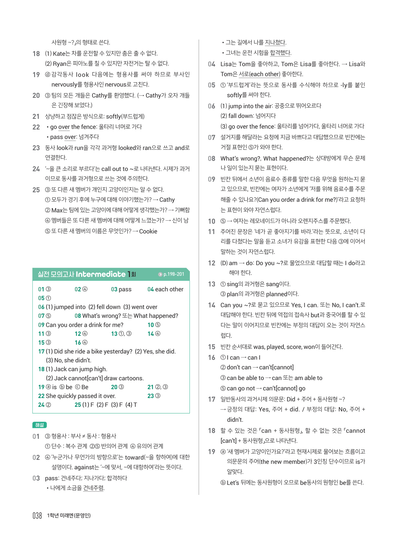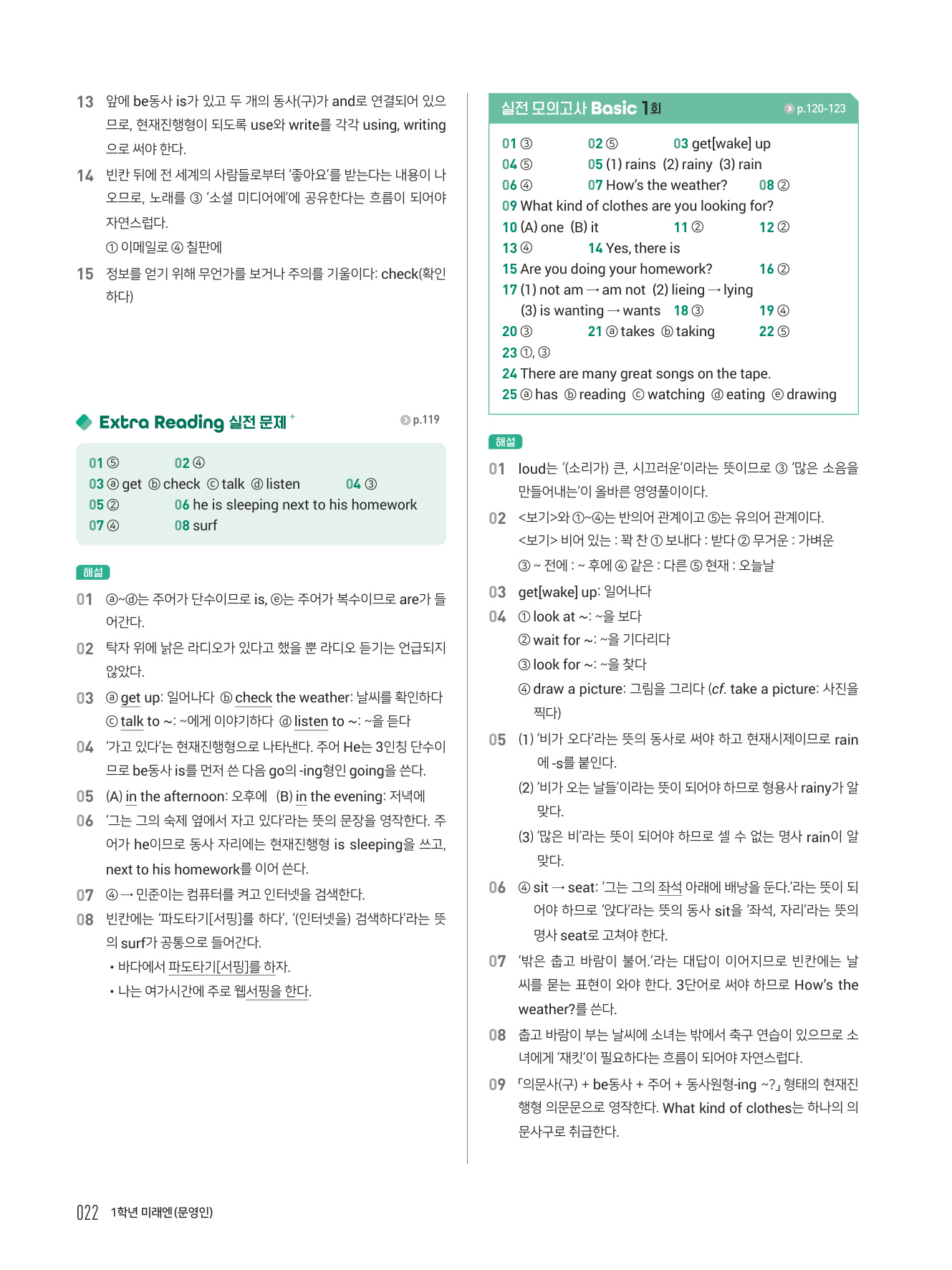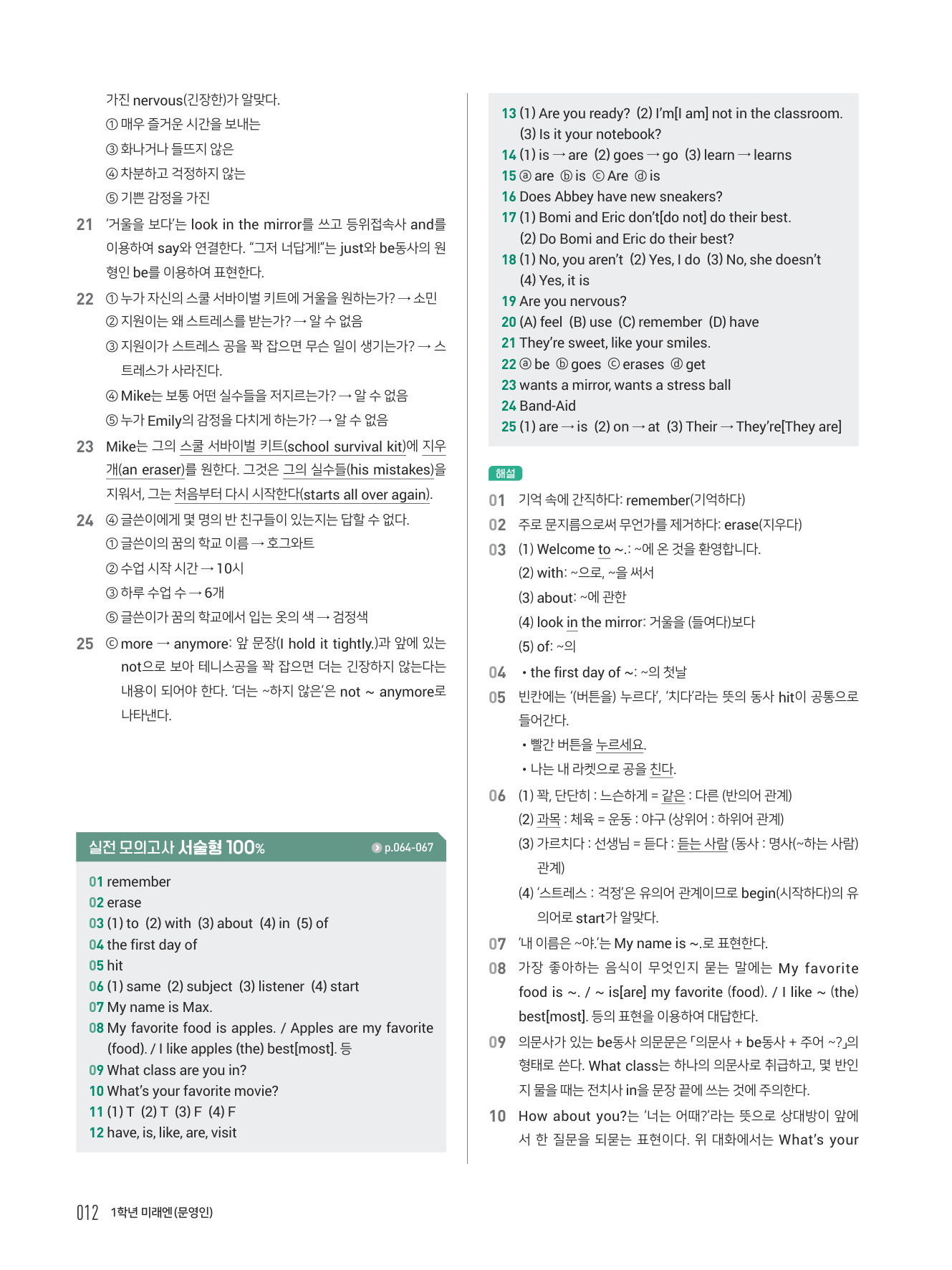 2025 내신콘서트 통합본 예상문제집 영어 중1 1학기 미래엔 문영인 답지 해설 PDF 사진답지