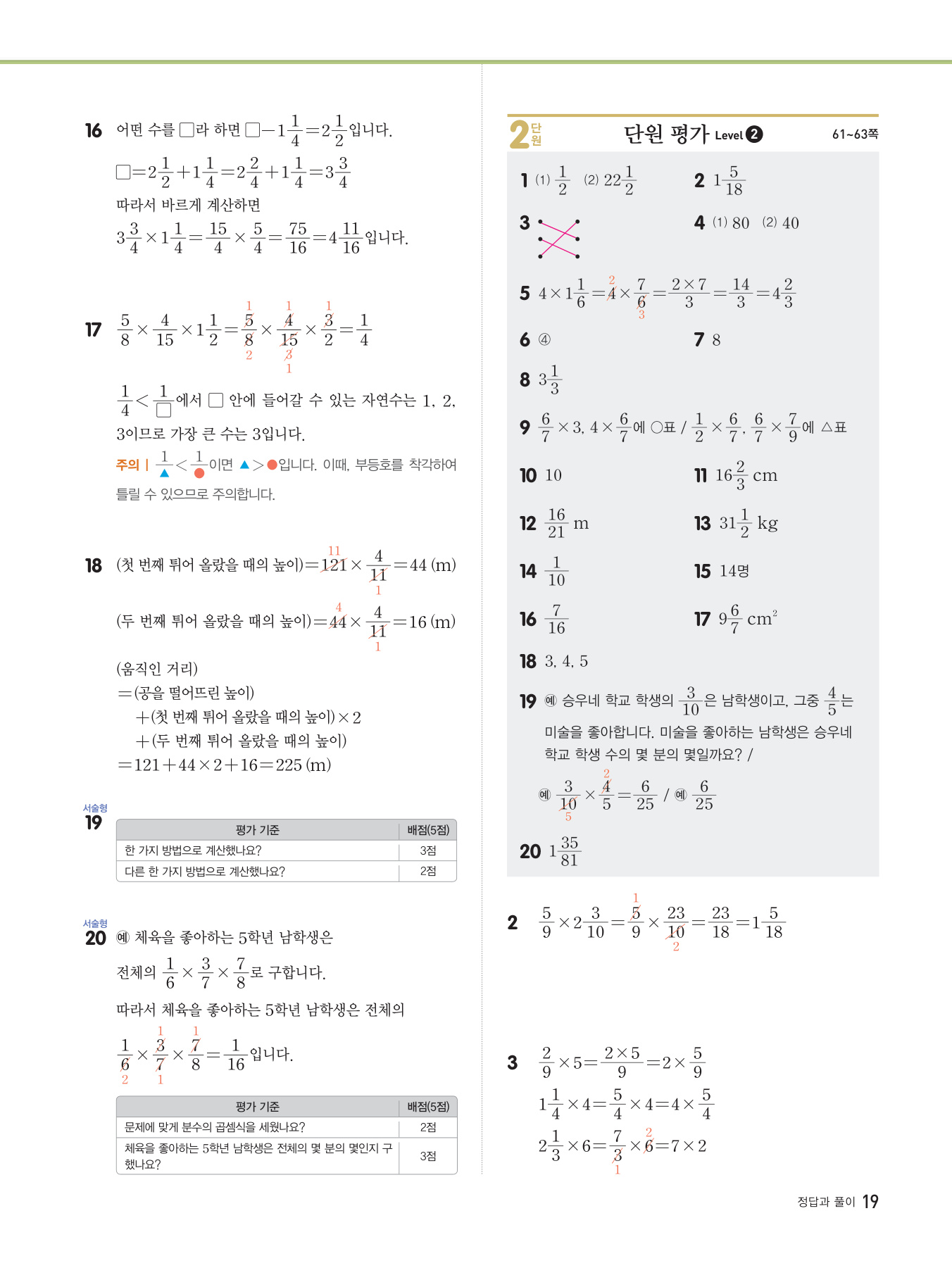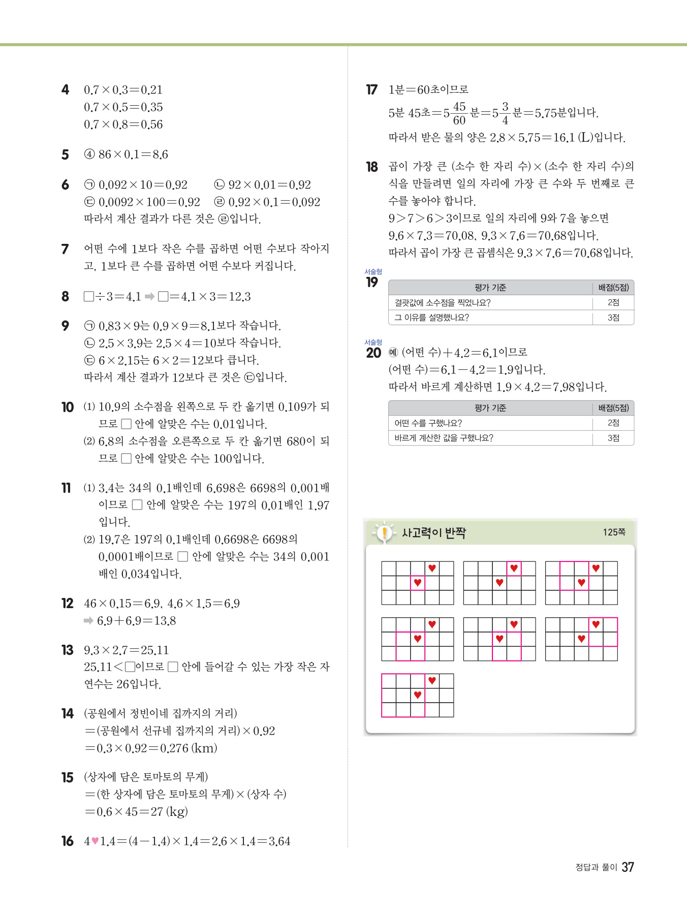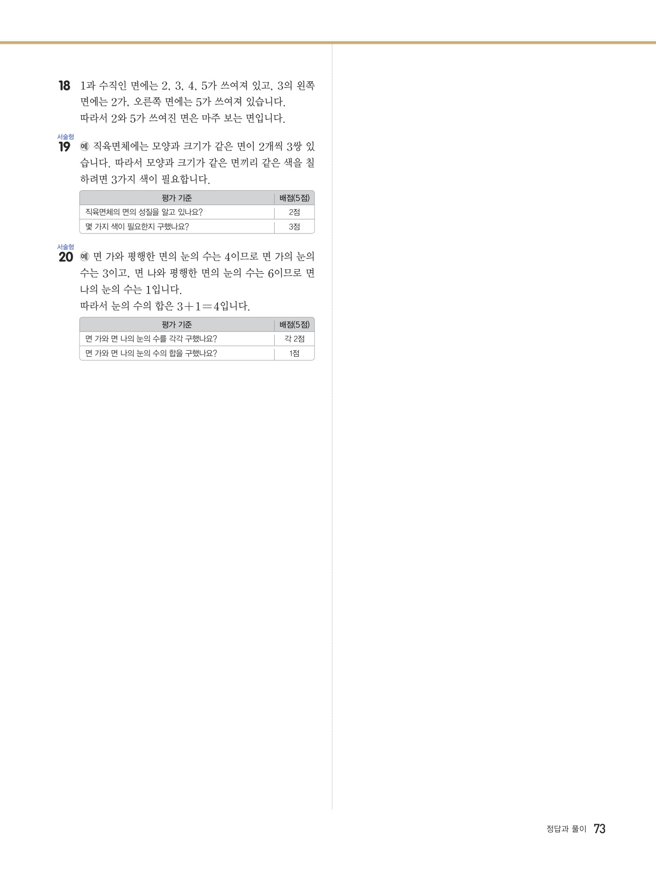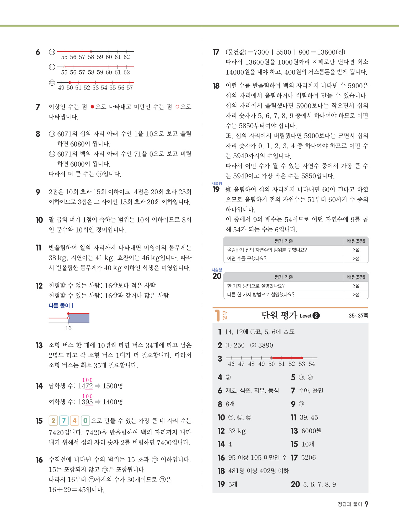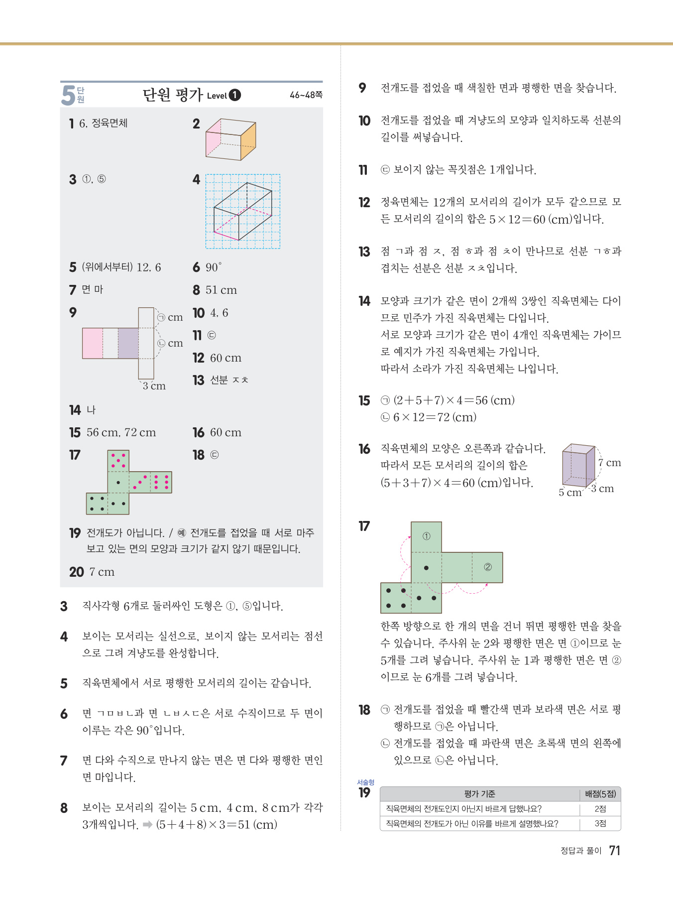 단원 학습을 마무리 할 수 있도록 낮은 수준부터 응용 수준까지의 문제들을 출제하였습니다. 또한 학교 시험에 자주 나오는 문제들을 선별하였으므로 수시평가 및 학교 시험 대비용으로 활용하실 수 있습니다.