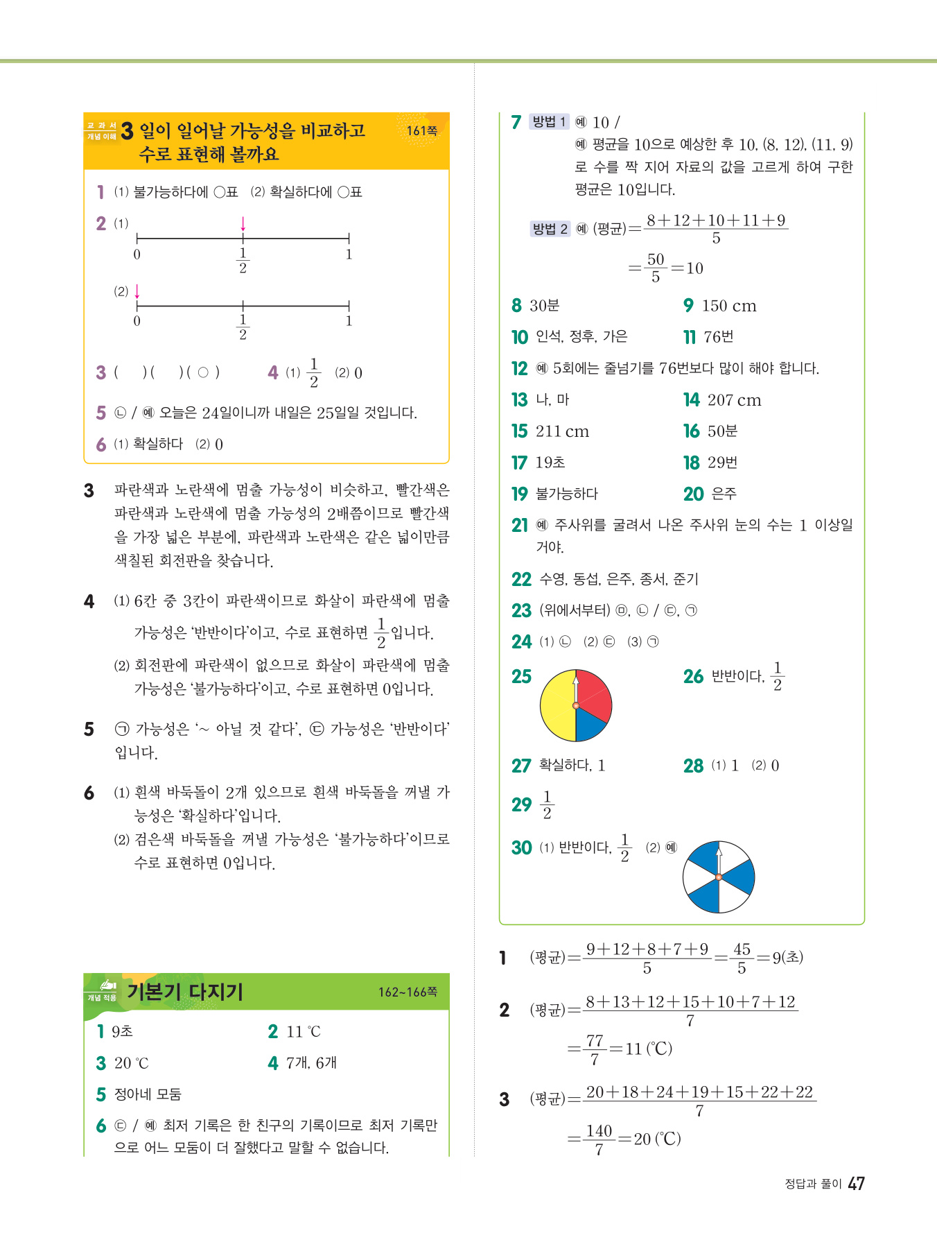 교과서 개념의 핵심을 짚어 상세히 설명하였고 읽은 개념을 이해할 수 있도록 활동 문제를 구성하였습니다. 또한 개념을 잘 이해했는지 바로 확인할 수 있도록 교과서, 익힘책의 개념 문제를 옆 페이지에 출제하였습니다.