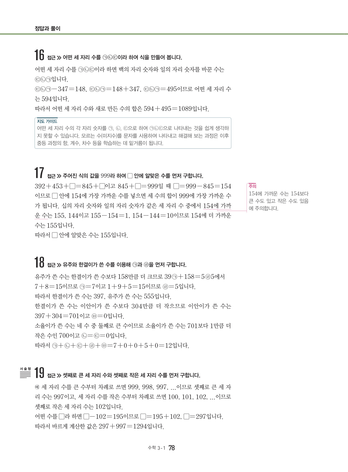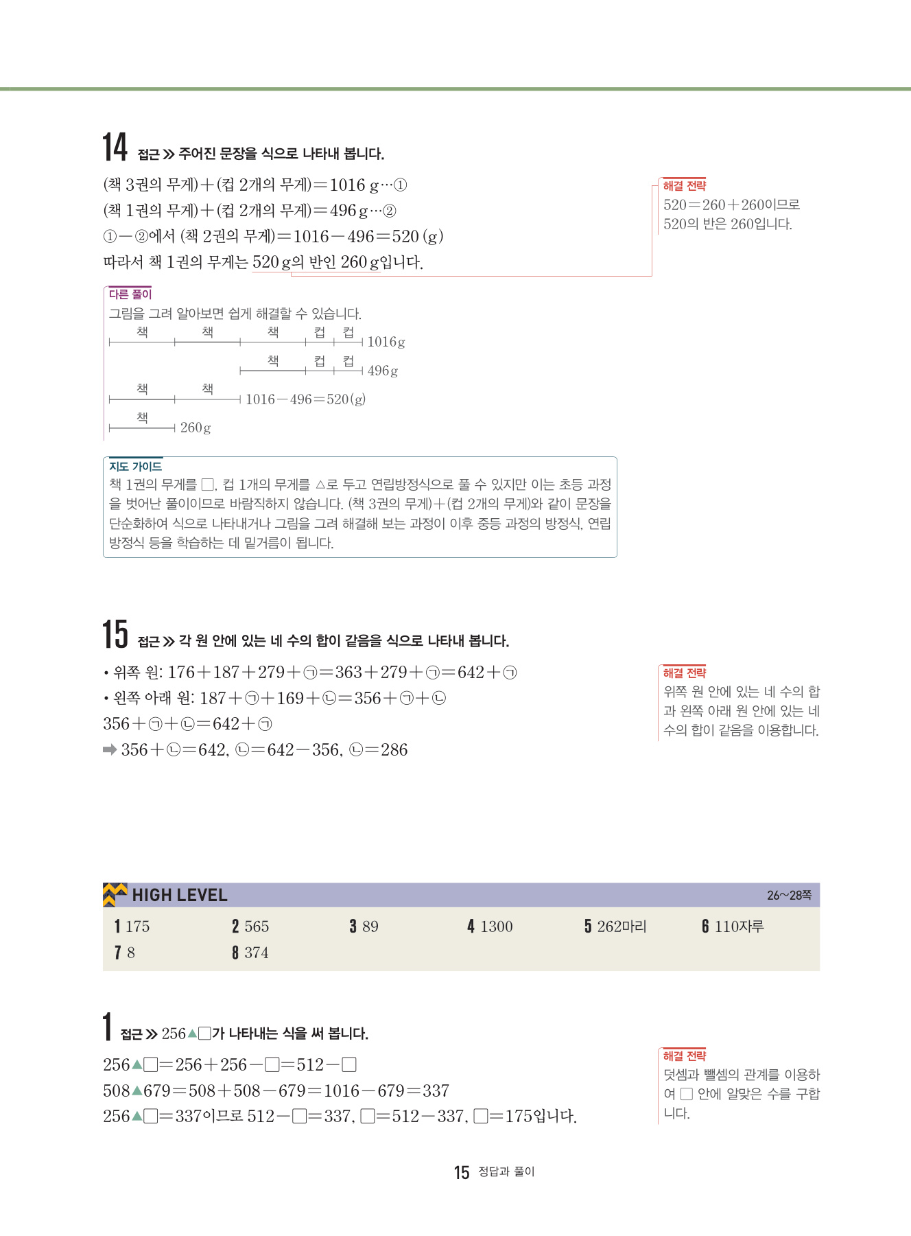 대표 심화 유형 외의 다양한 심화 문제들을 풀어 봄으로써 해결 전략과 방법을 학습하고 상위권으로 한 걸음 나아가는 단계입니다.