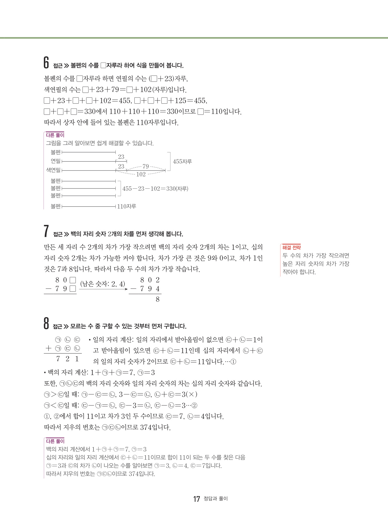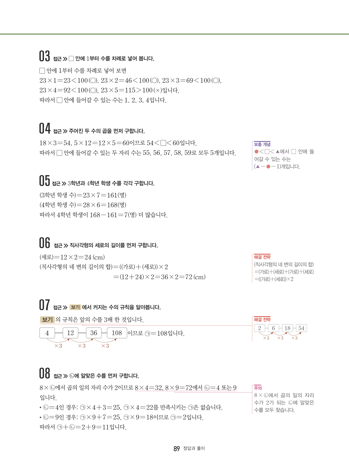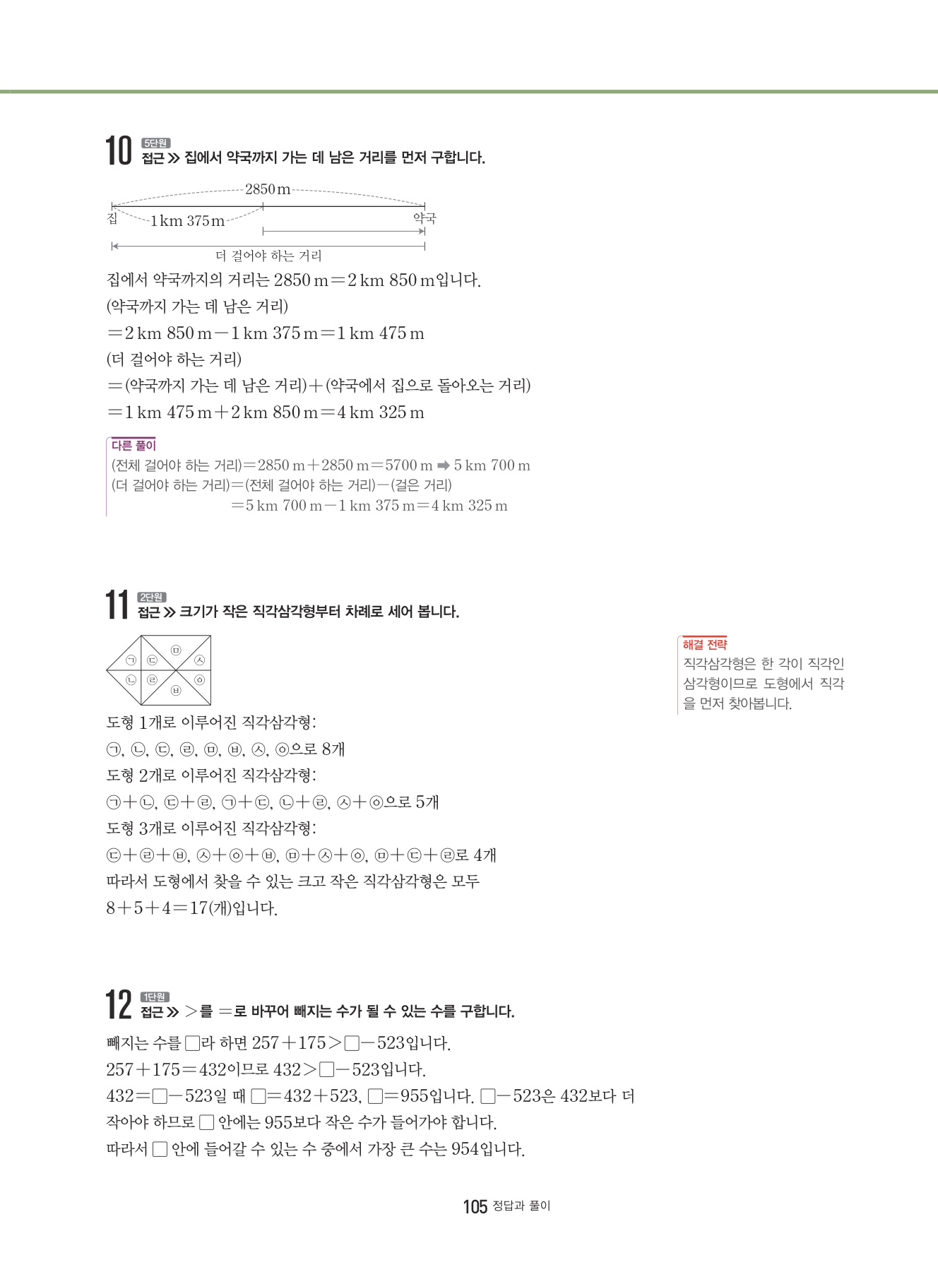대표 심화 유형 외의 다양한 심화 문제들을 풀어 봄으로써 해결 전략과 방법을 학습하고 상위권으로 한 걸음 나아가는 단계입니다.