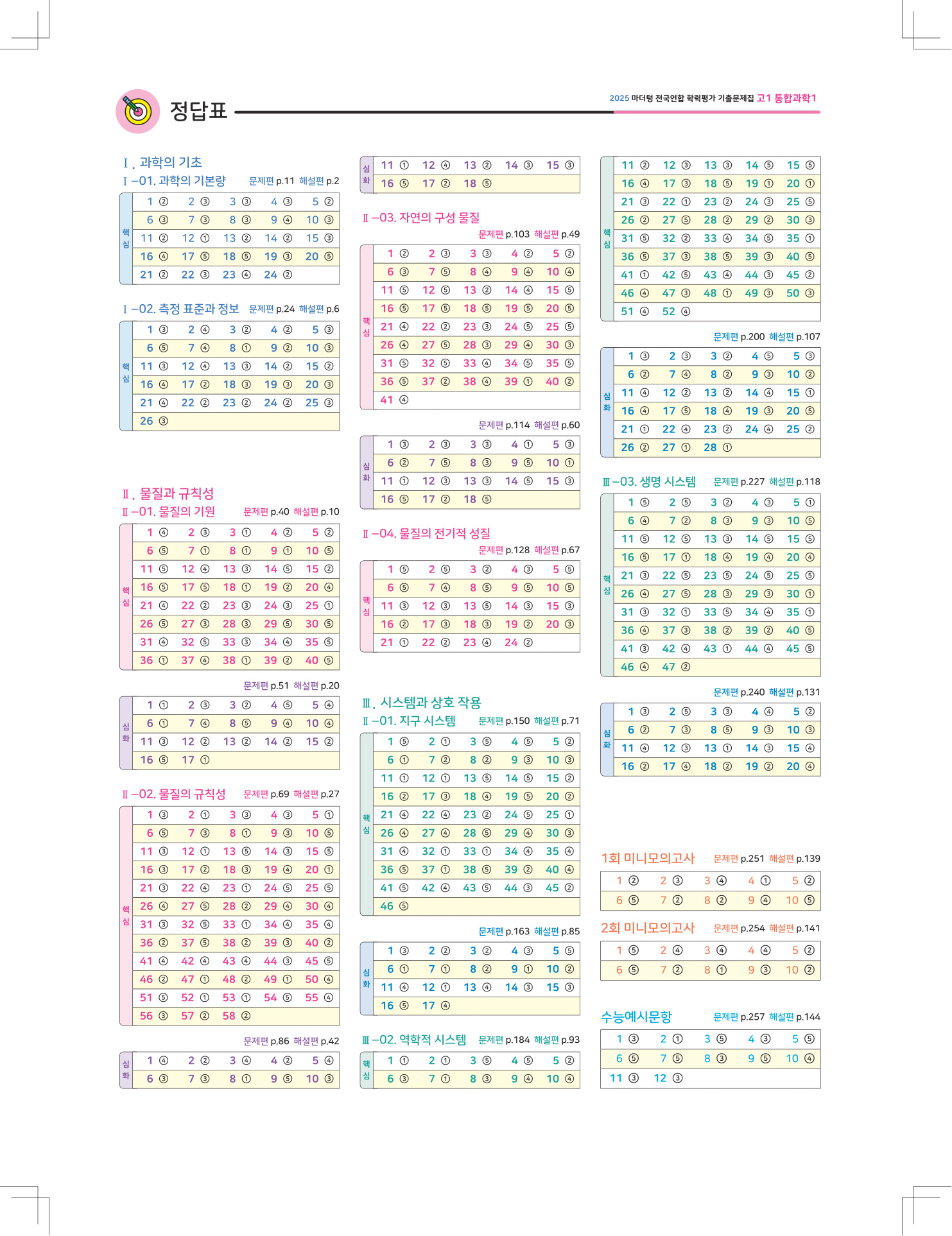 2025 마더텅 전국연합 학력평가 기출문제집 고1 통합과학1 해설