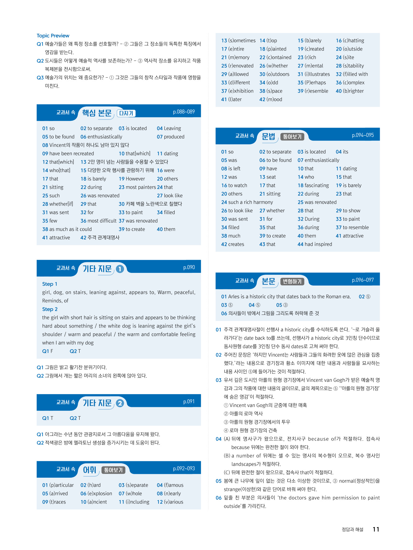 2. 교과서 기본 확인 문제 : 어휘, 문법 영역 기초 실력 확인 문제 수록, 주요 내용 자기주도 학습